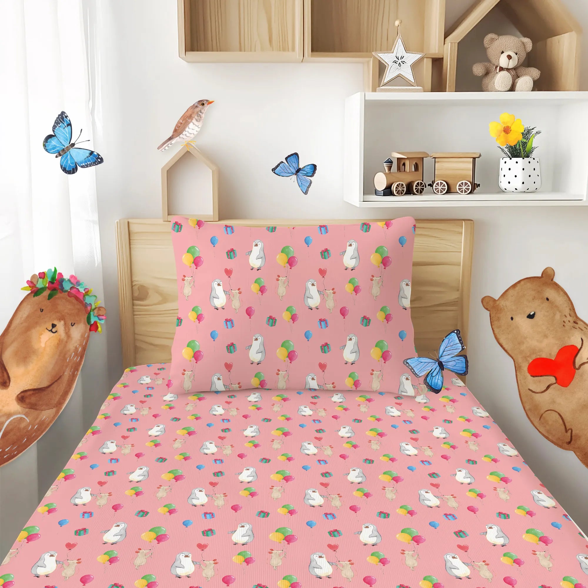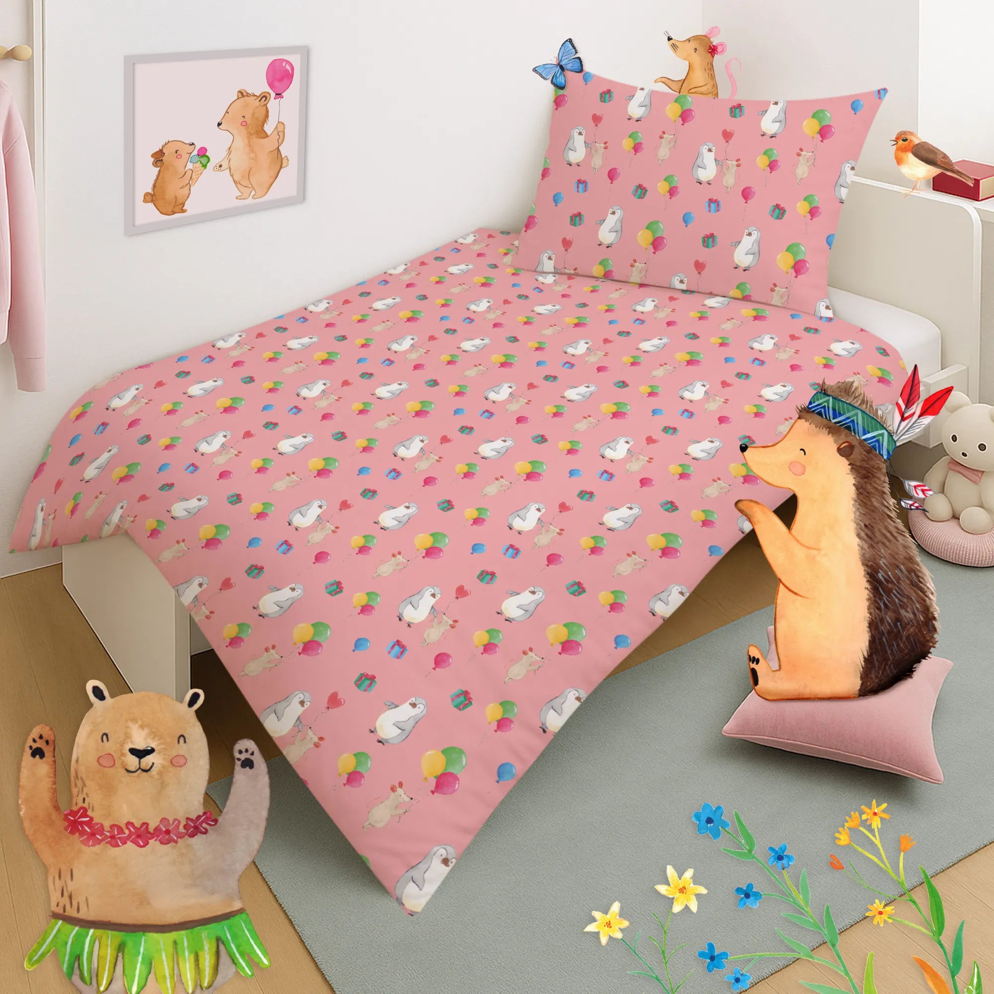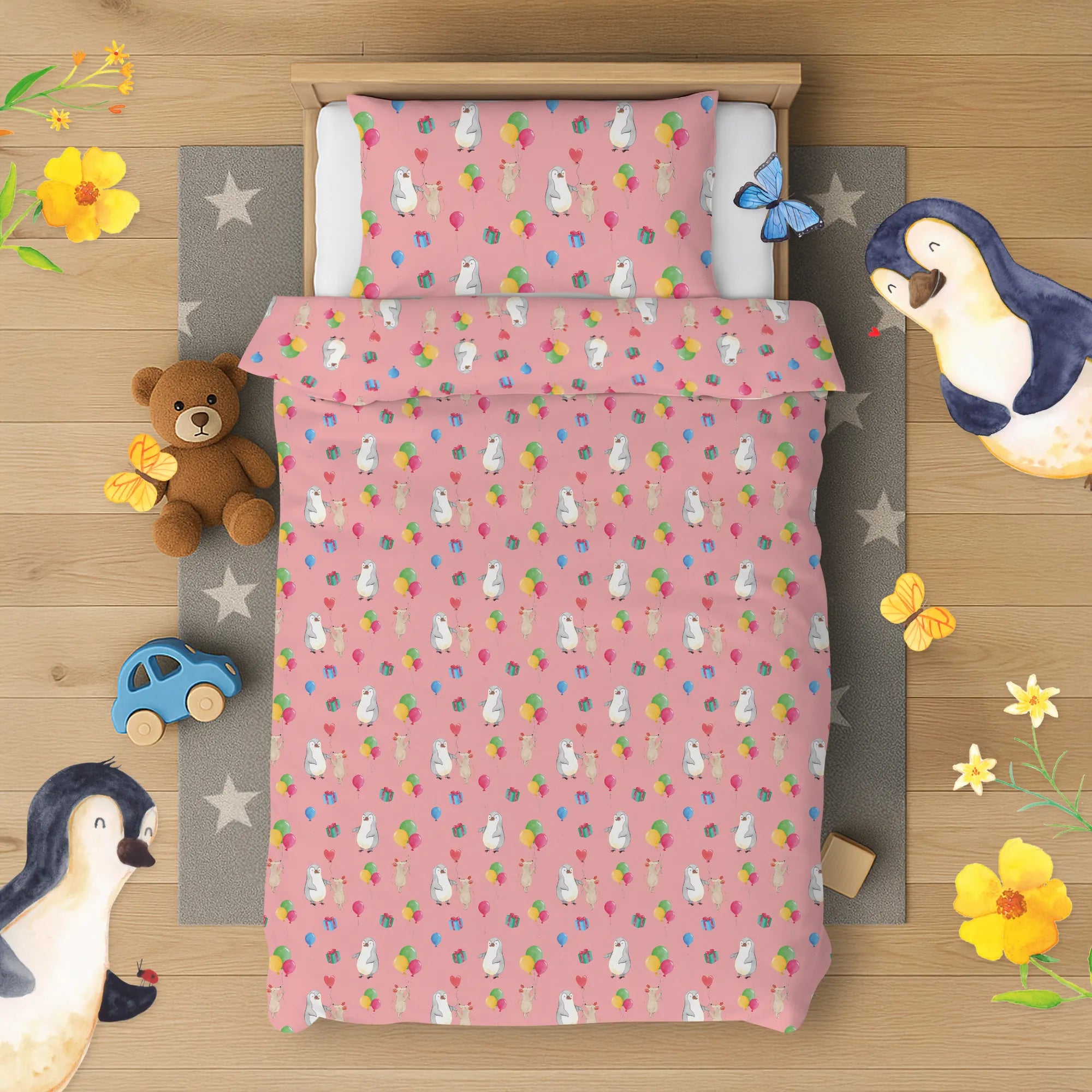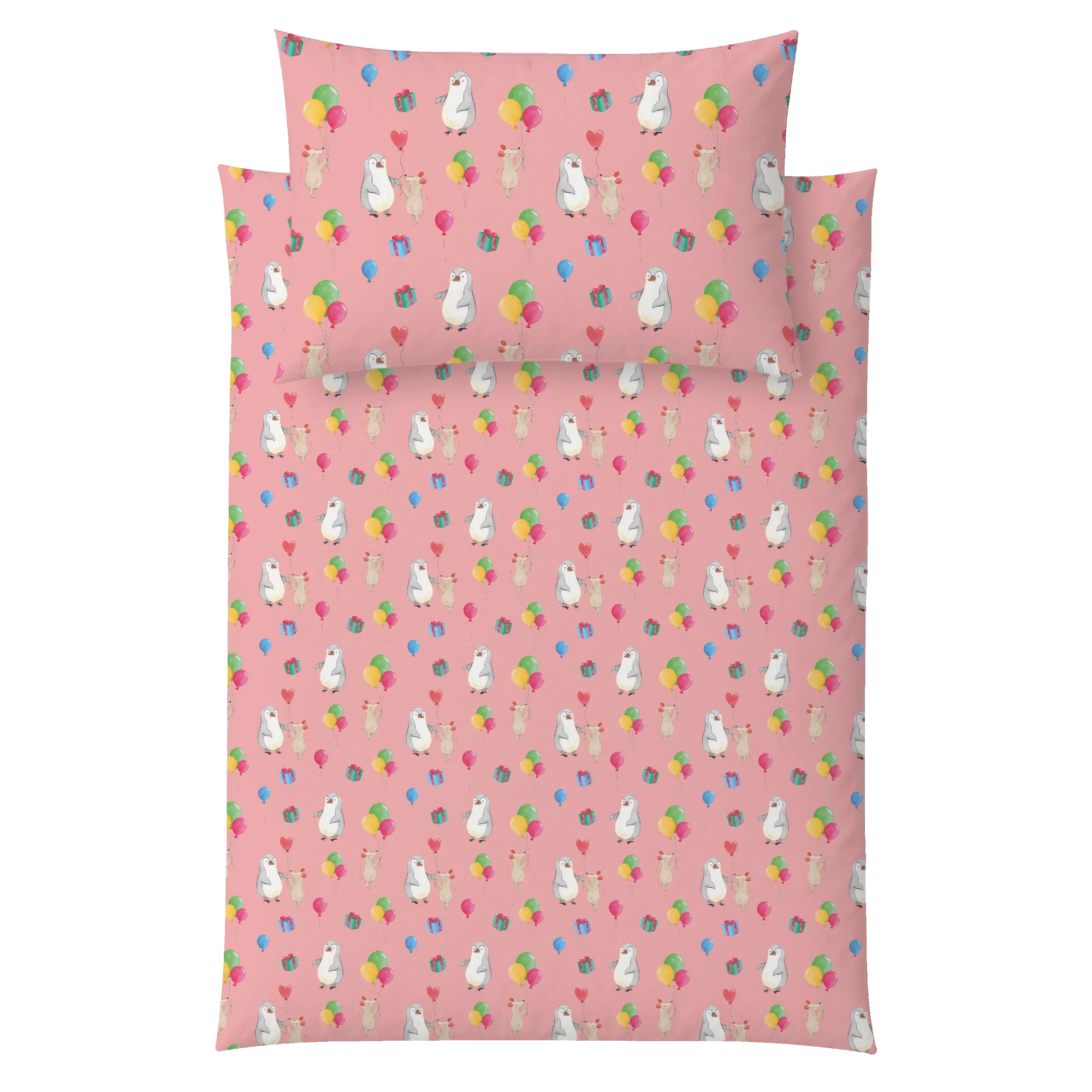 Kinderbettwäsche Maus Pinguin Geburtstag Muster