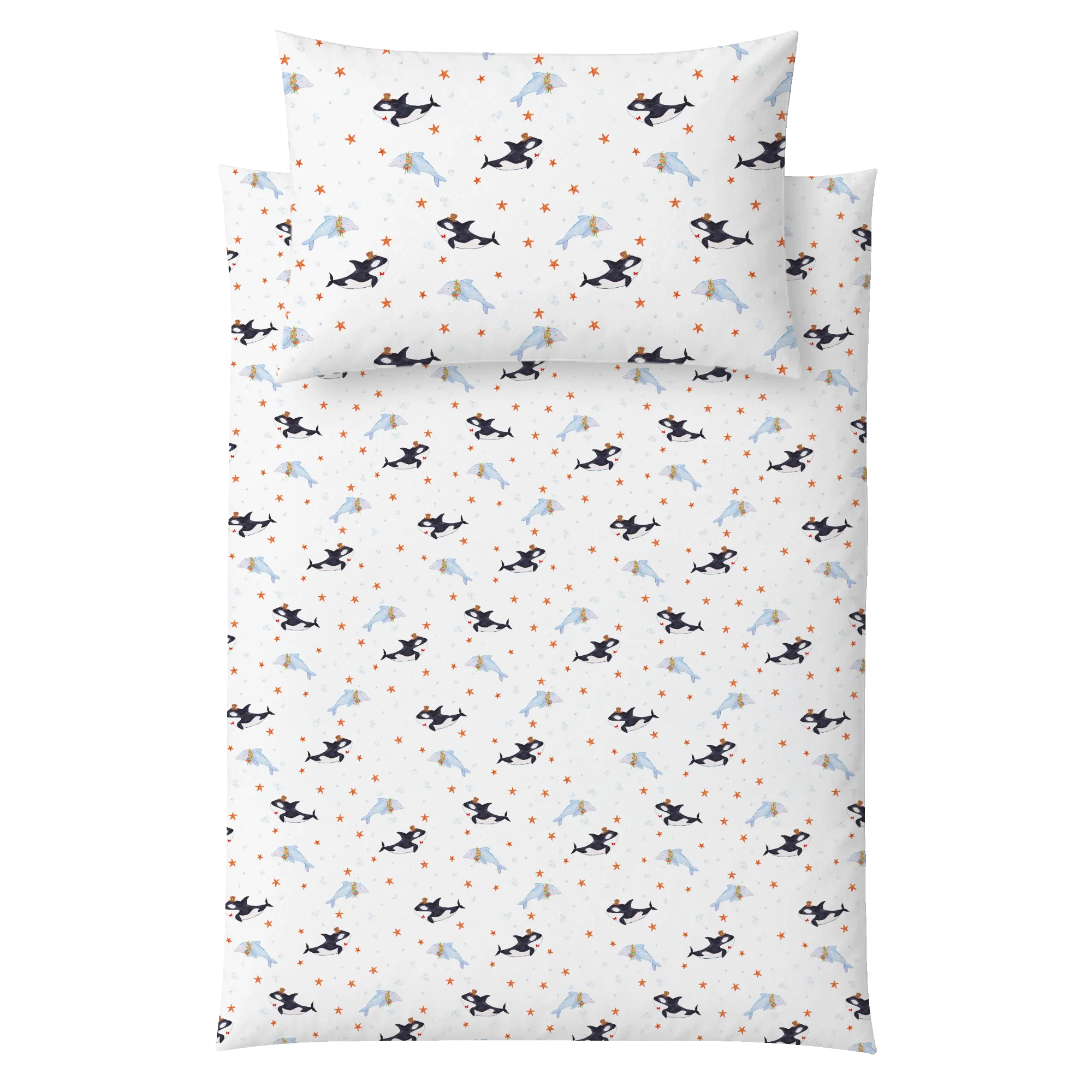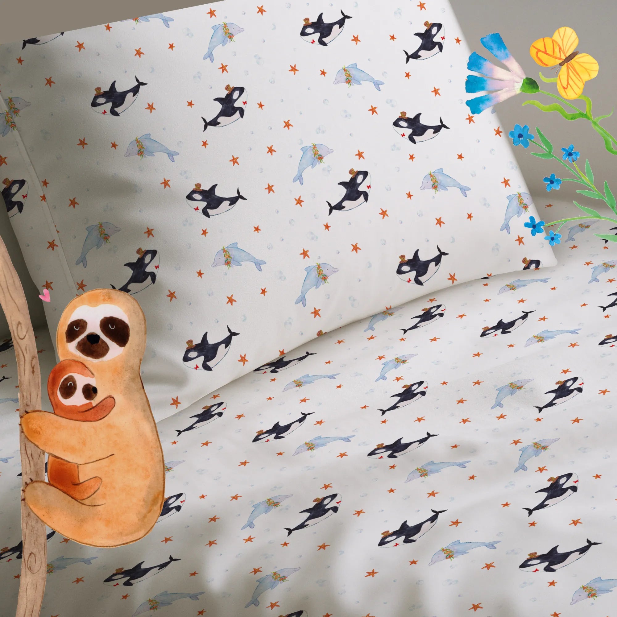Unsere Meerestiere-Kollektion wurde von Mrs. Panda mit viel Herz handgezeichnet. Fische, Wale und Meeresbewohner treffen hier auf lebensfrohe Sprüche und fröhliche Details – perfekt für Meerestiere-Fans und alle, die das Urlaubsgefühl ins Kinderzimmer holen möchten. Die Orca Zylinder Bettwäsche passt wunderbar zu anderen Produkten der Kollektion und ist eine originelle Geschenkidee für kleine Seefreunde.