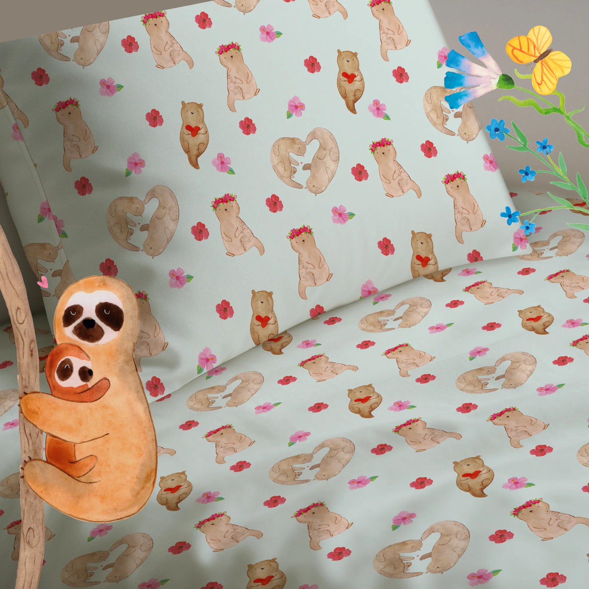 Otter Herz – Kinderbettwäsche aus der Otter - Kollektion von Mr. & Mrs. Panda
