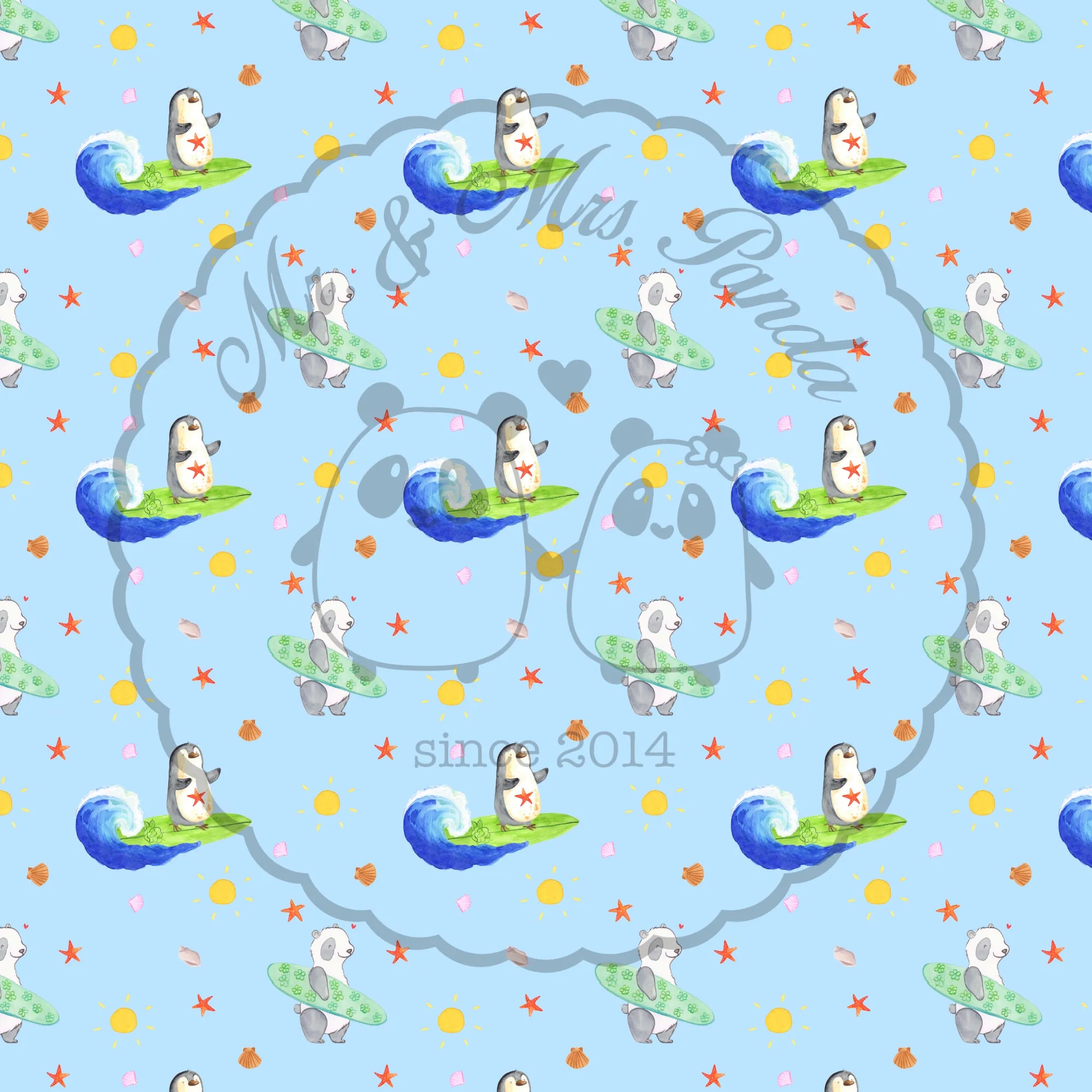 Mr. & Mrs. Panda – Pinguin Surfer Hawaii Motiv | Tropisches Surf-Design