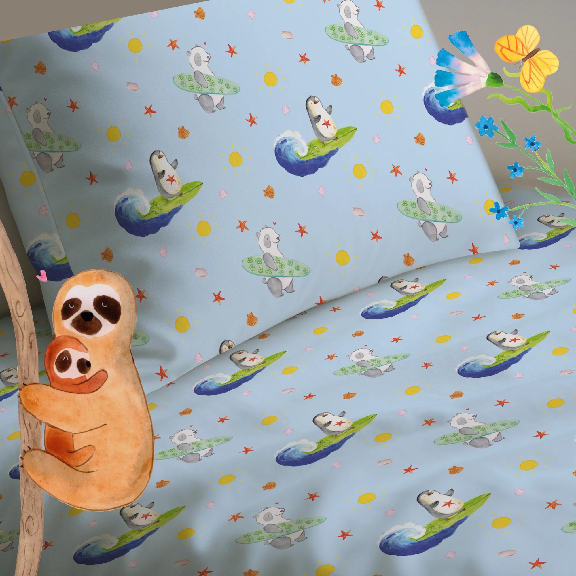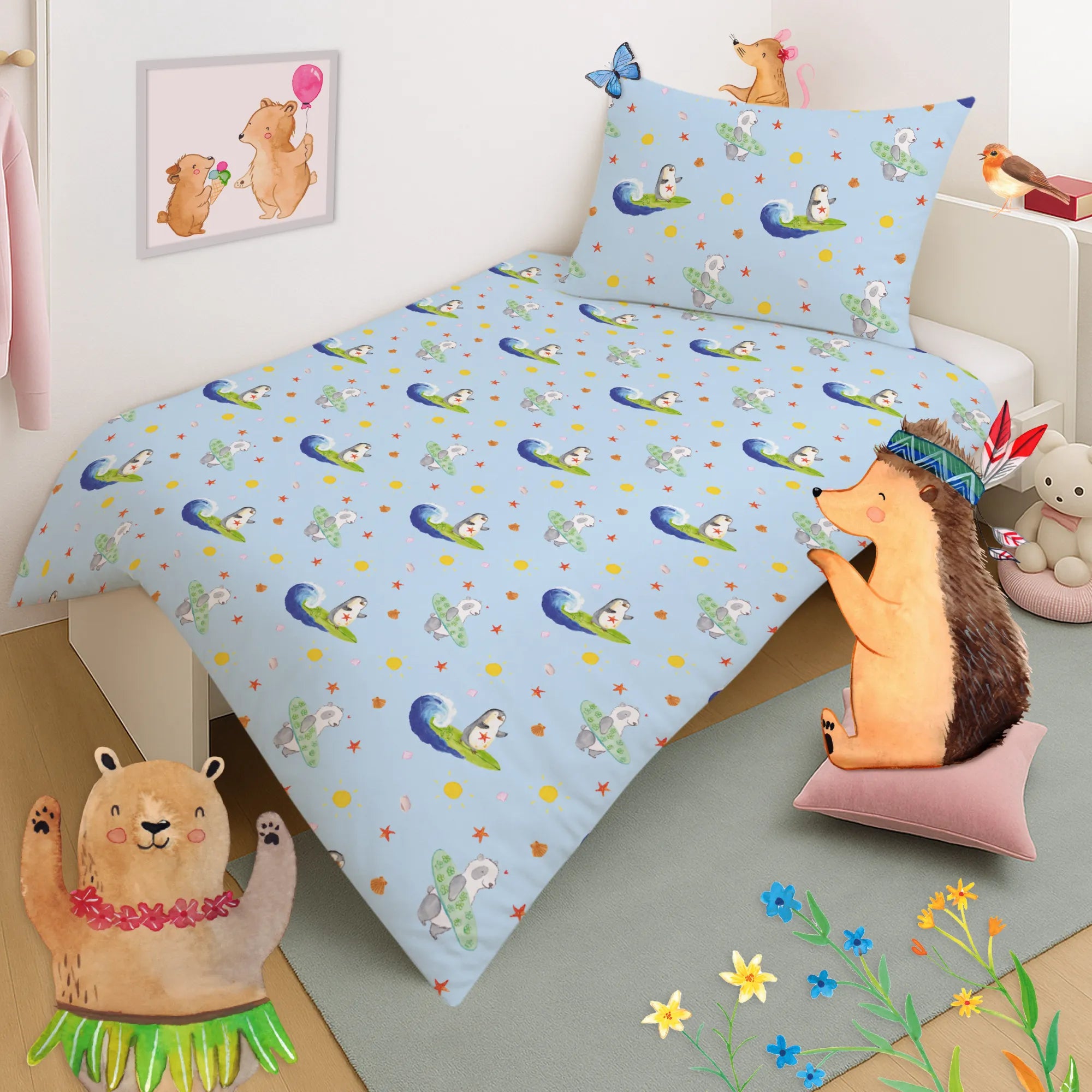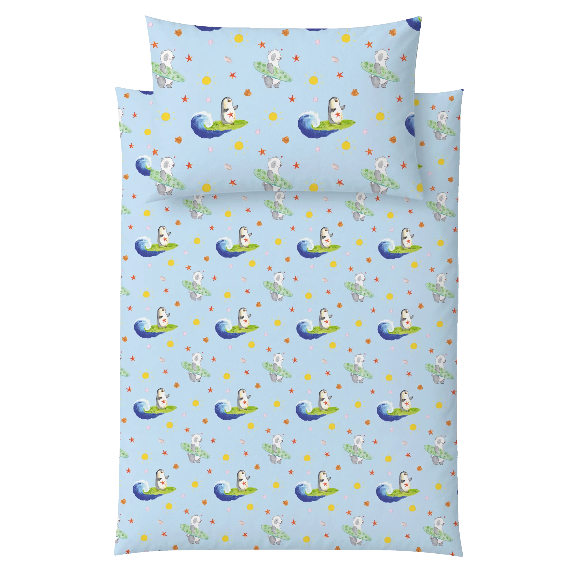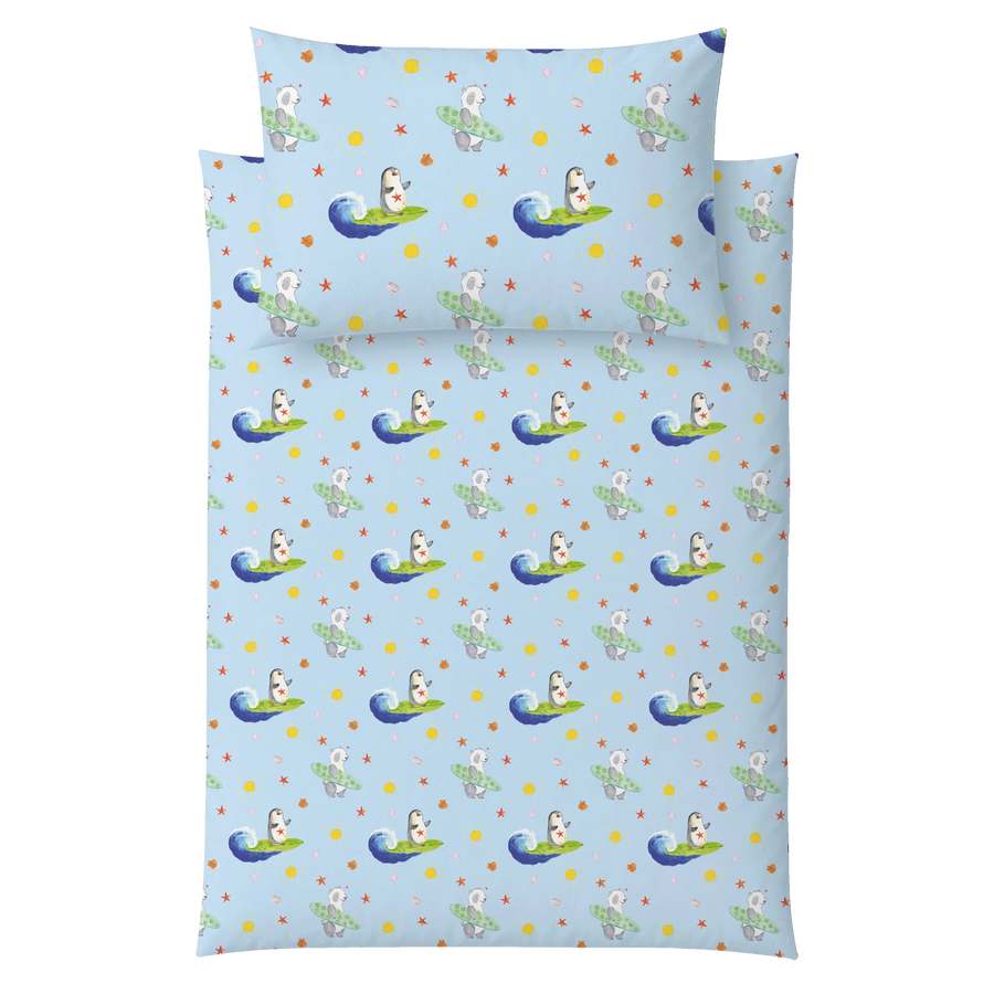 Pinguin Surfer – Kinderbettwäsche aus der Pinguin - Kollektion von Mr. & Mrs. Panda