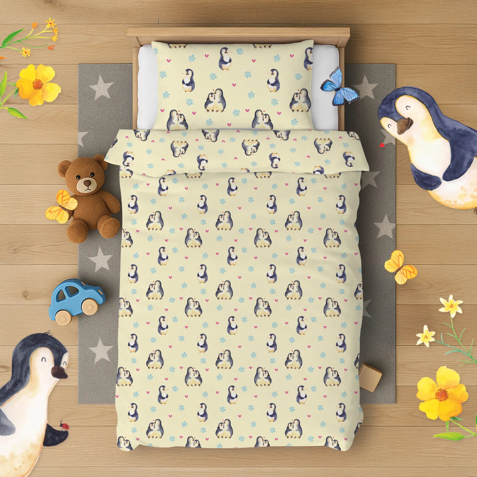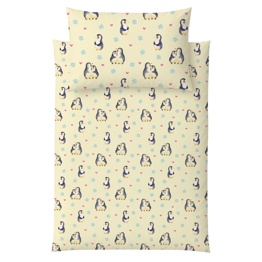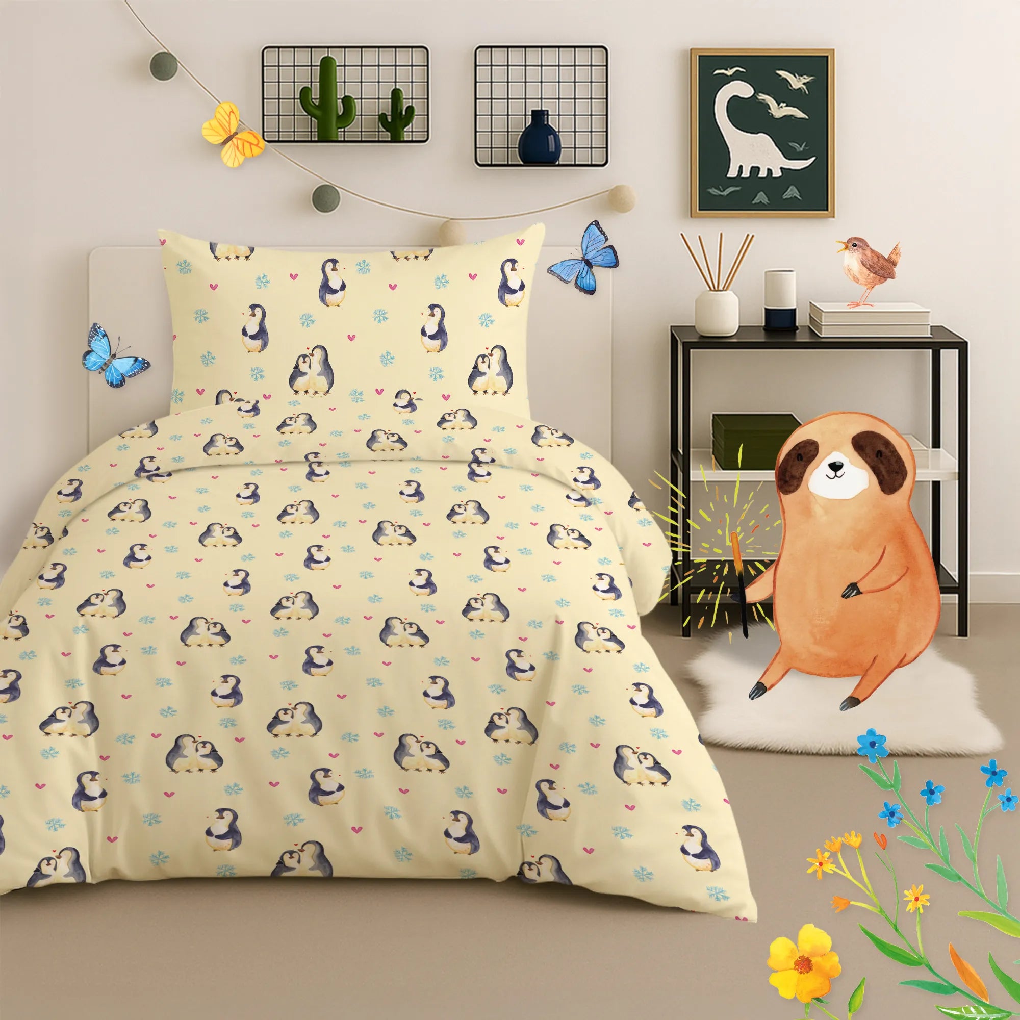Warum diese Bettwäsche so besonders ist: Das Motiv vermittelt Wärme und Geborgenheit und passt hervorragend ins Kinderzimmer. Die sonnige Hintergrundfarbe sorgt für gute Laune, während die weichen Linien des Pinguin-Liebespaares Zärtlichkeit ausstrahlen. Ideal als Geschenk zur Einschulung, zur Taufe, zum Geburtstag – aber auch als ausgefallenes Liebesgeschenk zum Jahrestag, zur Verlobung oder als süßes Hochzeitsgeschenk für Pinguin-Fans.