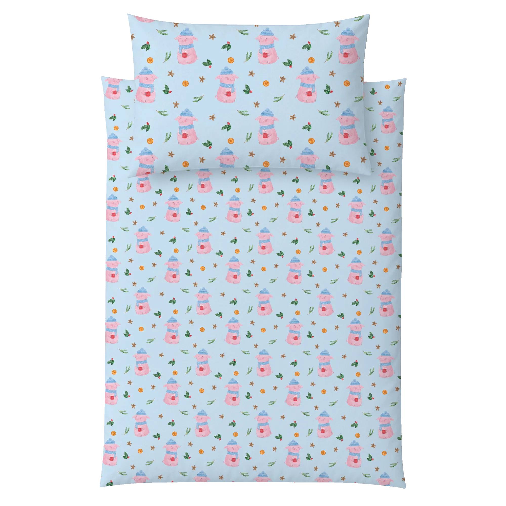 Kinderbettwäsche Schweinchen Glühwein Muster