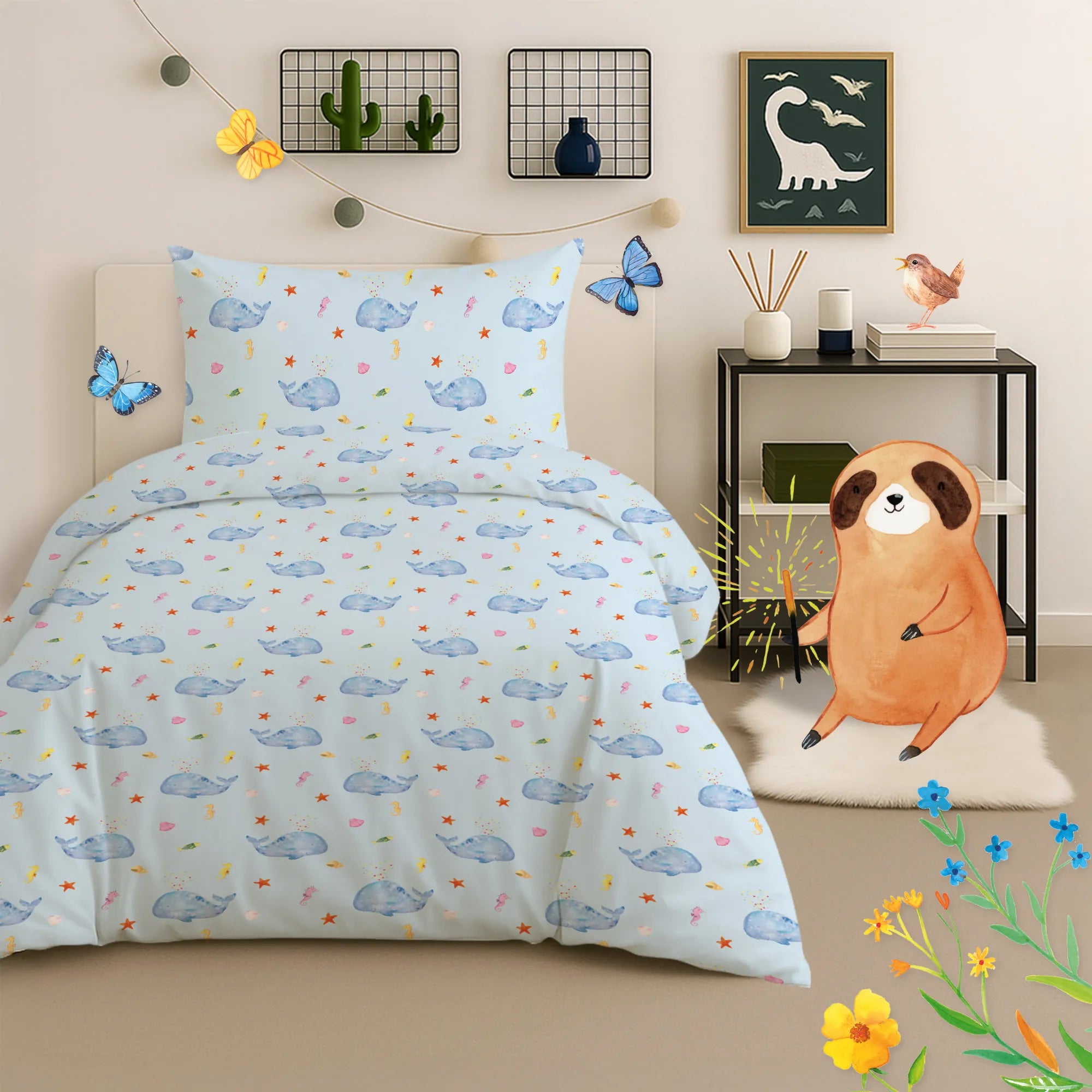 Perfekt als Geschenk: Ob zur Einschulung, zur Taufe oder zum Geburtstag – diese Bettwäsche ist eine wunderbare Geschenkidee für Meerestiere-Fans und kleine Träumer. Sie eignet sich auch als Motivation bei Neuanfängen oder als liebevolle Aufmunterung in besonderen Lebensabschnitten.