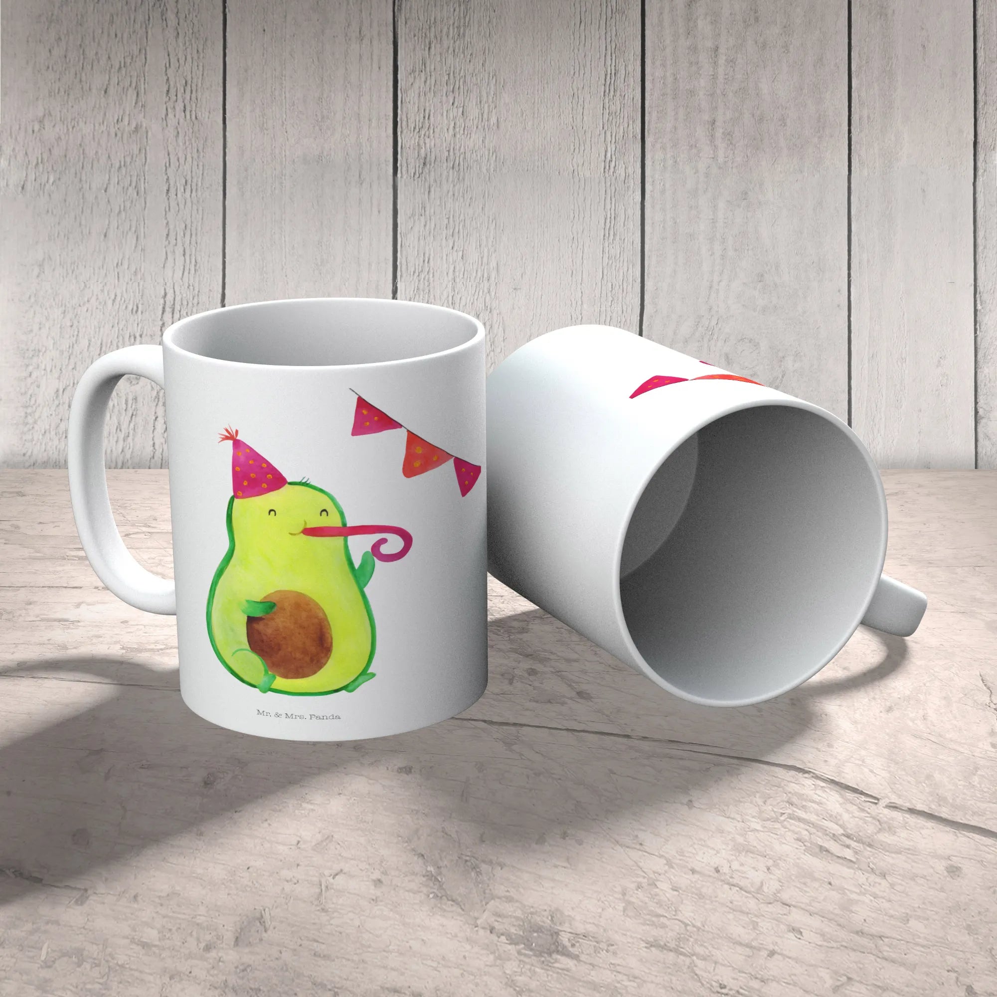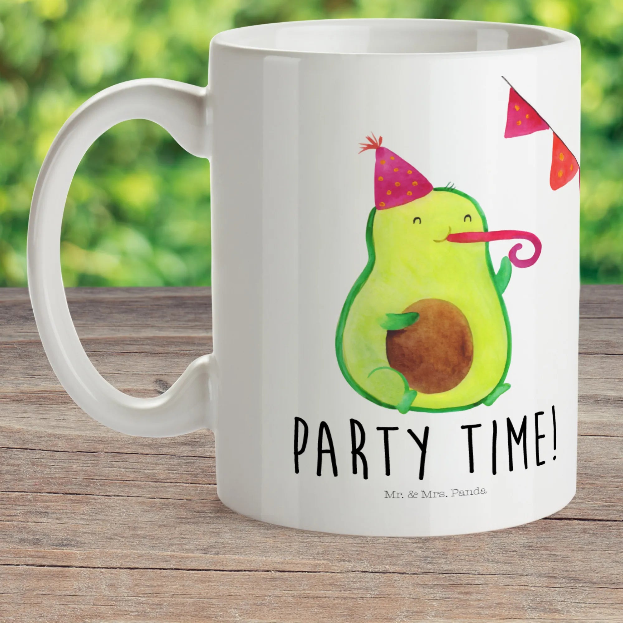 Wage es, Freude zu verbreiten – die 'Avocado Party Time' Tasse ist das ideale Geschenk für alle kleinen Avocado-Fans und fröhlichen Geister. Hol dir das Stück Kinderfreude, das jede Trinkpause zur Party macht! Denn mit Mr. & Mrs. Panda wird jede Stunde zur Partyzeit!