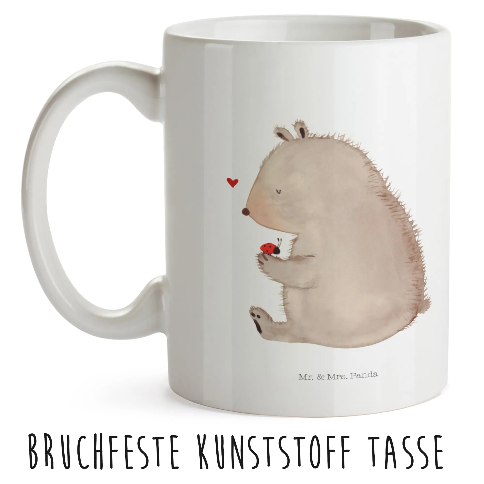 Die Kindertasse von Mr. & Mrs. Panda mit dem süßen Motiv Bär mit Marienkäfer ist der perfekte Begleiter für den Alltag Deiner Kleinen! Diese farbenfrohe und robuste Kindertasse bringt Freude in jeden Moment – sei es im Kindergarten, beim Camping oder bei einem gemütlichen Picknick im Park.