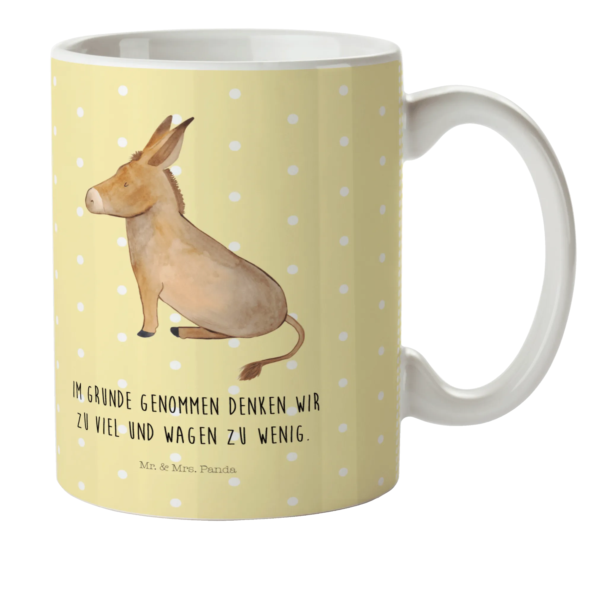 Kindertasse Esel - mit Spruch - Gelb Pastell