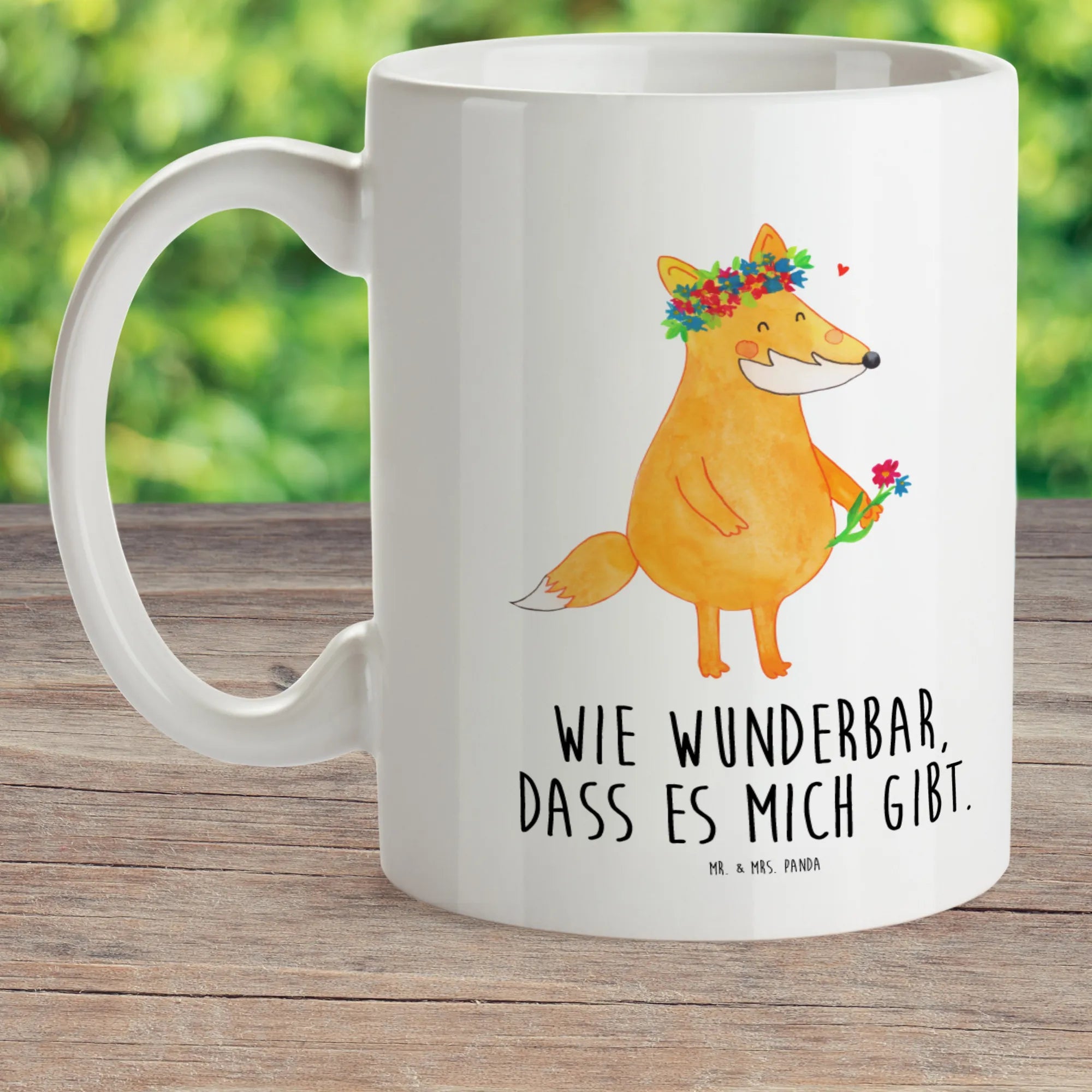 Das entzückende Design zeigt einen Fuchs mit bunten Blumen – einfach ein wahrer Blickfang! Verziert mit dem Spruch „Wie wunderbar, dass es mich gibt.“, spricht die Tasse das Herz von kleinen Blumenliebhabern an. Sie eignet sich hervorragend als Geschenk für Kindergeburtstage, zur Einschulung oder einfach, um einem besonderen kleinen Menschen eine Freude zu machen.