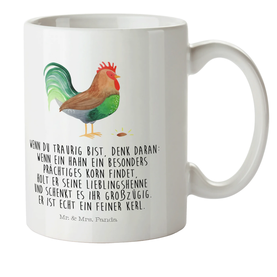 Überrasche und beschenke dein Kind, Neffen, Nichten oder die Enkelkinder mit dieser praktischen und hübschen Tasse, die sowohl funktional als auch ein tolles Deko-Element ist. Mit dem Motto: "Wenn du traurig bist, denk daran: Wenn ein Hahn ein außergewöhnlich schönes Korn findet, holt er seine Lieblingshenne und schenkt es ihr großzügig. Er ist echt ein feiner Kerl!" wird die Tasse zum perfekten Begleiter für fröhliche Momente. Lass den Alltag lebendig werden und bringe Freude ins Kinderzimmer mit der Kindertasse "Hahn mit Korn" von Mr. & Mrs. Panda!