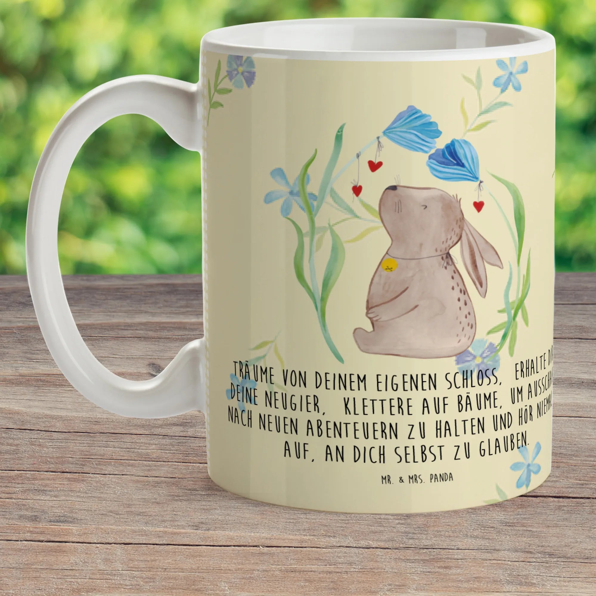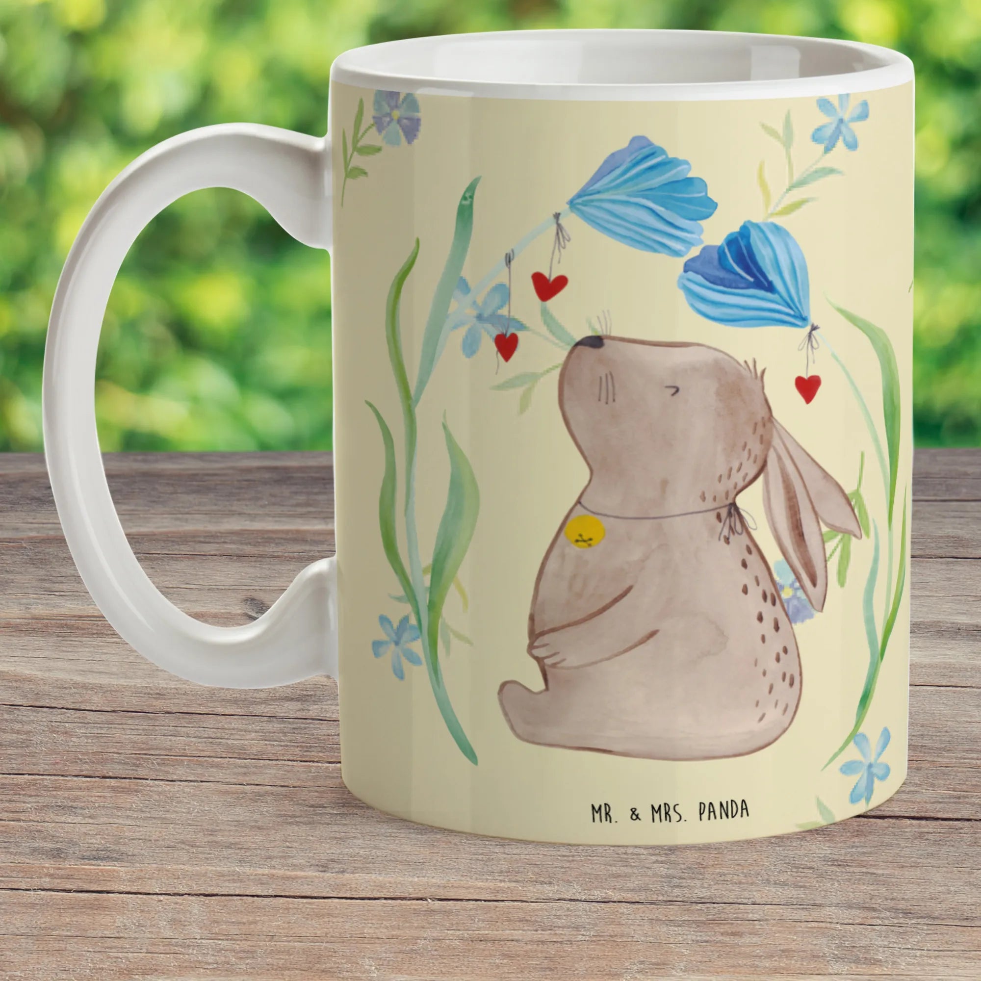Die bezaubernde Kindertasse mit dem Motiv Hase Blume aus der Ostern-Kollektion von Mr. & Mrs. Panda ist das perfekte Geschenk für kleine Entdecker und große Abenteurer! Diese farbenfrohe und robuste Kindertasse, hergestellt aus strapazierfähigem Kunststoff, bringt fröhliche Osterstimmung auf den Tisch.