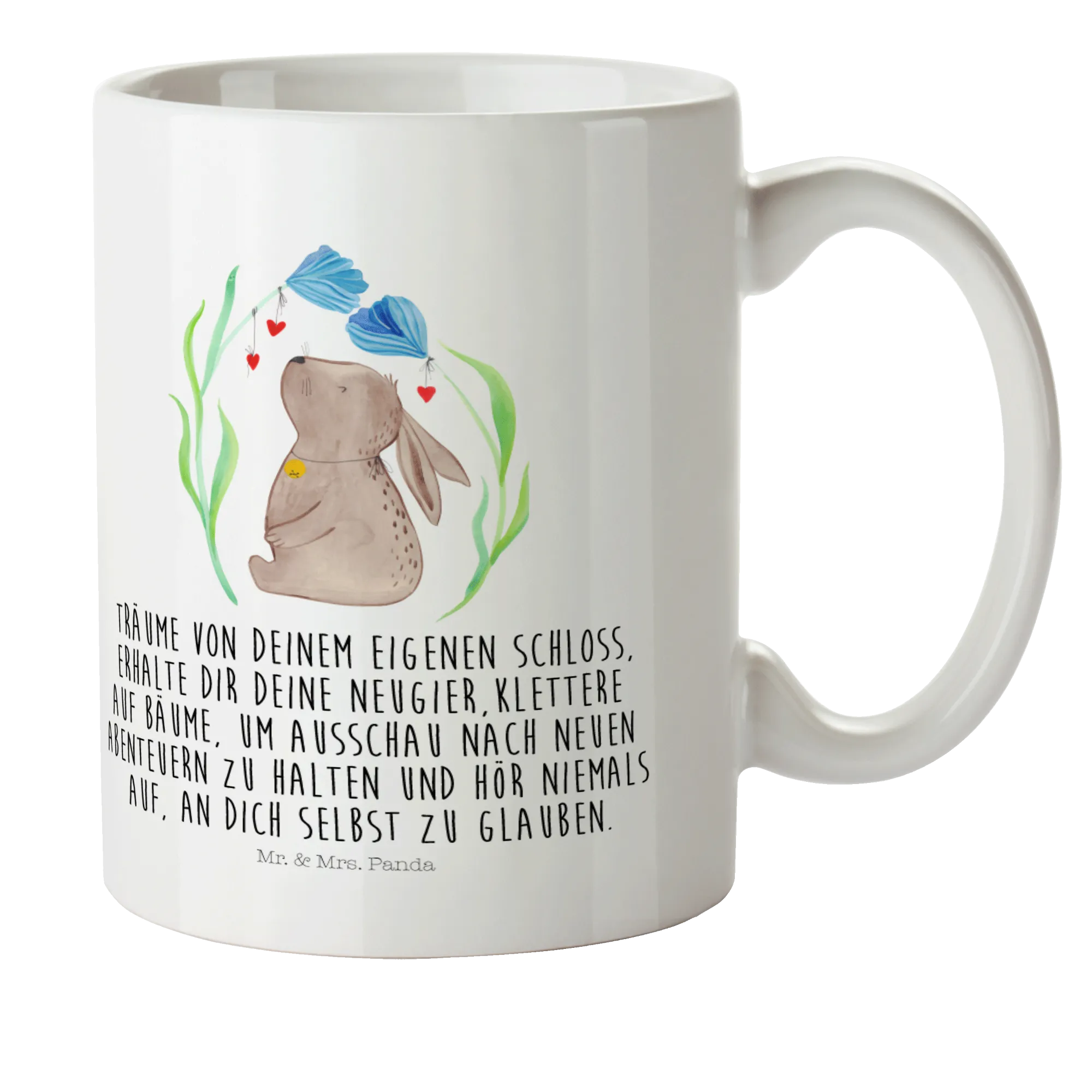 Kindertasse Hase Blume - mit Spruch - Weiß