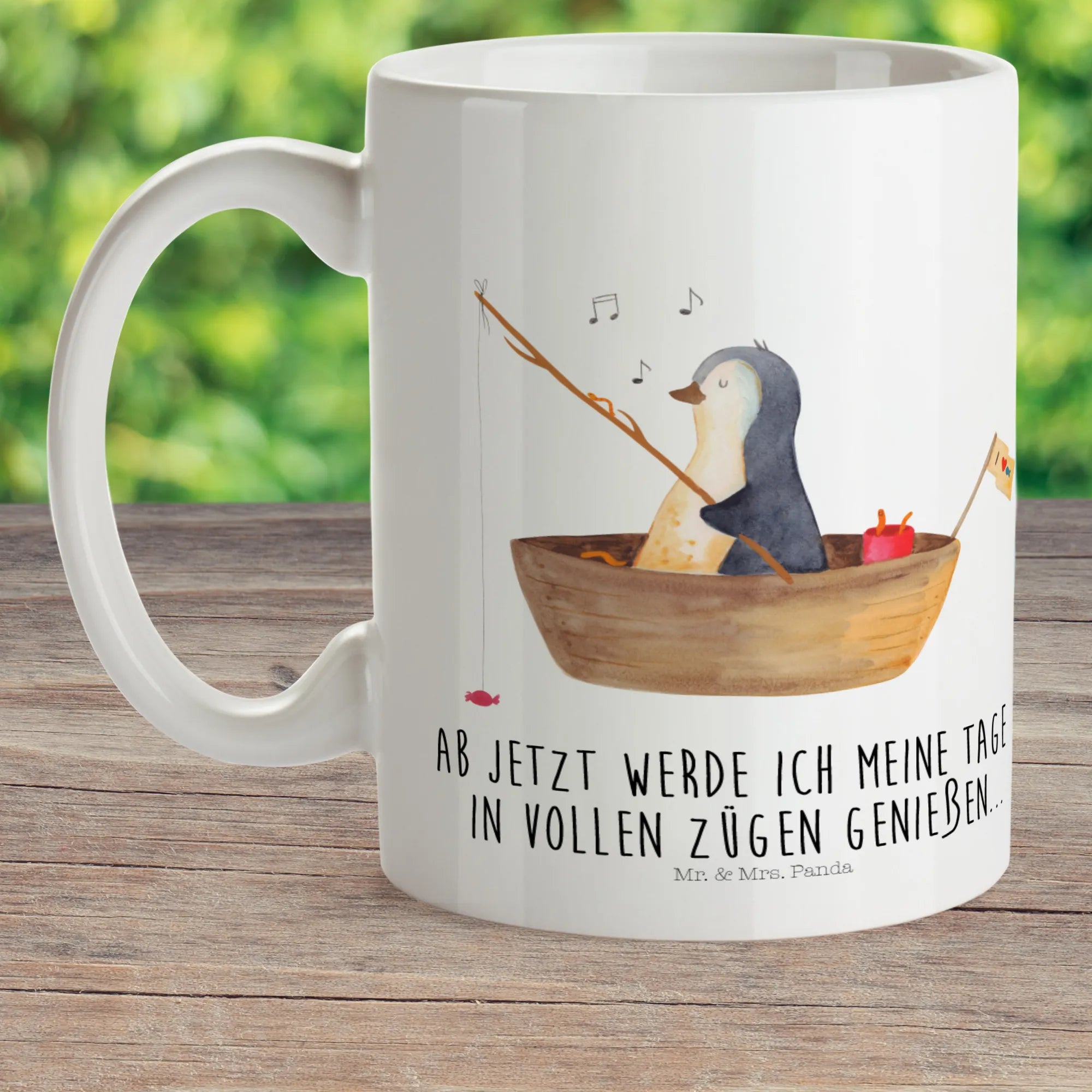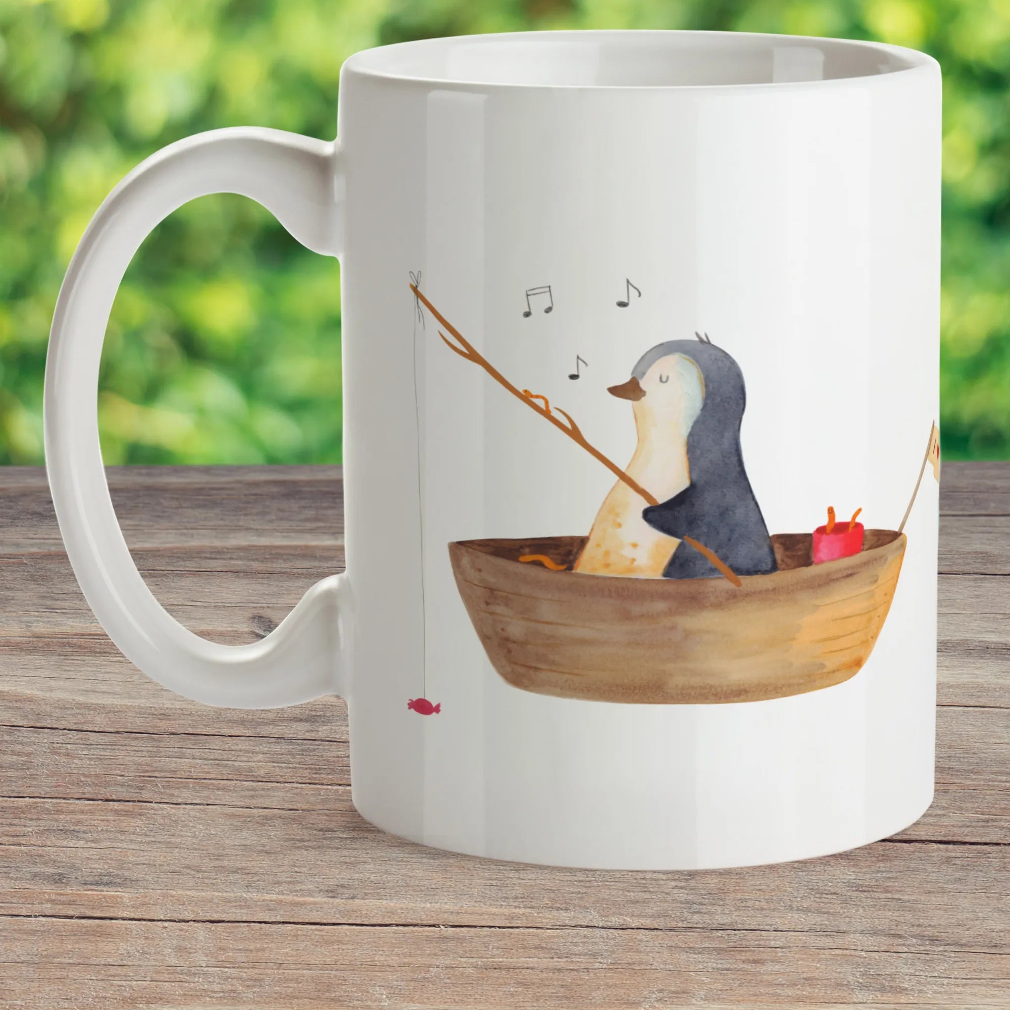 Mit einem süßen Pinguin, der fröhlich in seinem kleinen Angelboot mit Bonbons angelt, verbreitet diese Tasse Lebensfreude und gute Laune. Geeignet für jedes Alter, wird diese farbenfrohe und robuste Kindertasse schnell zur neuen Lieblingsbecher für dein Kind.