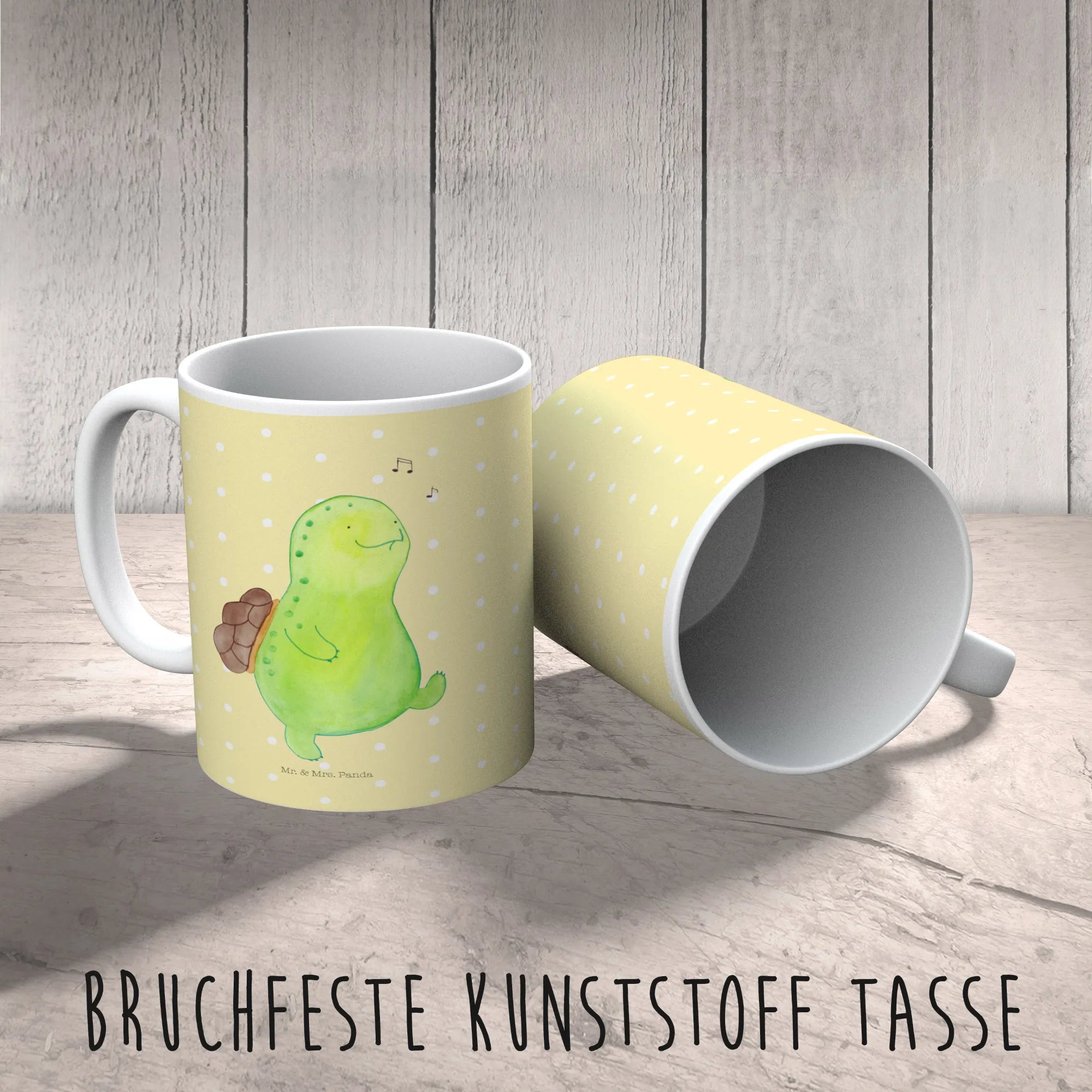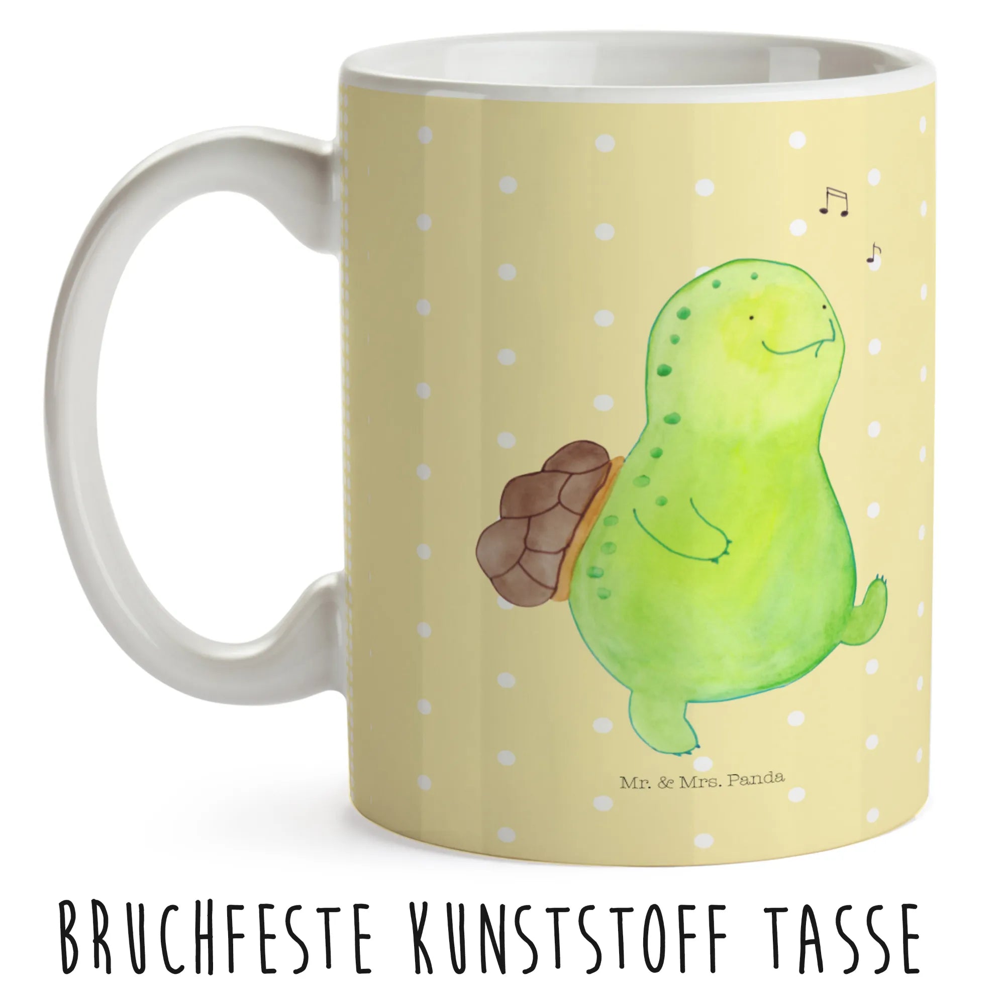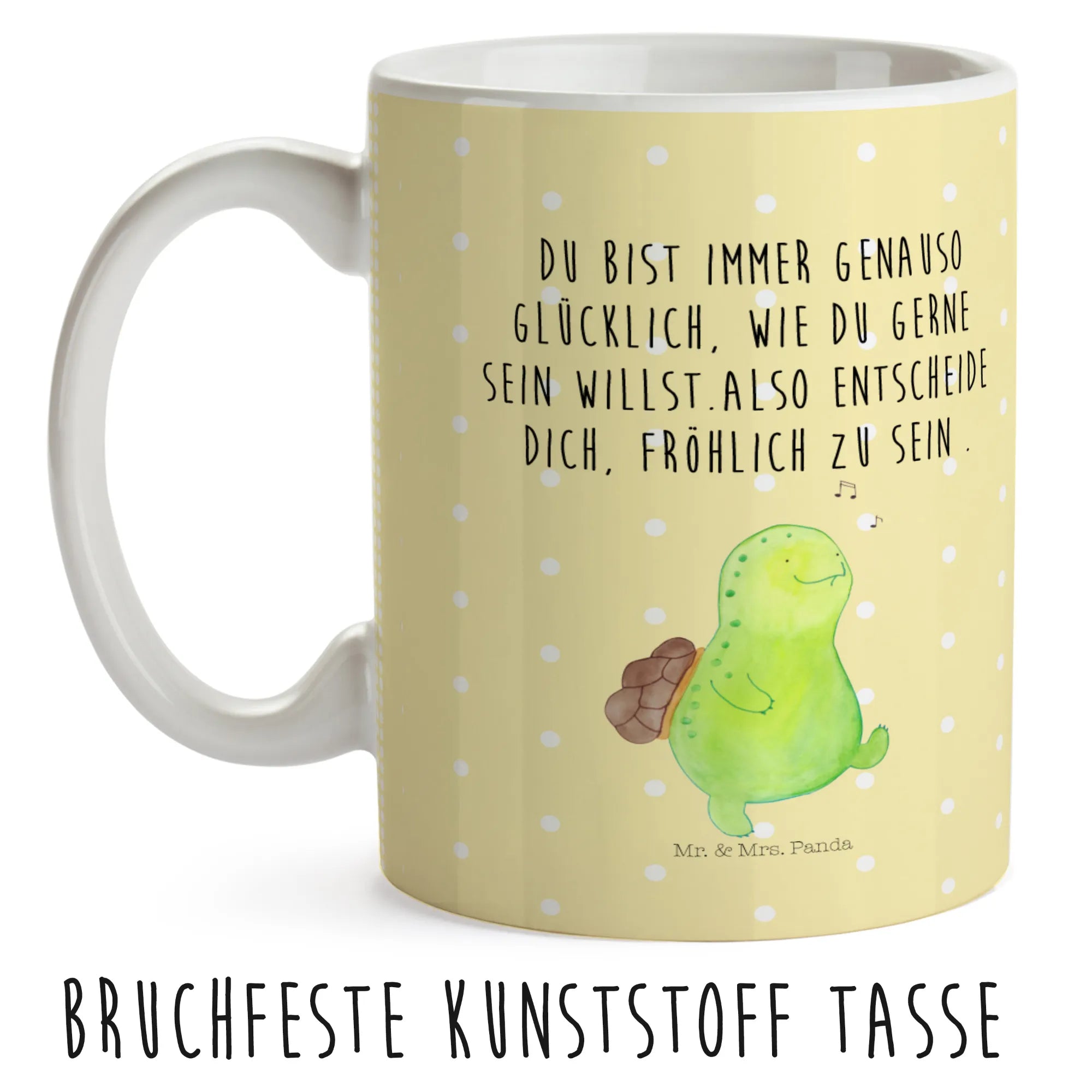 Die fröhliche Kindertasse von Mr. & Mrs. Panda mit dem süßen Schildkrötenmotiv ist das perfekte Geschenk für kleine Entdecker und Tierliebhaber. Diese bunte, bruchfeste Kindertasse aus stabilem Kunststoff begleitet Dein Kind zuverlässig in den Kindergarten, auf Reisen oder beim Camping. Mit einem Durchmesser von 80 mm und einer Füllmenge von 300 ml bietet sie genug Platz für Saft, Kakao oder andere leckere Getränke.