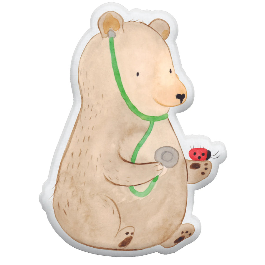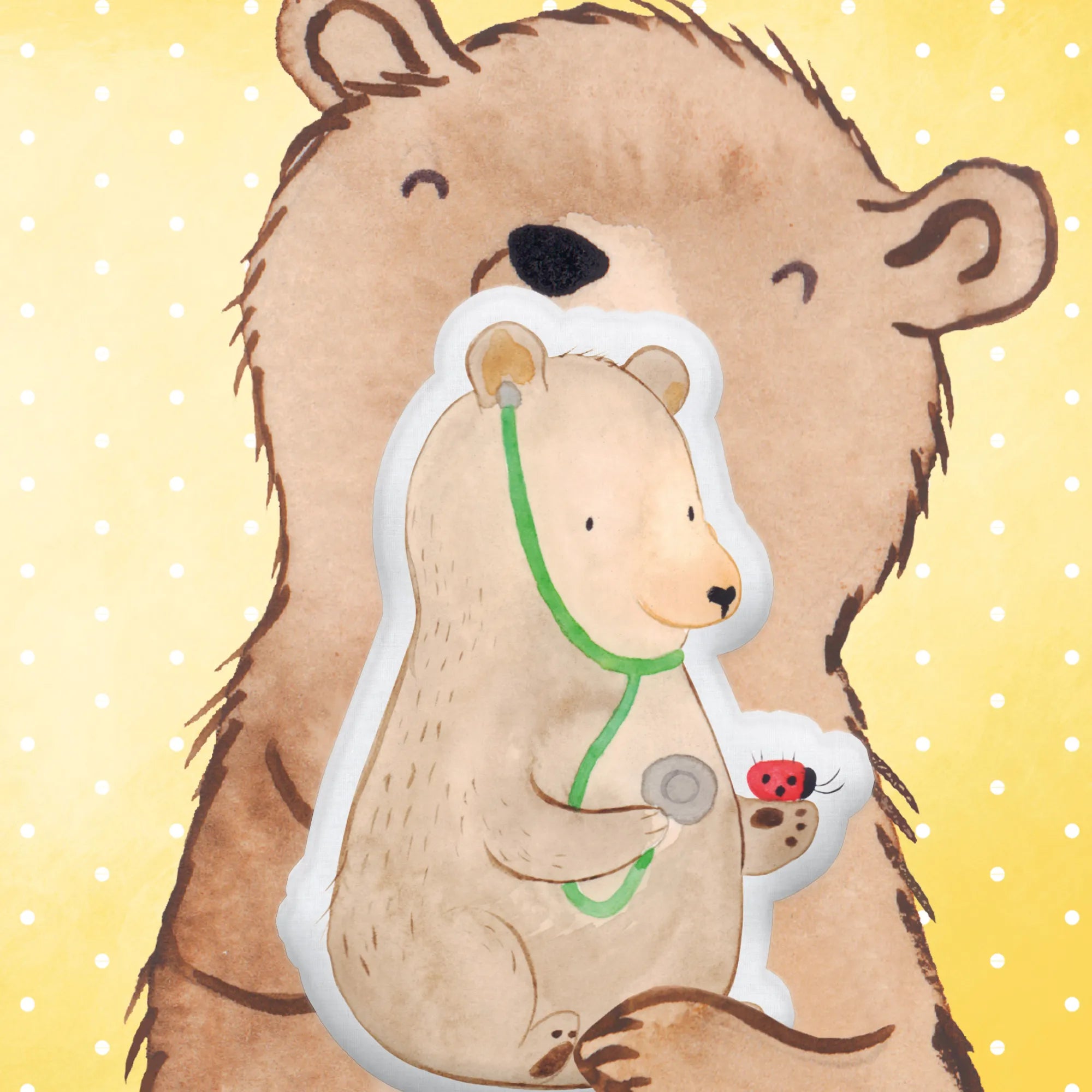 Das Kissen Kuscheltier "Bär Arzt" von Mr. & Mrs. Panda ist das perfekte Geschenk für alle, die in der Medizin arbeiten oder einfach einen ganz besonderen Kumpel zum Kuscheln brauchen. Egal, ob du Arzt, Ärztin, Doktor oder Professor bist – dieser niedliche Bär sorgt garantiert für ein Lächeln in stressigen Tagen. Mit dem Motiv eines fröhlichen Bären, der einen kleinen Marienkäfer behandelt, vermittelt das Kissen eine Botschaft von Fürsorge und Wärme.