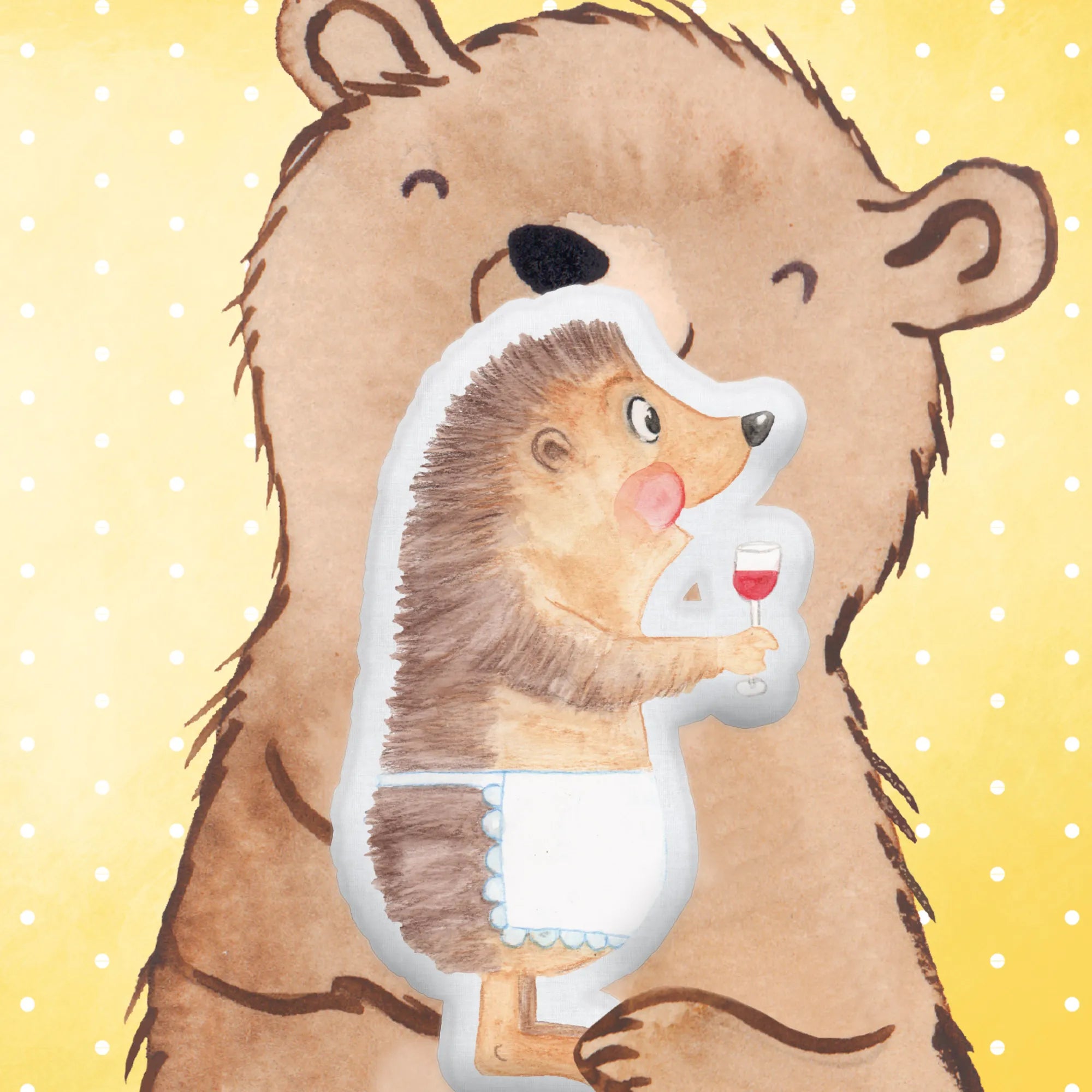 Auf der Suche nach dem perfekten Geschenk für einen Weinliebhaber oder einfach nur für dich selbst? Das Kissen Kuscheltier mit dem bezaubernden Motiv des Igel mit Wein von Mr. & Mrs. Panda ist genau das Richtige!