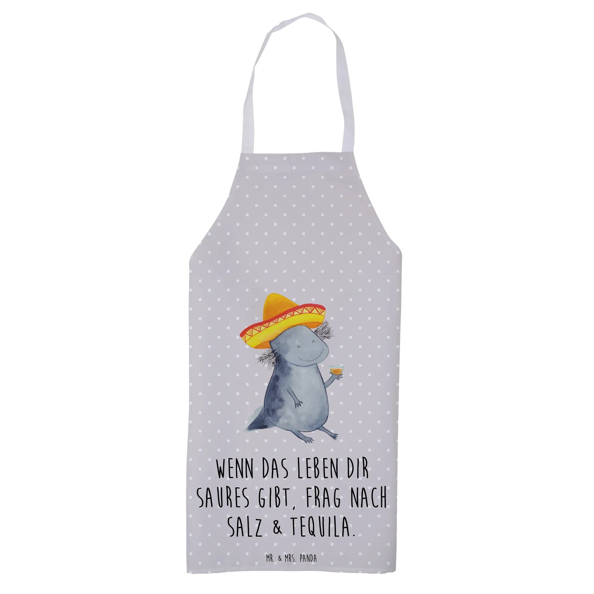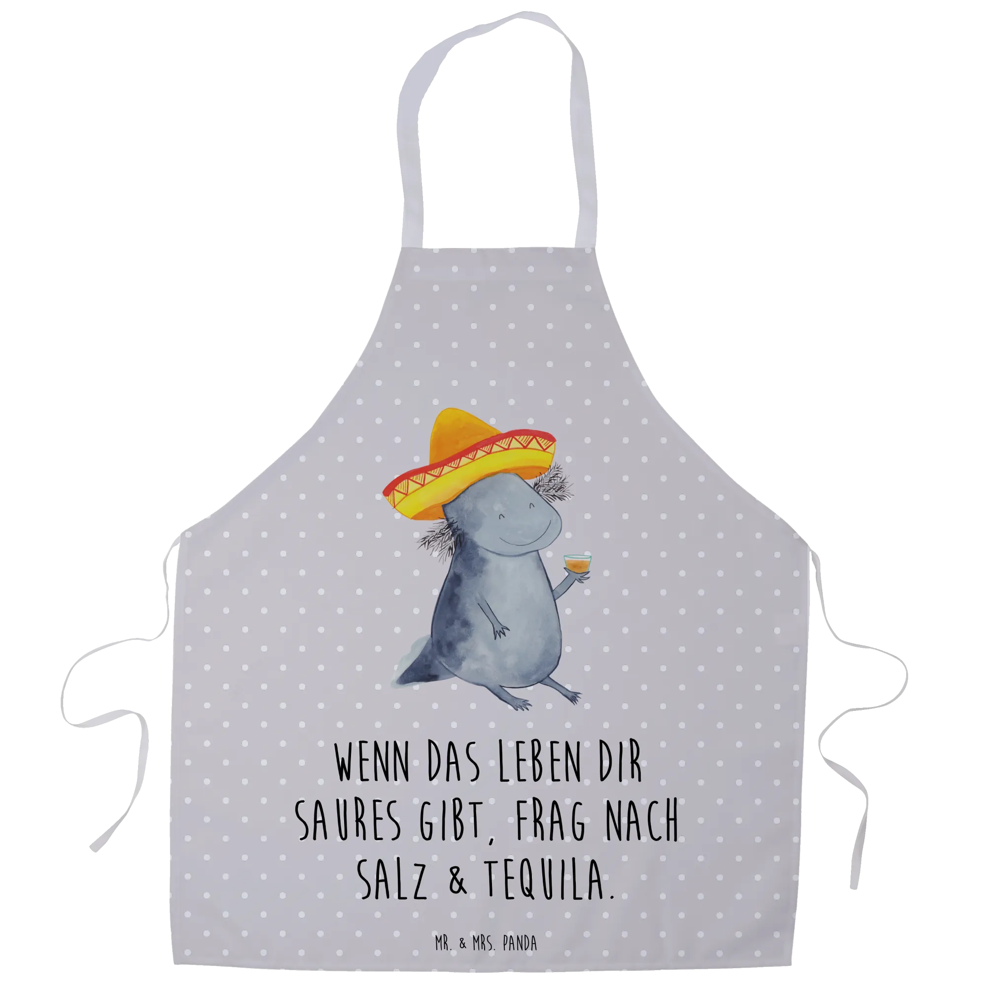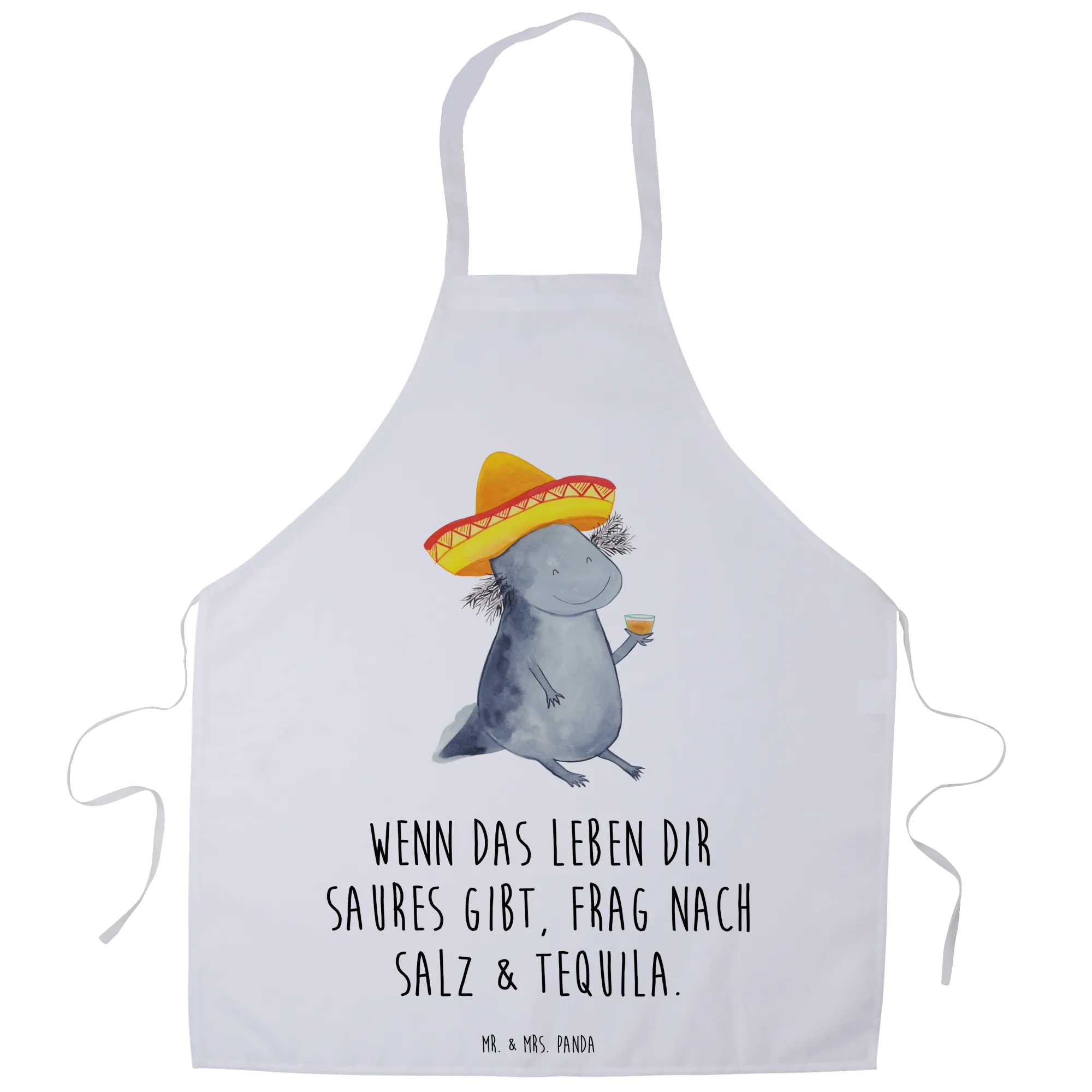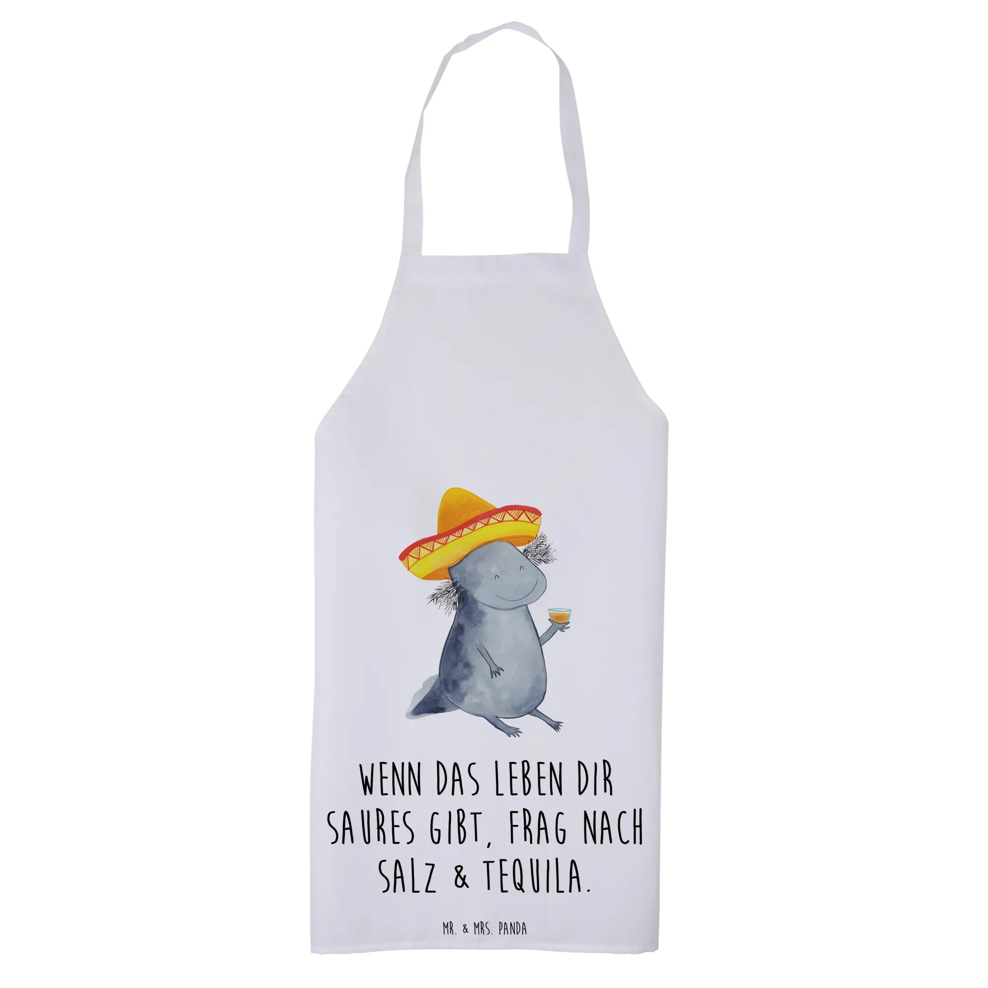 Entdecke die zauberhafte Kochschürze von Mr. & Mrs. Panda mit dem süßen Axolotl Tequila Motiv!