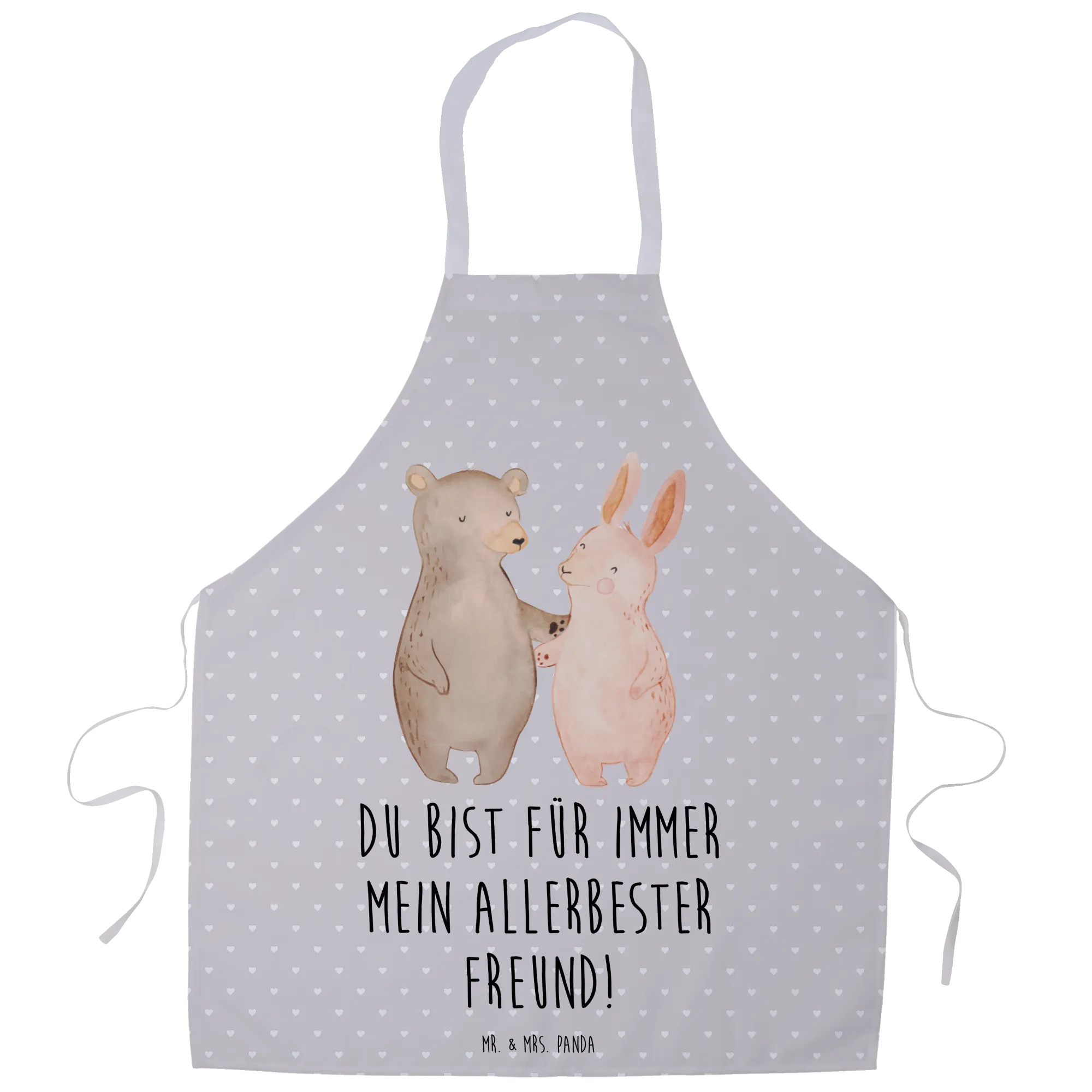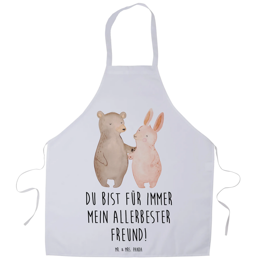 Die süßen Aquarell-Motive von Mr. & Mrs. Panda machen diese Schürze zu einem echten Hingucker. Sie zeigen einen Bären und einen Hasen in einer herzlichen Umarmung, die Verbundenheit und Freude symbolisieren. Das Design strahlt Wärme aus und ist nicht nur ideal für dich selbst, sondern auch ein wunderschönes Geschenk für deinen besten Freund oder deine beste Freundin.