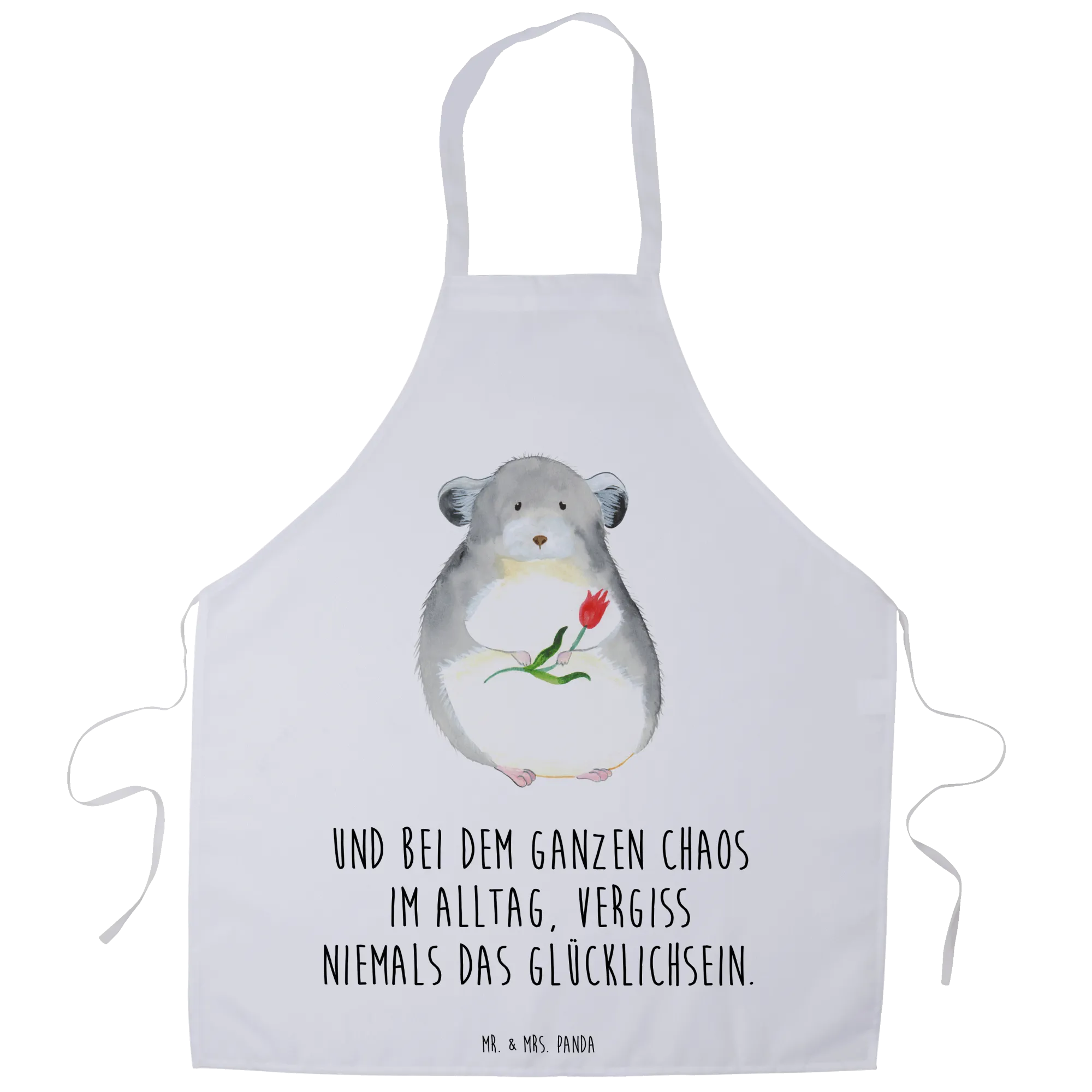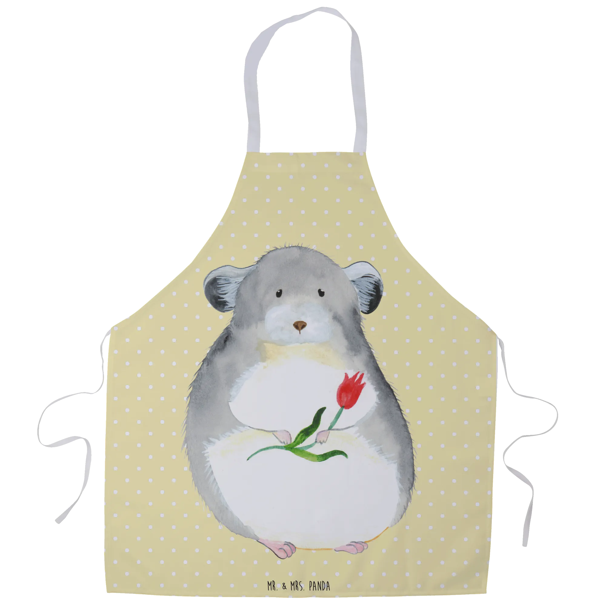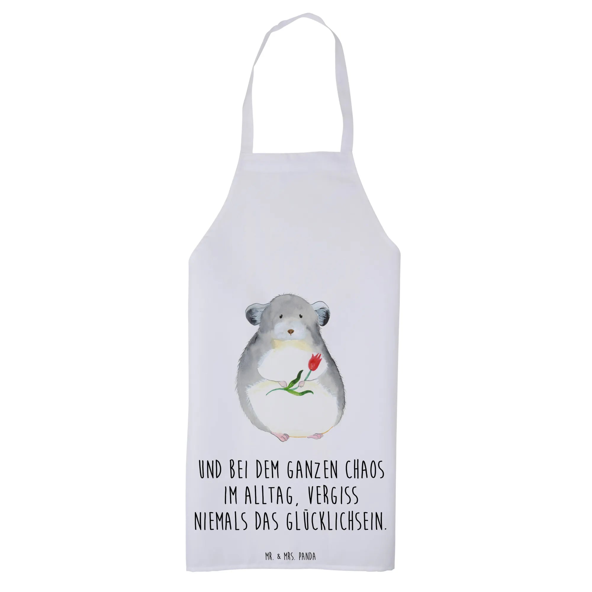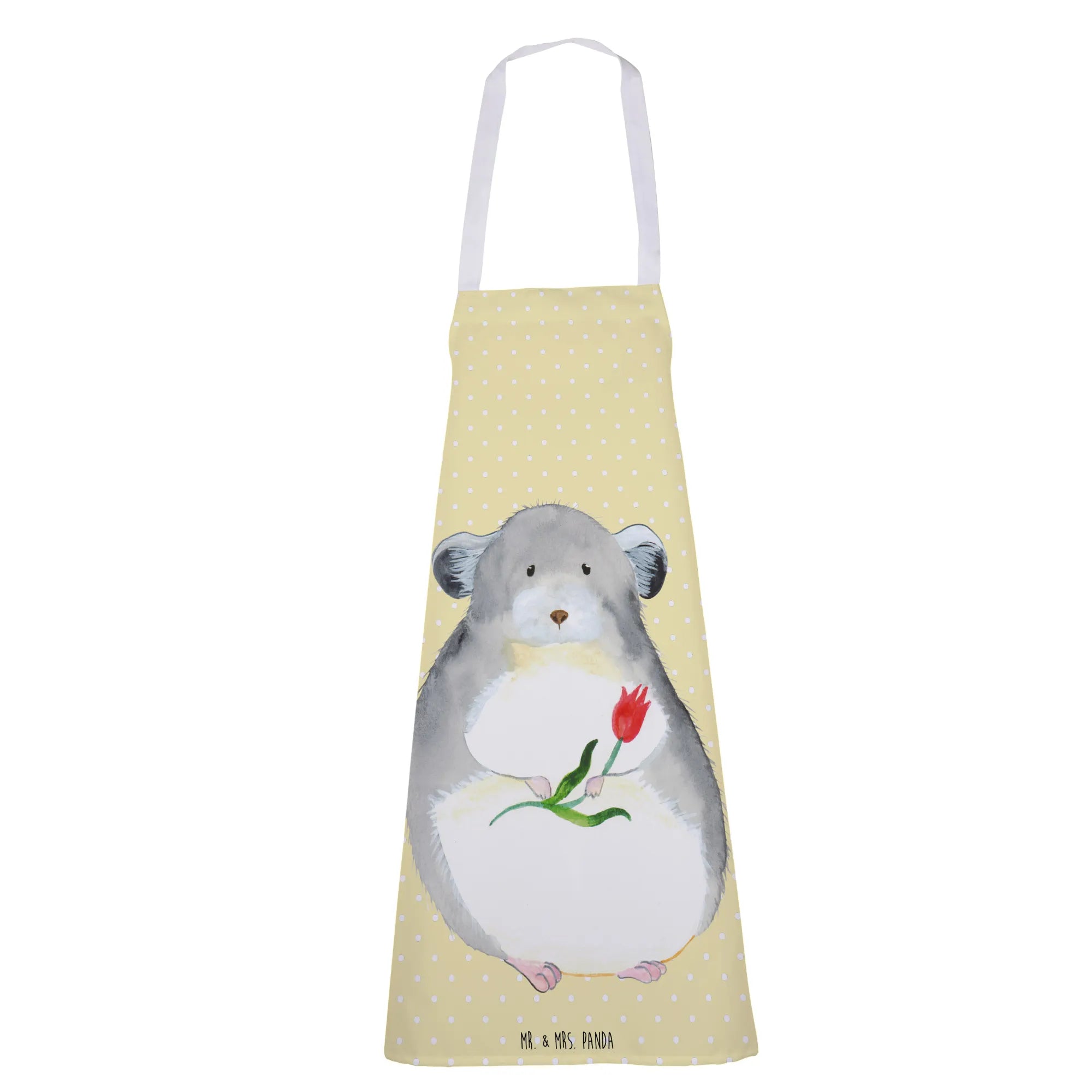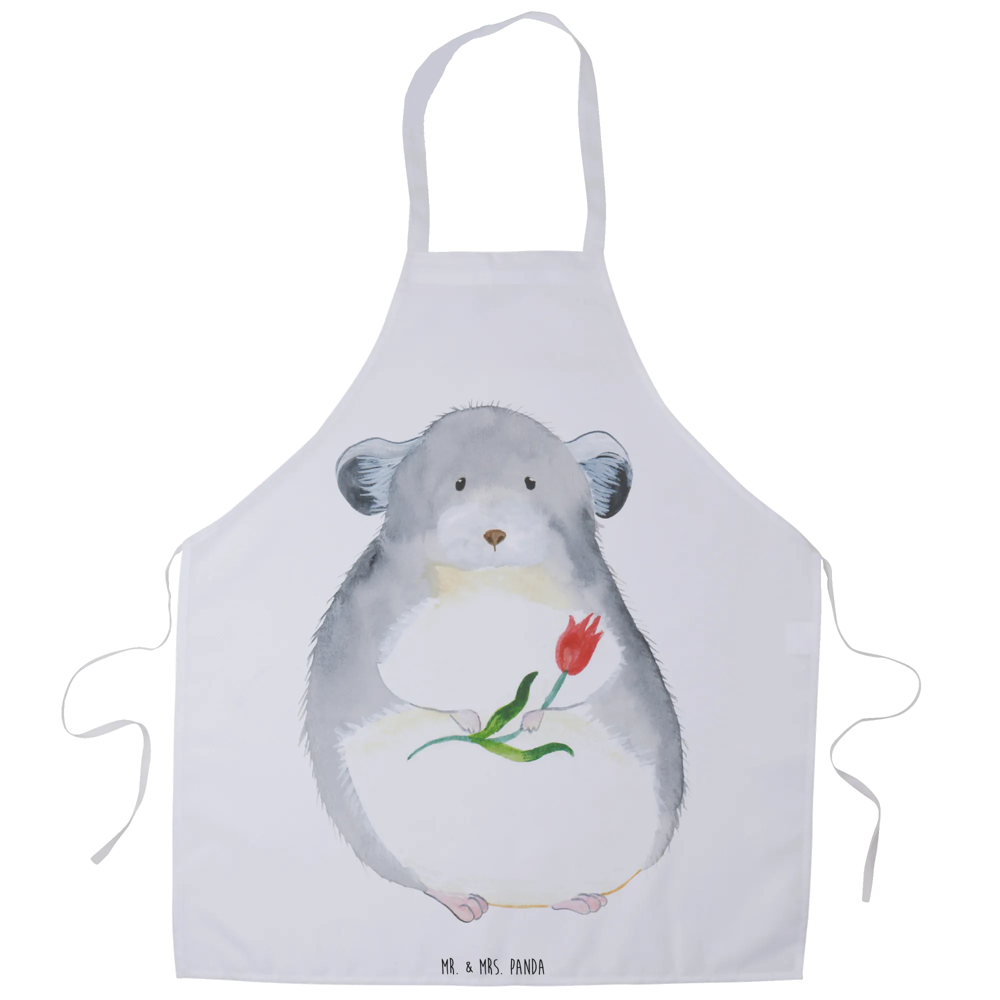 Entdecke die zauberhafte Kochschürze "Chinchilla mit Blume" aus der Small World Kollektion von Mr. & Mrs. Panda! Diese hochwertige Küchenschürze ist nicht nur ein echter Hingucker, sondern auch das perfekte Geschenk für Kochbegeisterte und Tierliebhaber. Die Schürze besticht durch ihr niedliches Motiv eines Chinchillas, das dich mit großen Augen und einem bunten Blumenstrauß in der Hand anschaut. Mit ihrer von Hand gezeichneten Darstellung und den liebevollen Details bringt sie Freude und gute Laune in deine Küche!