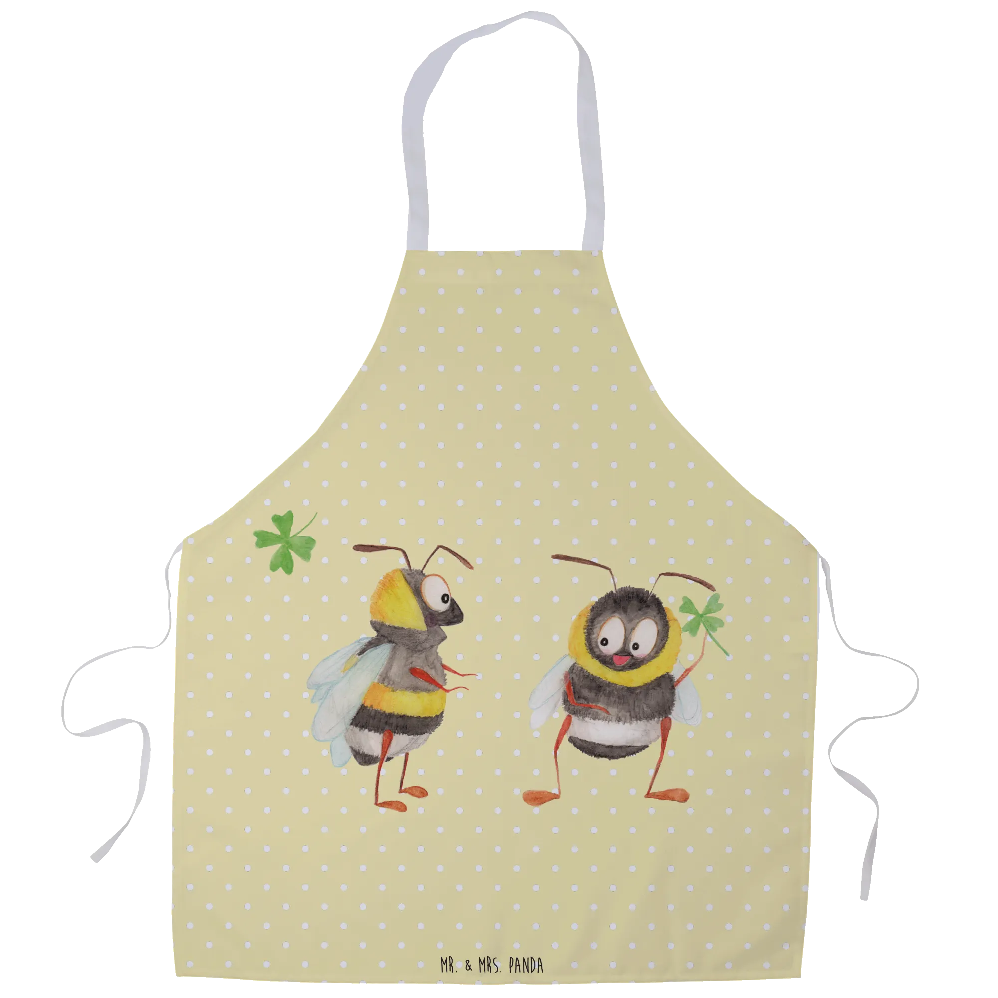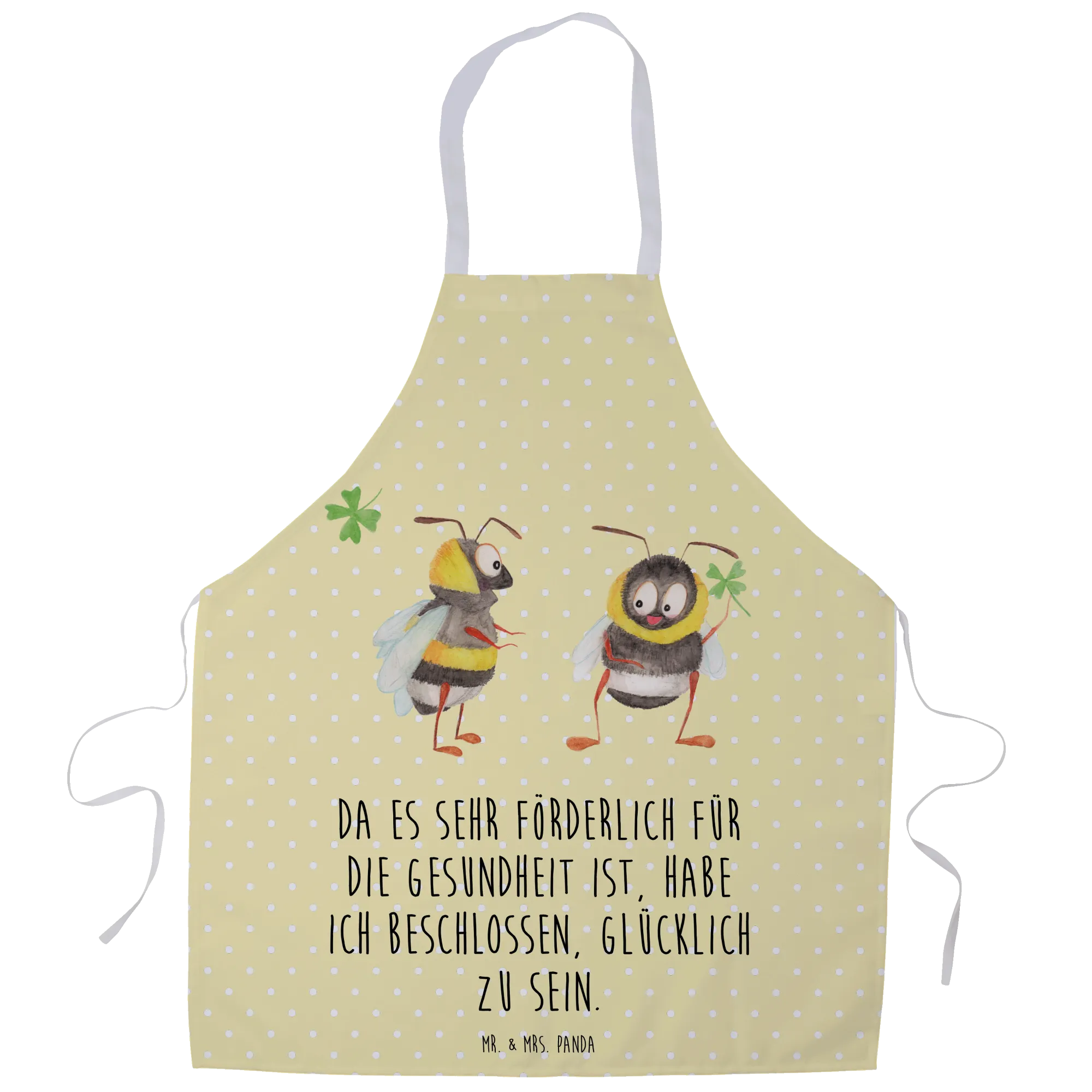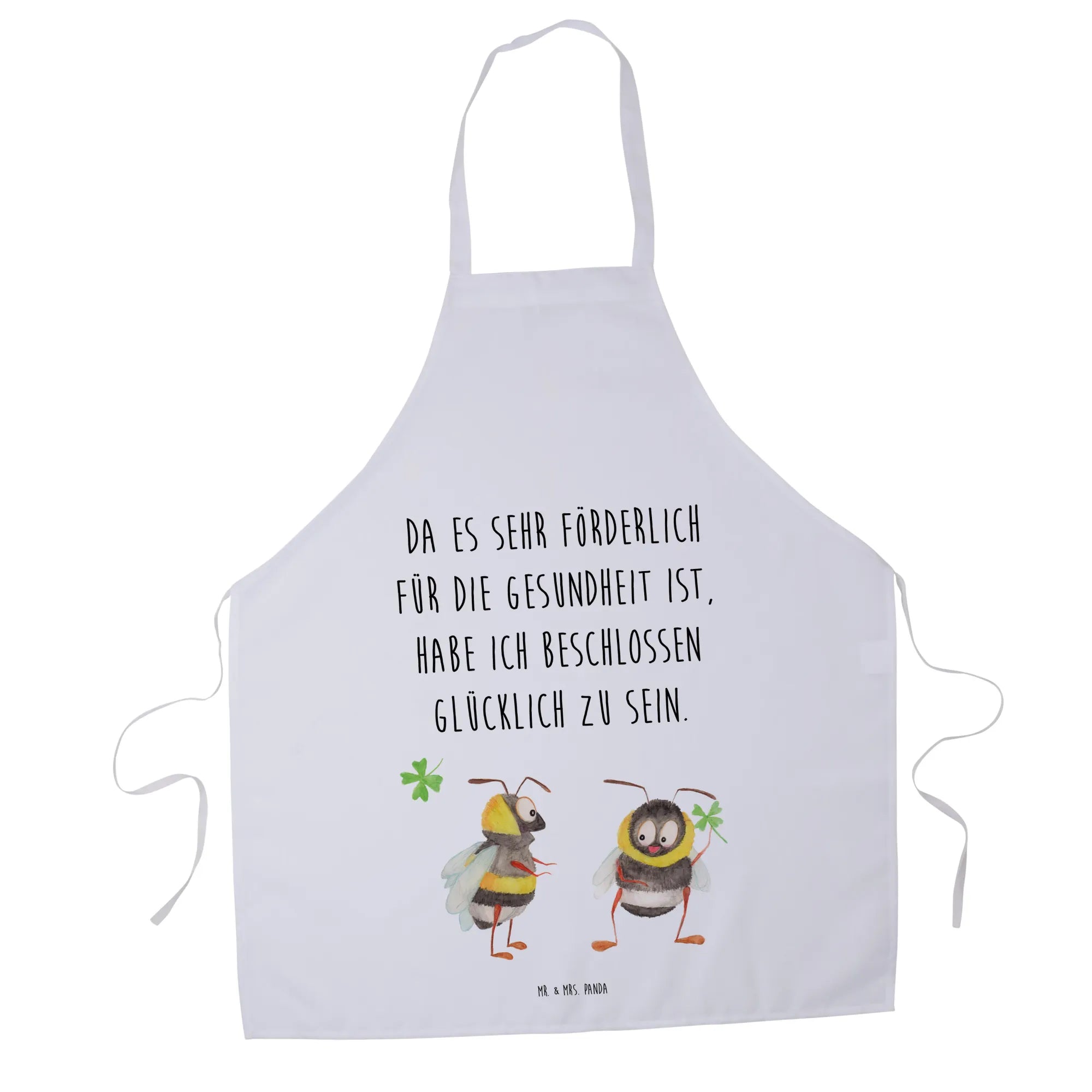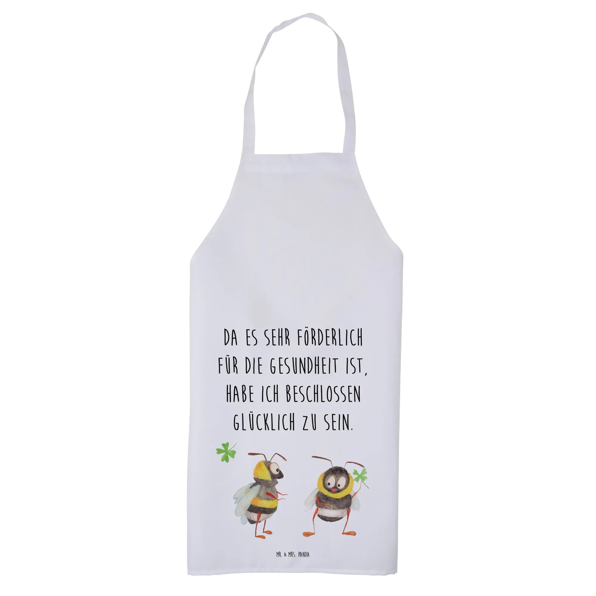 Die wunderschöne Kochschürze von Mr. & Mrs. Panda mit dem zauberhaften Motiv "Hummeln mit Kleeblatt" ist das perfekte Geschenk für alle, die gerne kochen, backen oder grillen.
