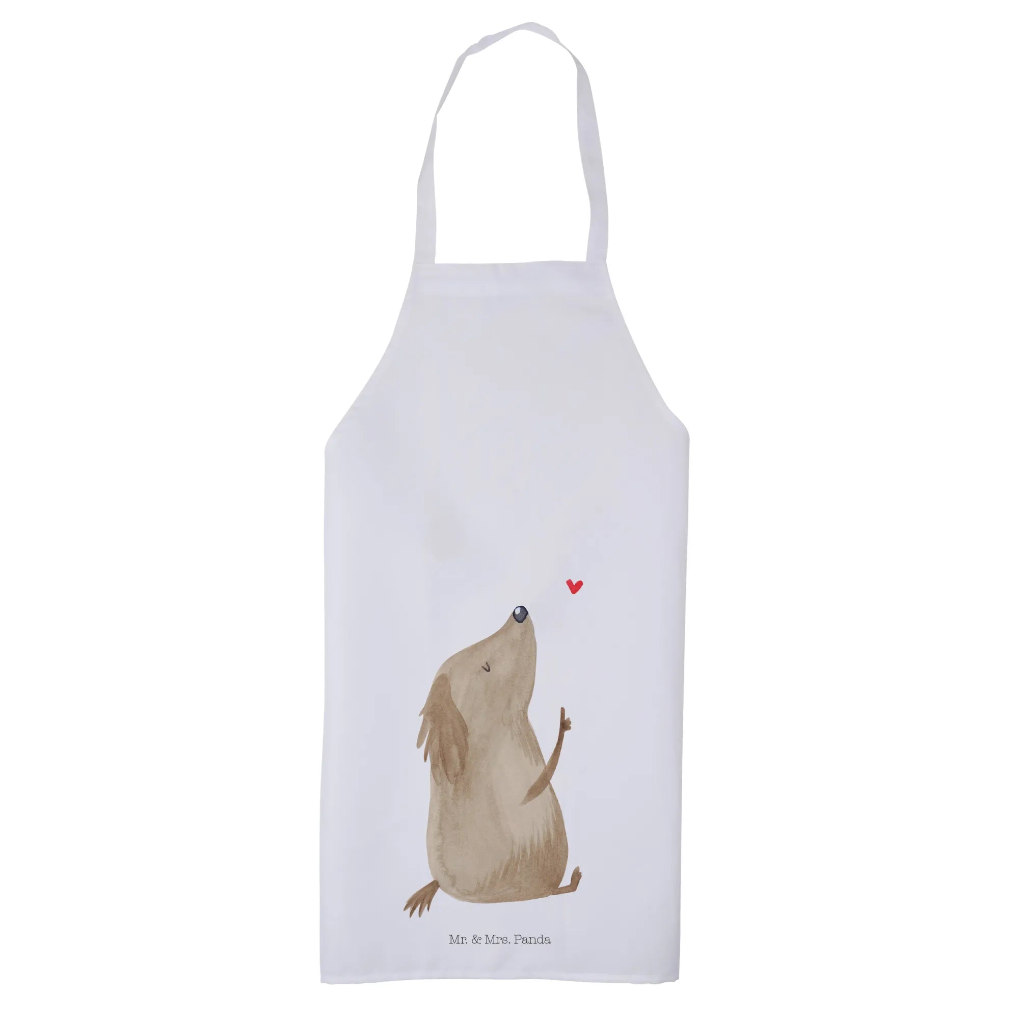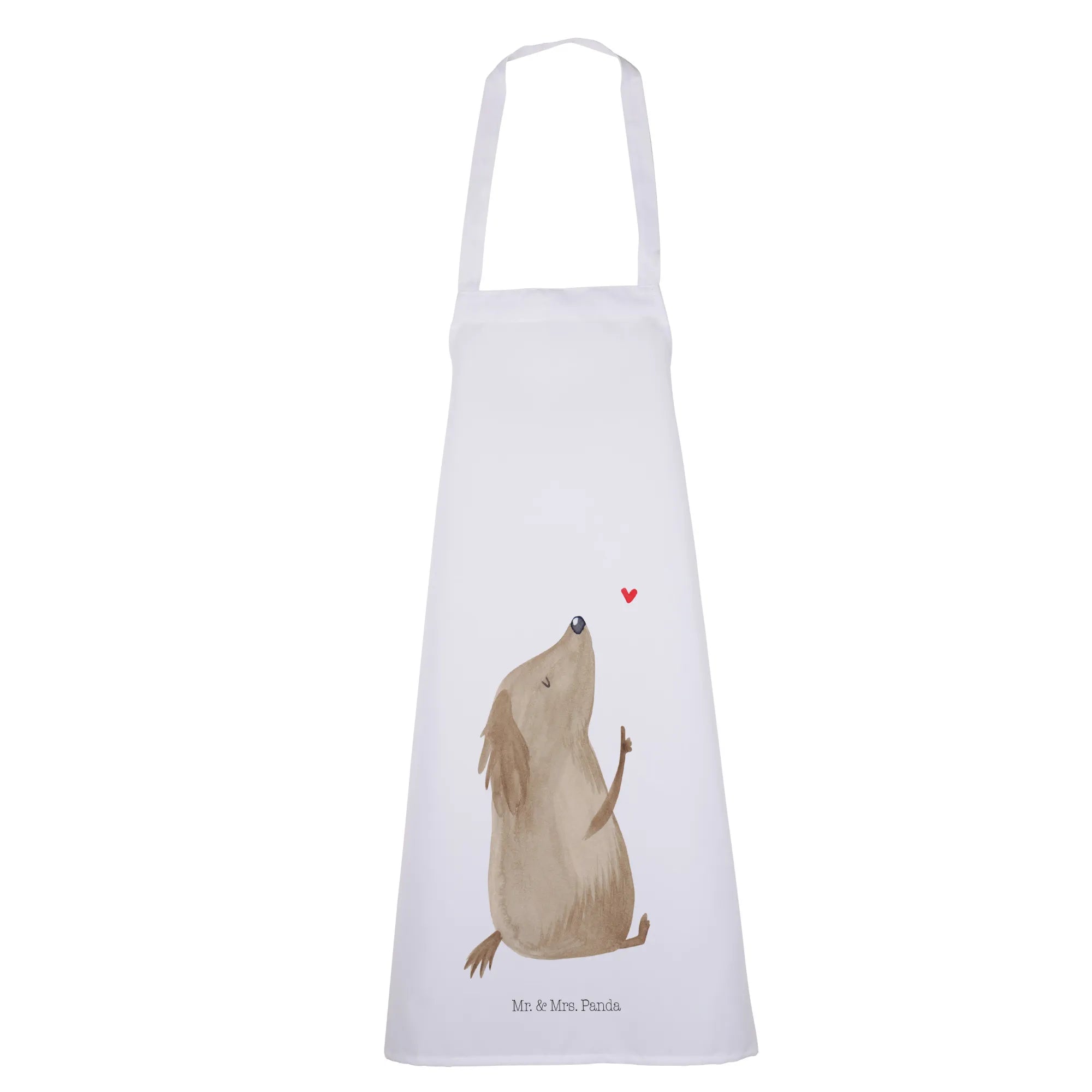 Die Kochschürze "Hund Liebe" von Mr. & Mrs. Panda ist das perfekte Geschenk für alle Hundeliebhaber und Kochbegeisterten! Mit einem süßen Motiv eines Hundes, der ein kleines Herz zeigt, bringt diese Schürze Freude in jede Küche.