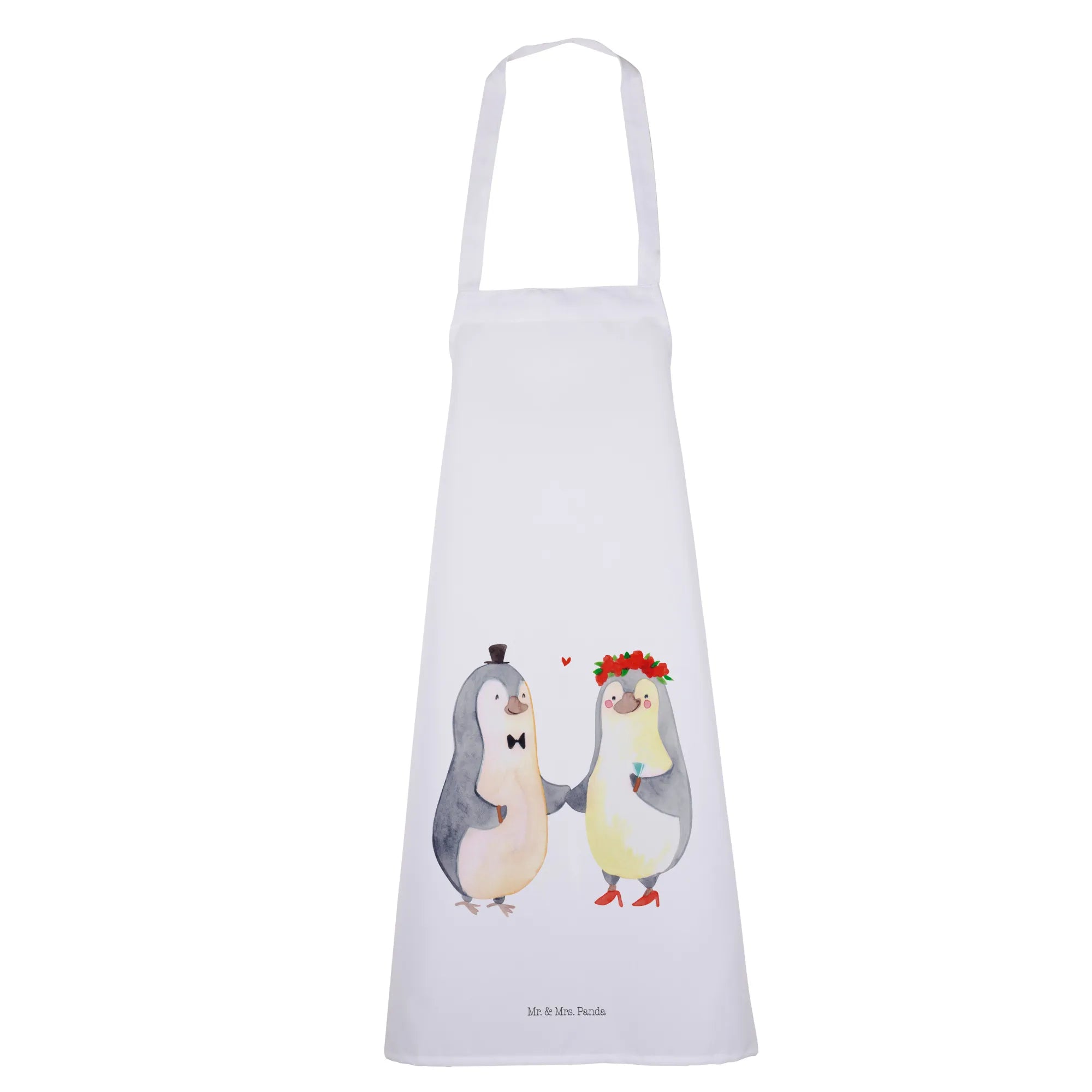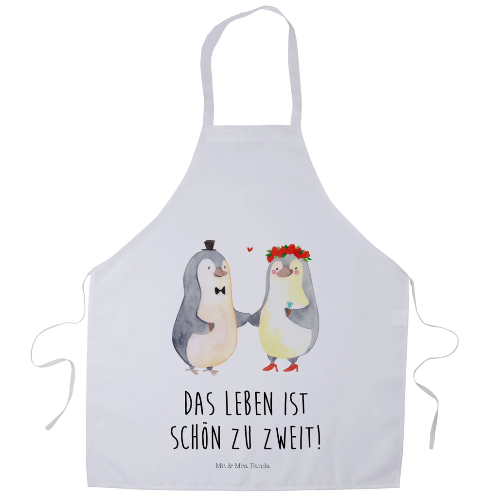 Kochschürze Pinguin Heirat - mit Spruch - Weiß