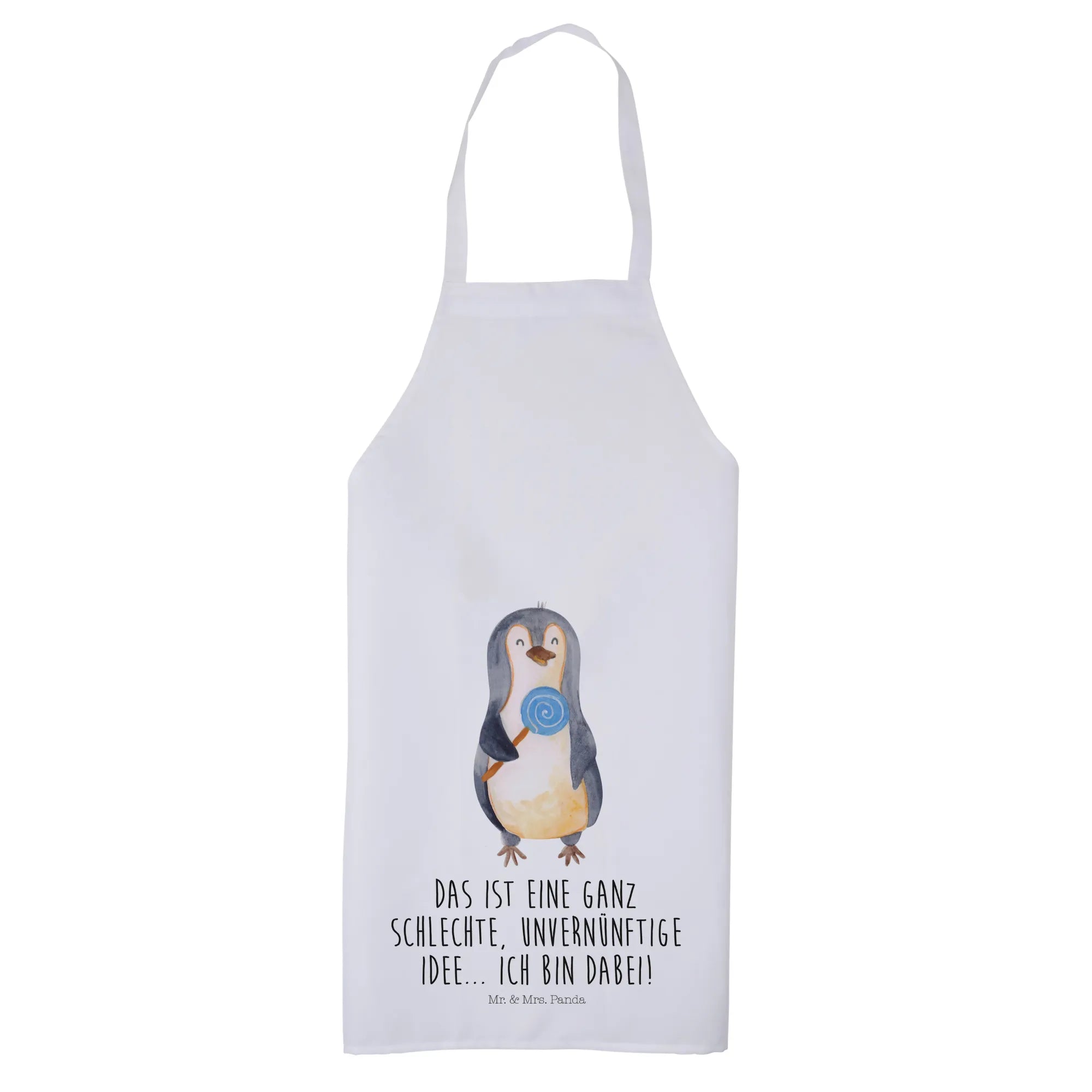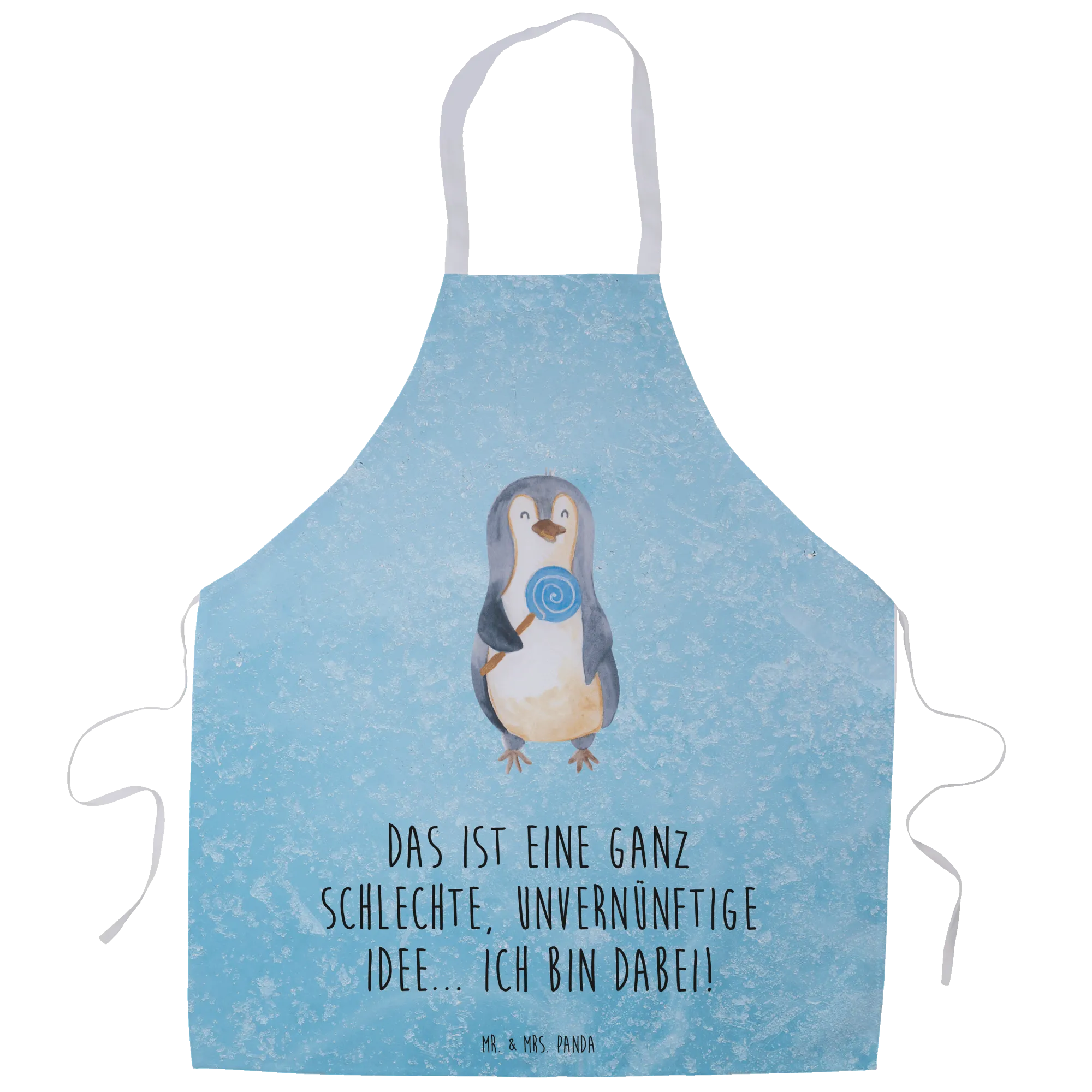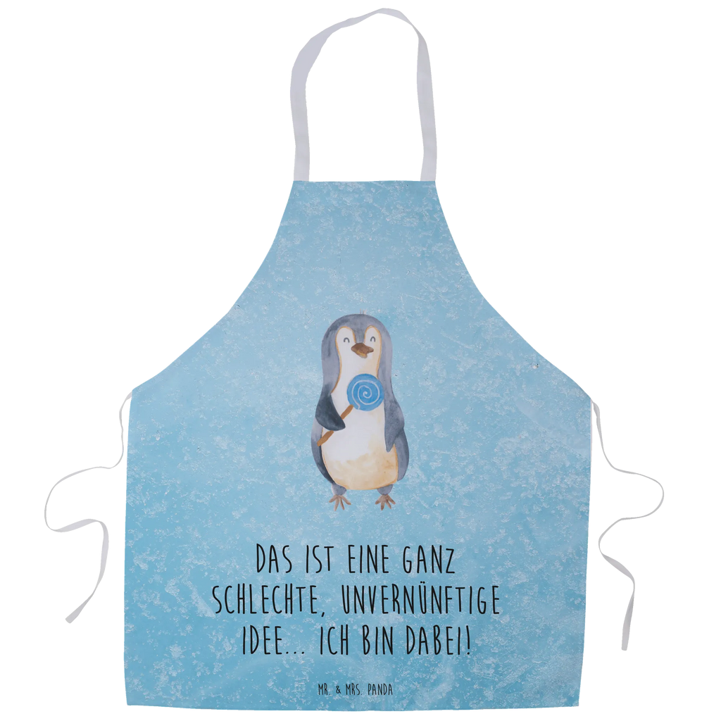 Entdecke die perfekte Kochschürze von Mr. & Mrs. Panda – die Kochschürze mit dem süßen Pinguin Lolli-Motiv aus unserer Pinguin-Kollektion! Diese wunderschöne Schürze ist nicht nur ein praktisches Küchenutensil, sondern auch ein echter Hingucker. Ob beim Kochen, Backen oder Grillen, diese Schürze macht Freude und bringt frischen Wind in die Küche! Mit der Aufschrift 'Das ist eine ganz schlechte, unvernünftige Idee... Ich bin dabei!' verleihst du deinem Kochabenteuer einen Hauch von Humor. Der entzückende Pinguin mit seinem Lieblingslutscher verzaubert jeden auf den ersten Blick.
