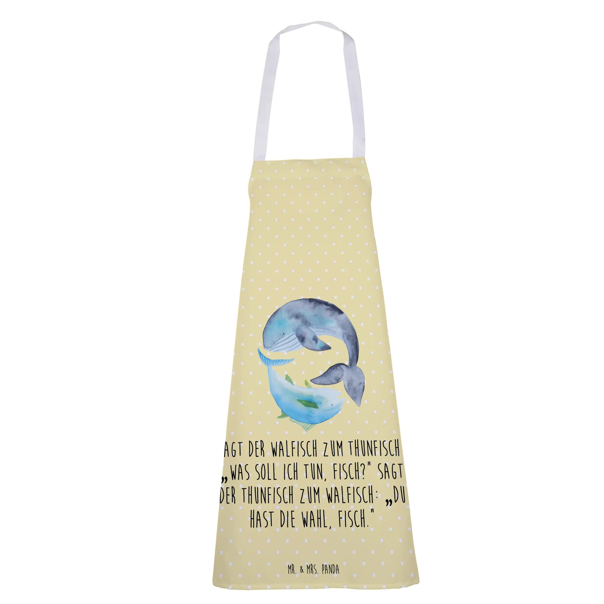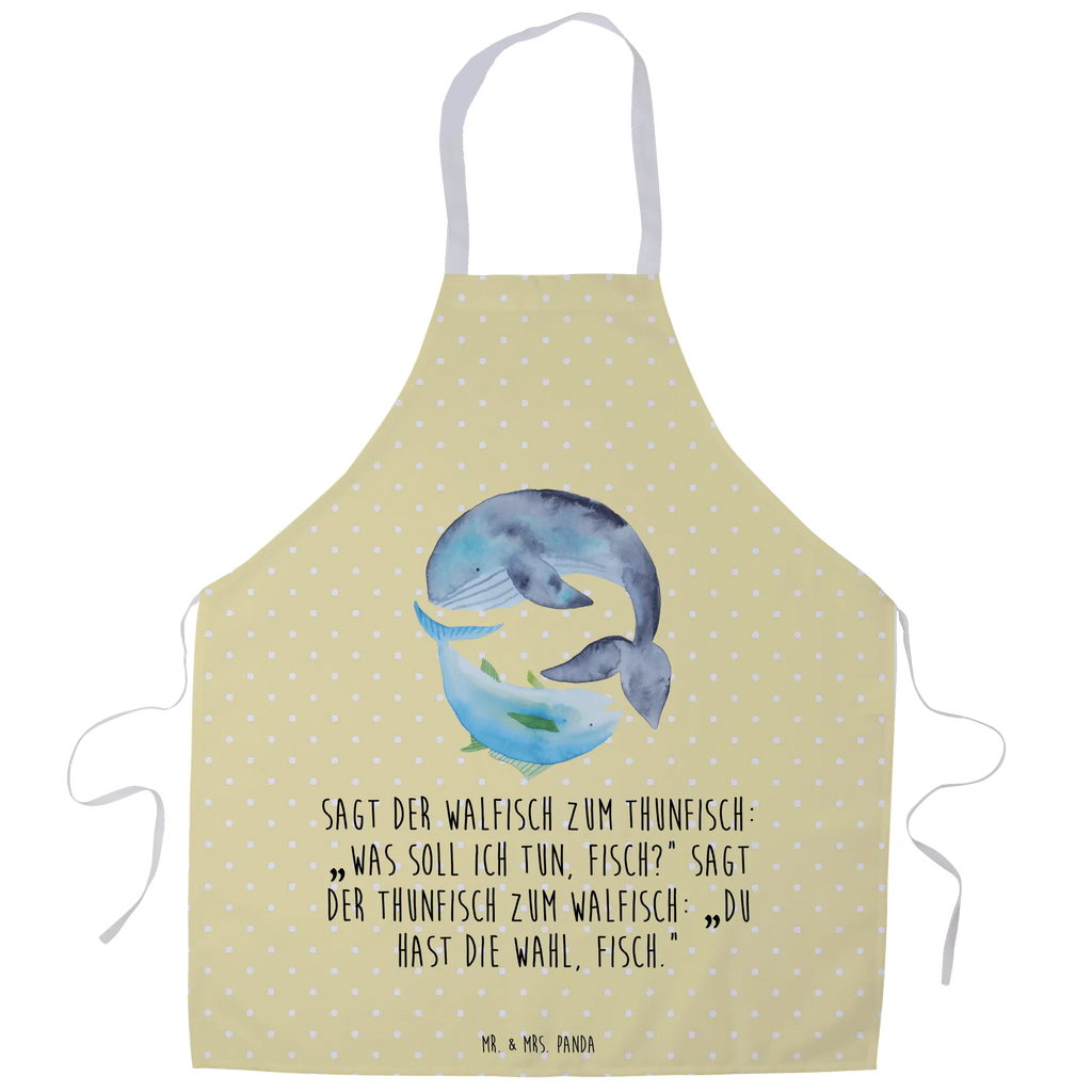 Kochschürze Walfisch Thunfisch - mit Spruch - Gelb Pastell
