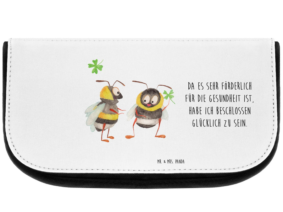 Der strapazierfähige Kunstfaser-Material garantiert, dass deine Kosmetiktasche auch unterwegs immer gut aussieht und sich leicht reinigen lässt. Die Frontseite der Tasche ist hochwertig mit einem süßen Motiv von Mr. & Mrs. Panda bedruckt: zwei niedliche Hummeln, die sich gegenüberstehen und ein Kleeblatt halten. Dieses Motiv symbolisiert Glück und Verbundenheit - perfekt, um die Freude mit deinem Lieblingsmenschen zu teilen.