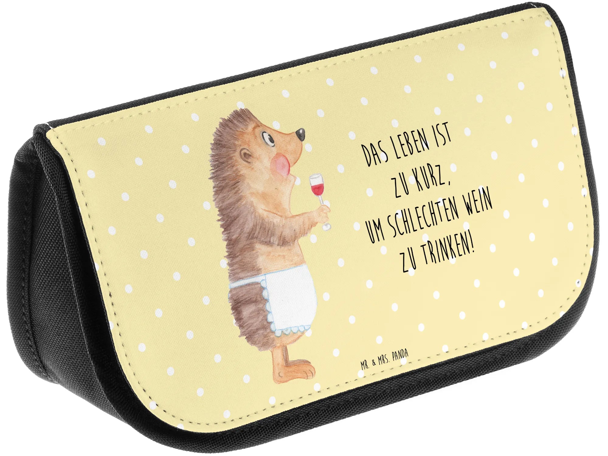 Die Kosmetiktasche "Igel mit Wein" von Mr. & Mrs. Panda vereint Funktionalität mit einem liebevollen Design - einfach unwiderstehlich!