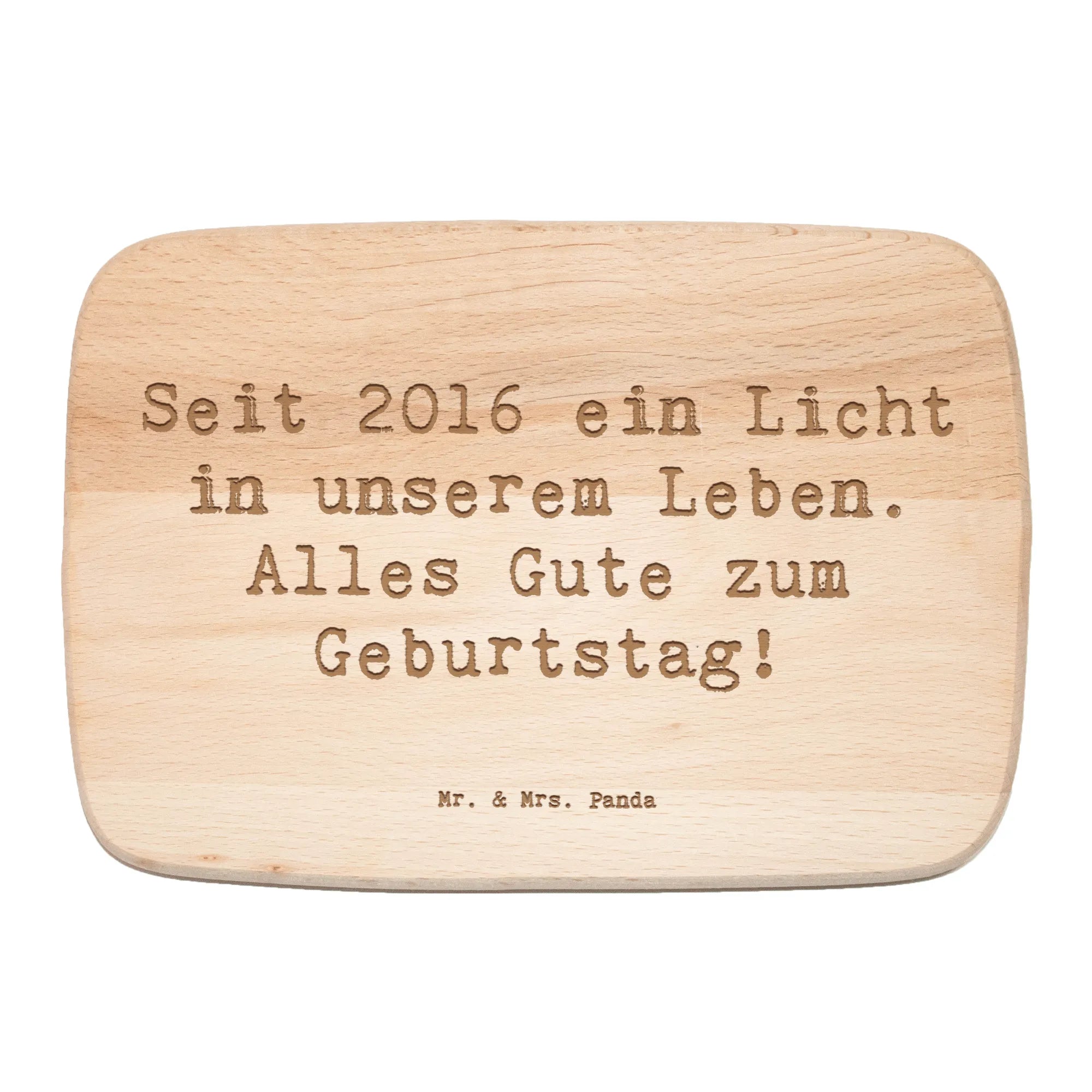 Das liebevoll gestaltete Frühstücksbrett von Mr. & Mrs. Panda ist das perfekte Geschenk für alle, die im Jahr 2016 das Licht der Welt erblickt haben. Mit dem Slogan 'Seit 2016 ein Licht in unserem Leben. Alles Gute zum Geburtstag!' wird es zu einem ganz besonderen Geburtstagsgeschenk. Das Frühstücksbrettchen aus robustem Birkenholz vereint Funktionalität und Ästhetik und ist ideal für das Servieren von Frühstück oder leckeren Snacks.