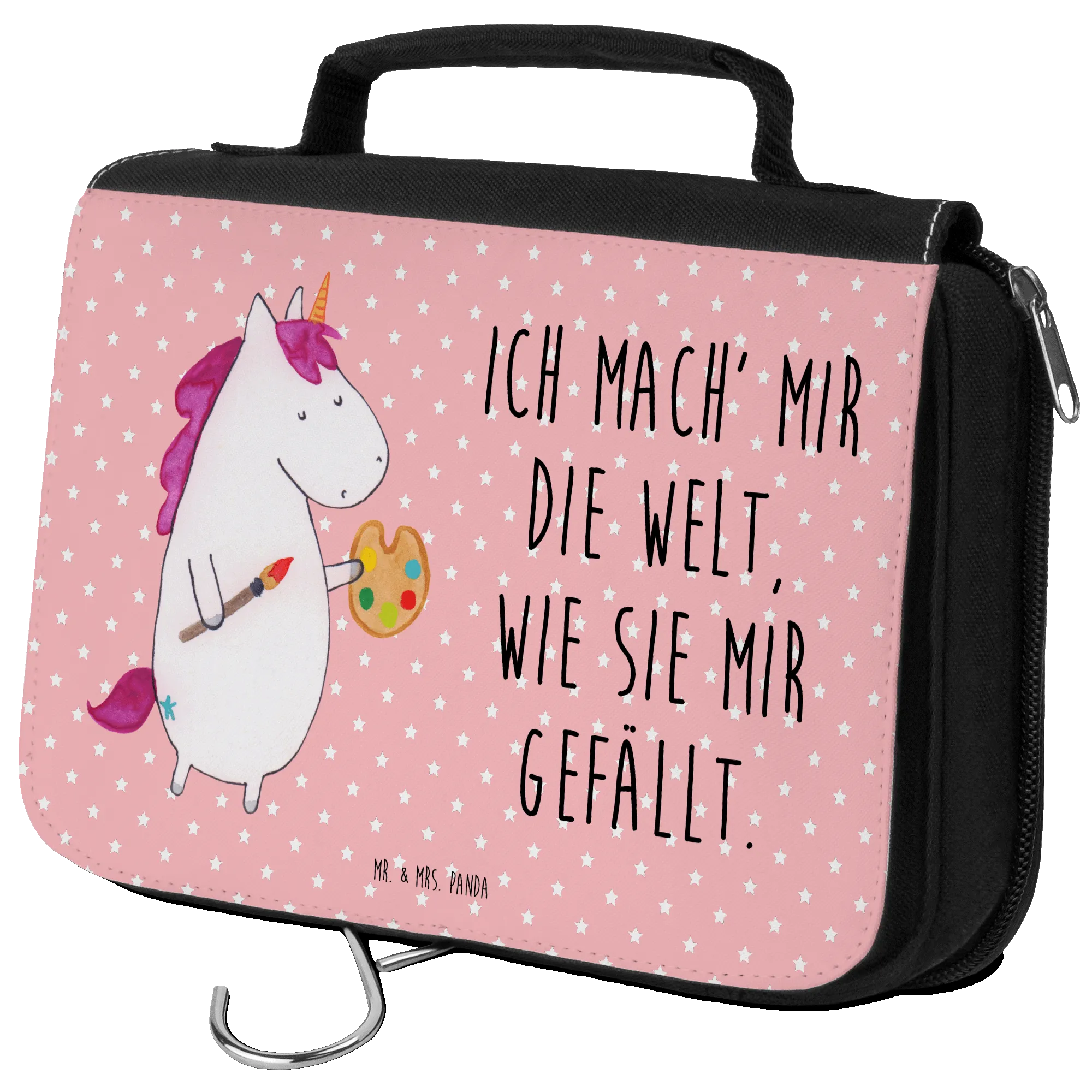 Suchst du nach dem perfekten Geschenk für kreative Köpfe und Einhorn-Liebhaber? Dann ist dieser wunderschöne Kulturbeutel von Mr. & Mrs. Panda genau das Richtige! Bedruckt mit dem zauberhaften Motiv "Einhorn Künstler" und dem tollen Spruch "Ich mach' mir die Welt, wie sie mir gefällt." inspiriert er dazu, die eigene Welt bunt und einzigartig zu gestalten. Ob für Reisen oder den Alltag – in diesem praktischen Organizer ist genug Platz für all deine Kosmetik- und Hygieneprodukte. Die Maße von 225 mm x 225 mm machen ihn zu einem platzsparenden Begleiter, der in jeden Koffer oder Rucksack passt.