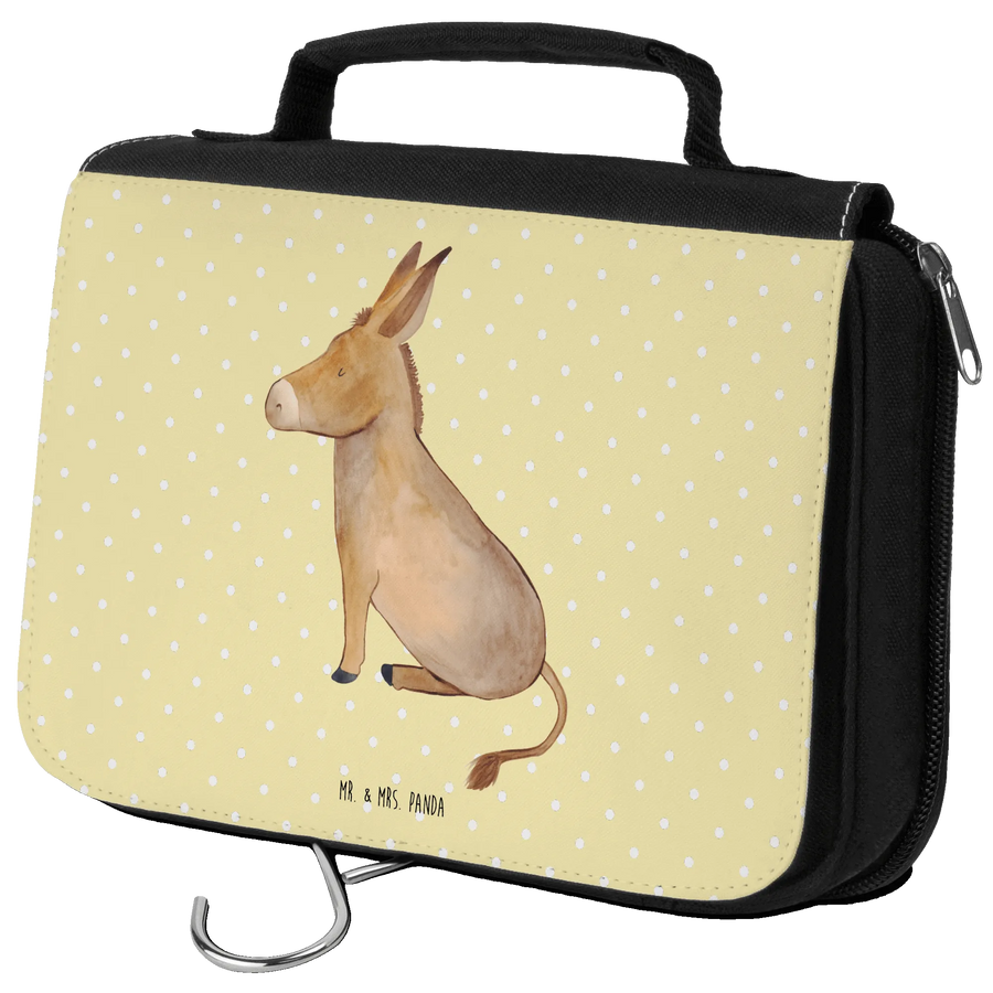 Ein wunderschöner Kulturbeutel von Mr. & Mrs. Panda – dein treuer Begleiter für Alltag und Reise. Diese Kulturtasche zeigt den liebevoll gezeichneten Esel aus der Small World-Kollektion auf sanftem Gelb Pastell. Der Spruch „Im Grunde genommen denken wir zu viel und wagen zu wenig.“ ist ein täglicher Mutmacher, der dich beim Packen lächeln lässt. 😊