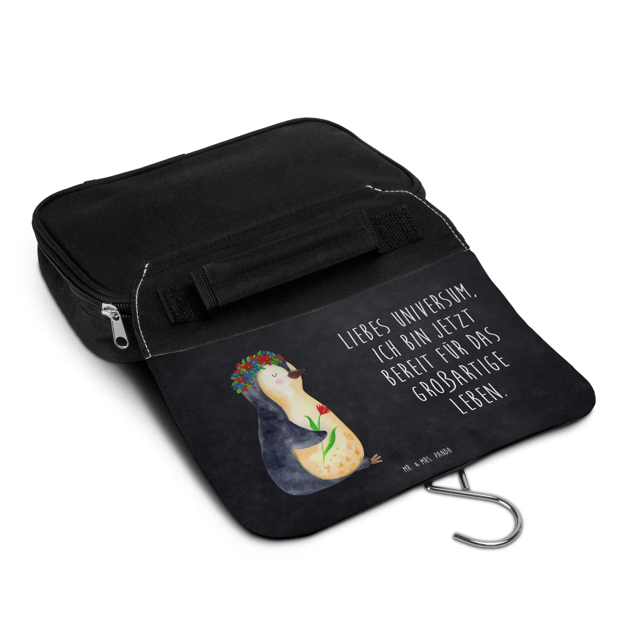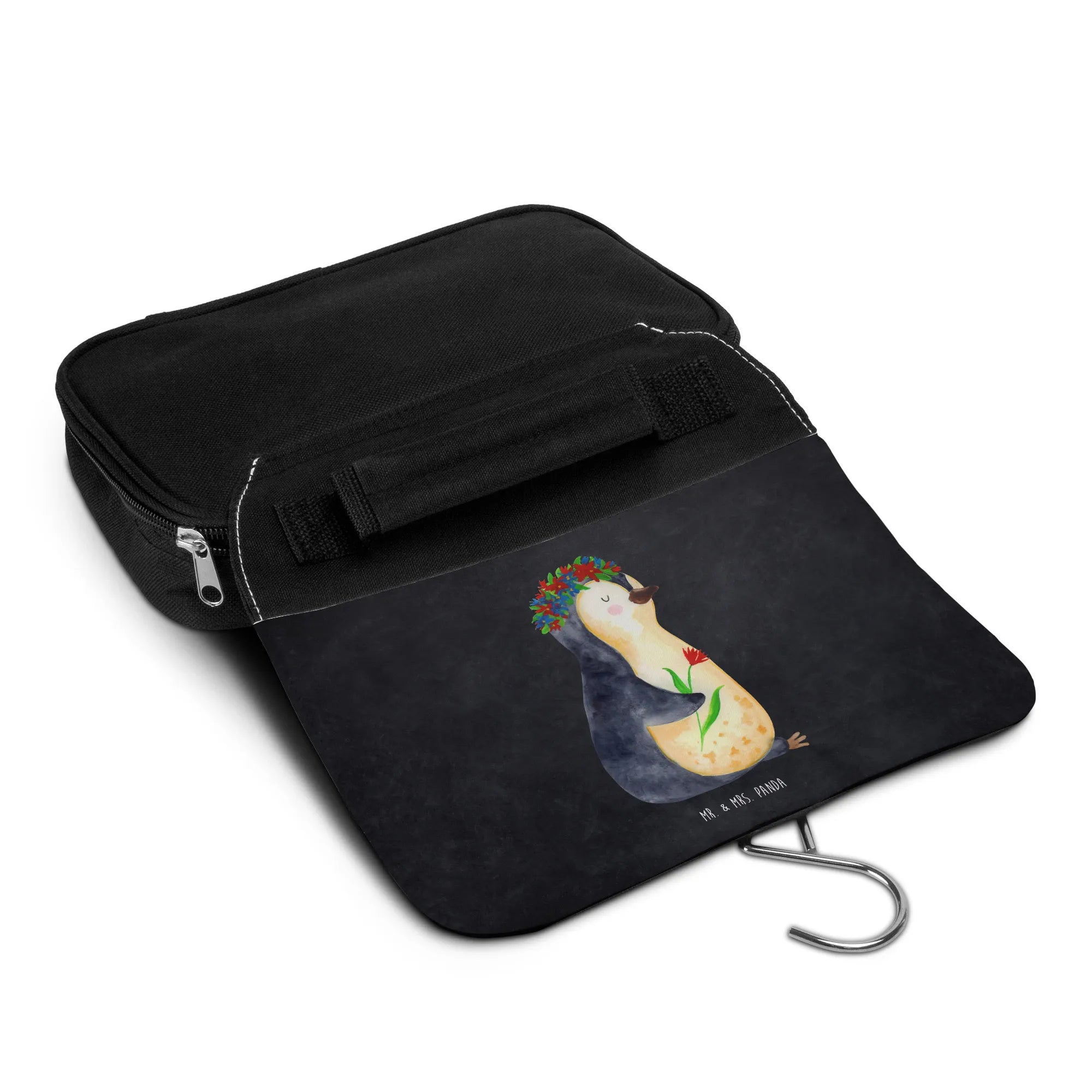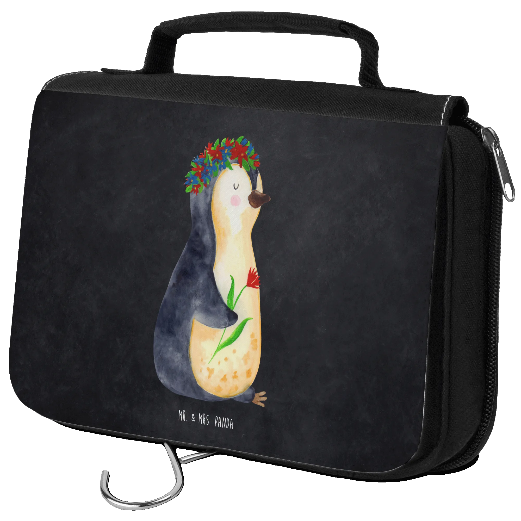 Wenn du auf der Suche nach dem perfekten Geschenk für einen Reisebegeisterten oder einfach für jemanden mit einer Vorliebe für niedliche Dinge bist, dann ist der Kulturbeutel Pinguin Blumenkranz von Mr. & Mrs. Panda genau das Richtige! Mit seinem charmanten Design, das einen süßen Pinguin mit bunten Blumen auf dem Kopf zeigt, bringt er Freude und Farbe in jede Toilettentasche.