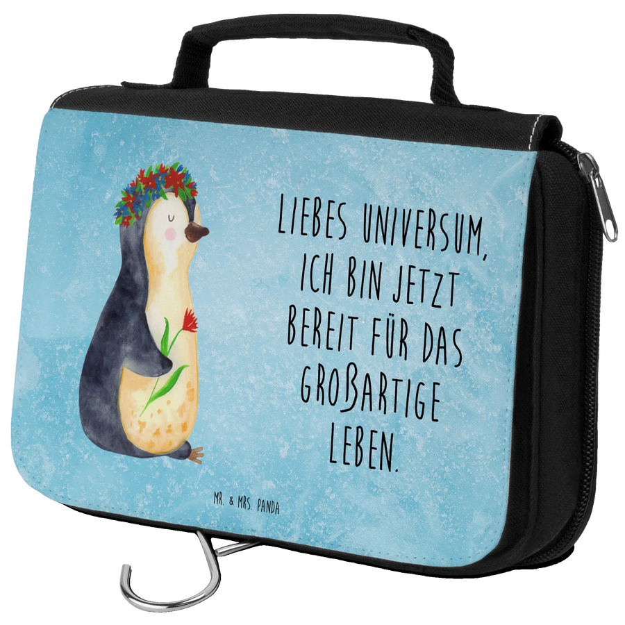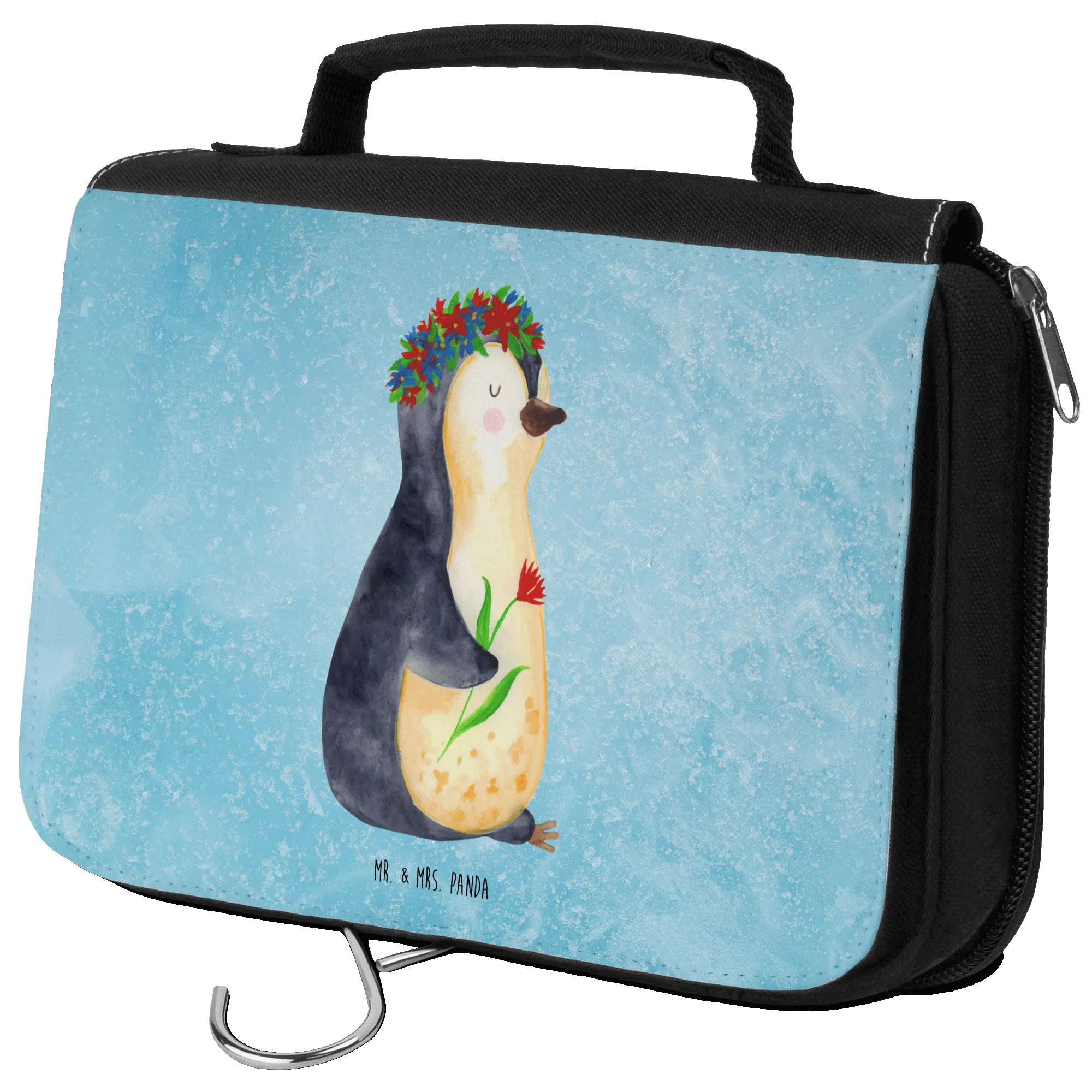 Kulturbeutel Pinguin Blumen - mit Spruch - Eisblau