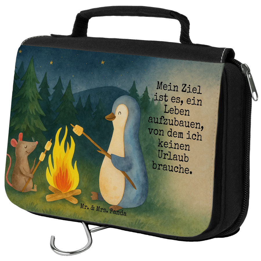 Kulturbeutel Pinguin Lagerfeuer Design - mit Spruch