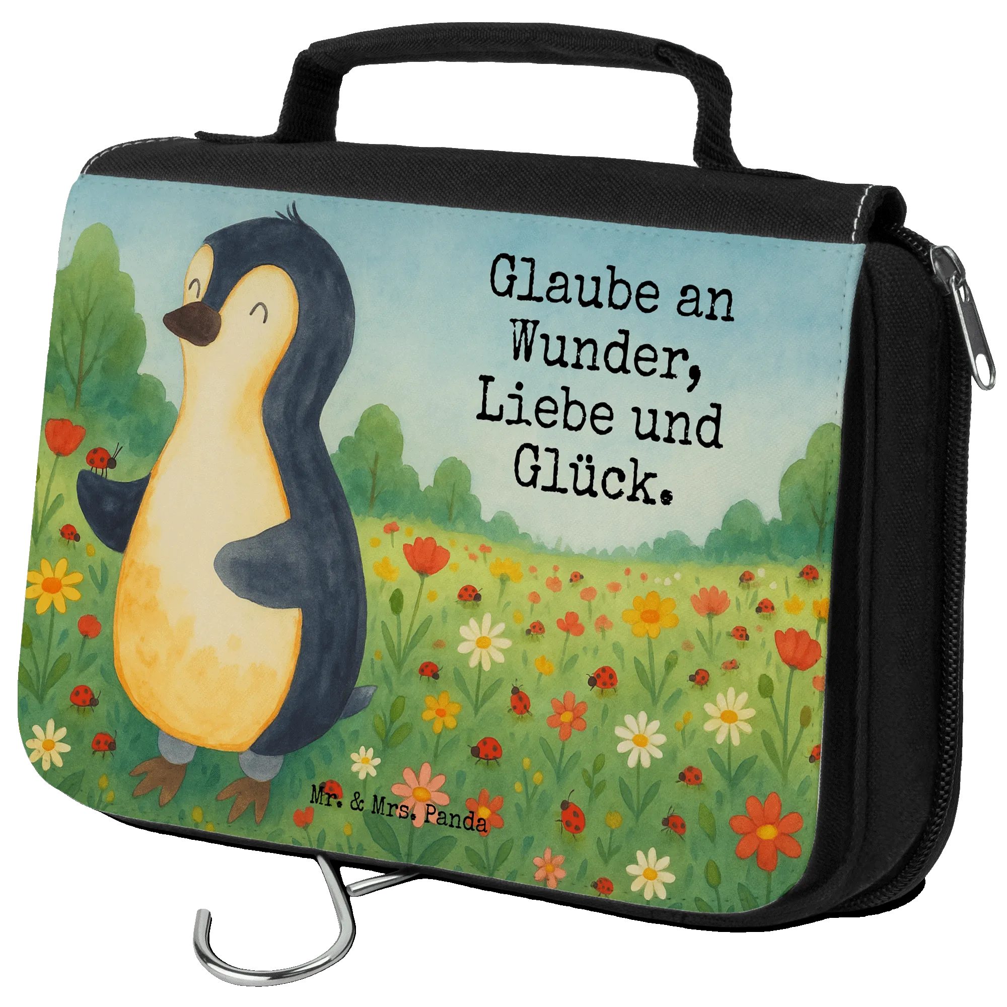Kulturbeutel Pinguin Marienkäfer Design - mit Spruch