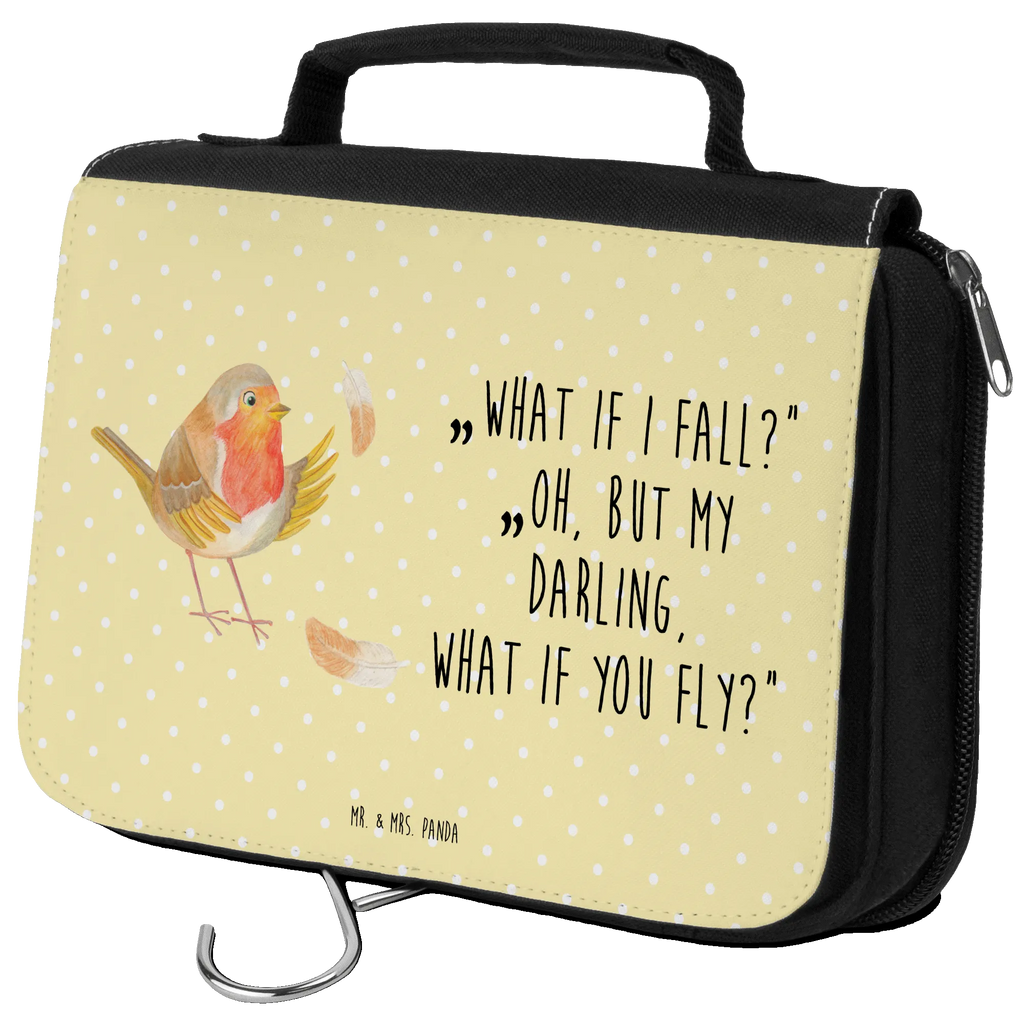 Mit einem strahlenden Design, das ein niedliches Rotkehlchen umgeben von bunten Federn zeigt, wird jeder Aufbruch zu neuen Abenteuern gleich viel fröhlicher. Die Frage „What if I fall? Oh, but my darling, what if you fly?“ inspiriert nicht nur zur Leichtigkeit, sondern bringt auch eine gute Portion Motivation in deinen Alltag. Egal, ob du über den Wochenmarkt schlenderst, Urlaub am Strand machst oder einfach nur im Alltag unterwegs bist – dieser Kulturbeutel ist der ideale Begleiter für deine Kosmetik- und Hygieneprodukte.