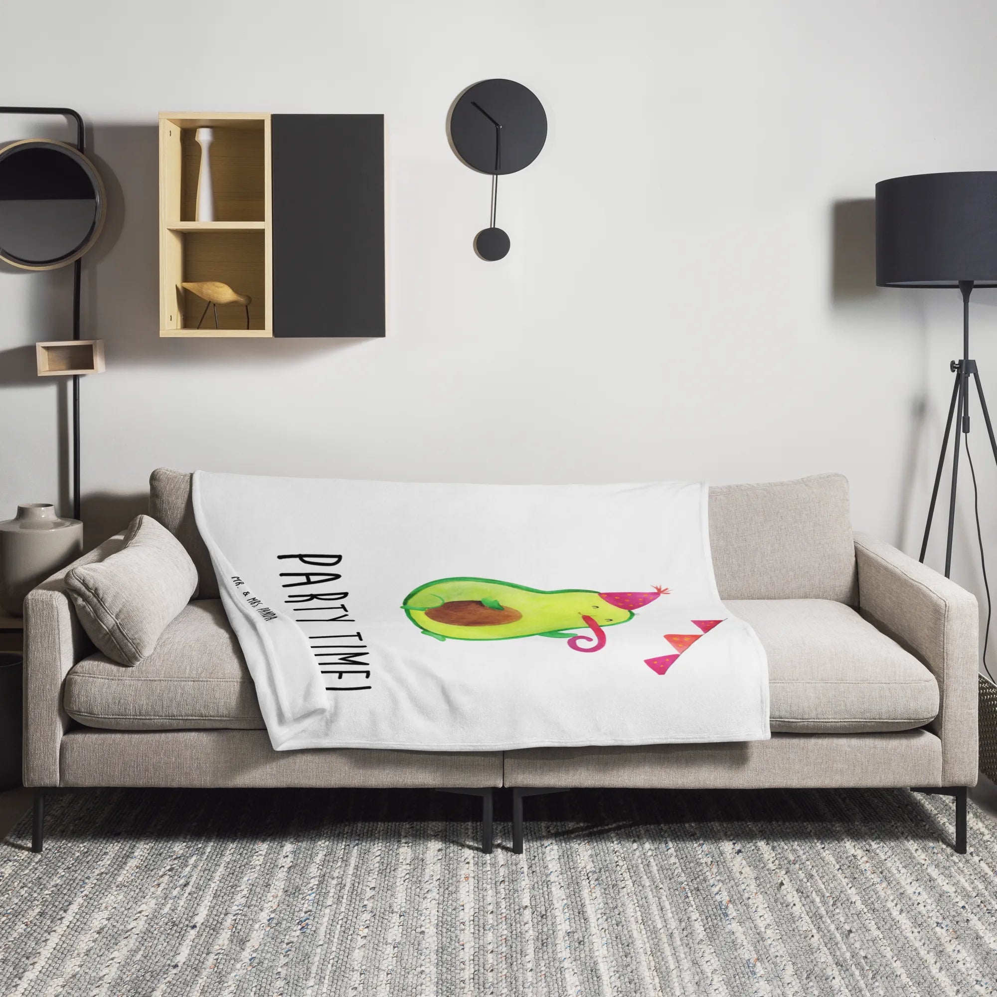 Kuscheldecke Avocado Party Time - mit Spruch - Weiß