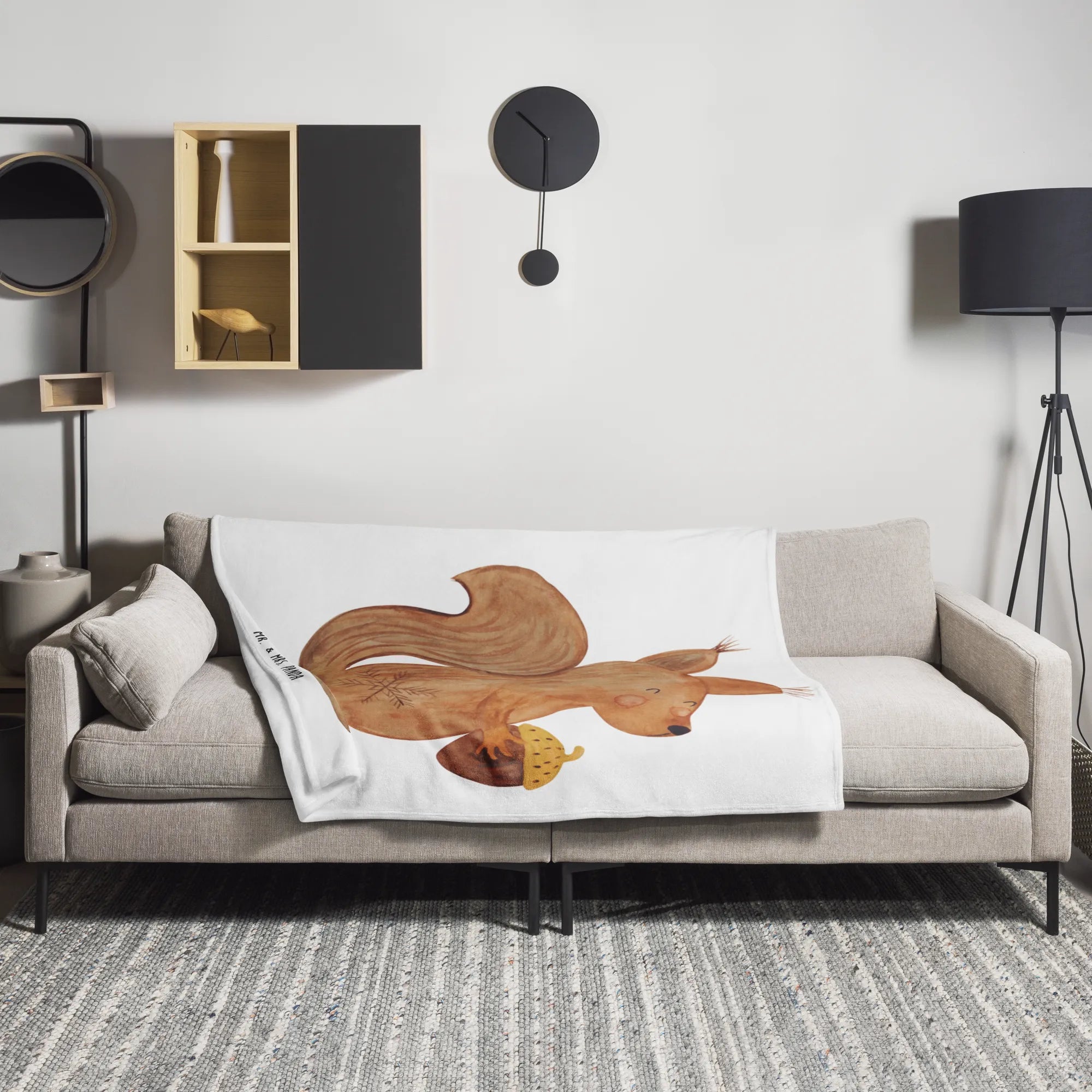 Kuscheldecke Eichhörnchen Weihnachten - mit Spruch - Weiß