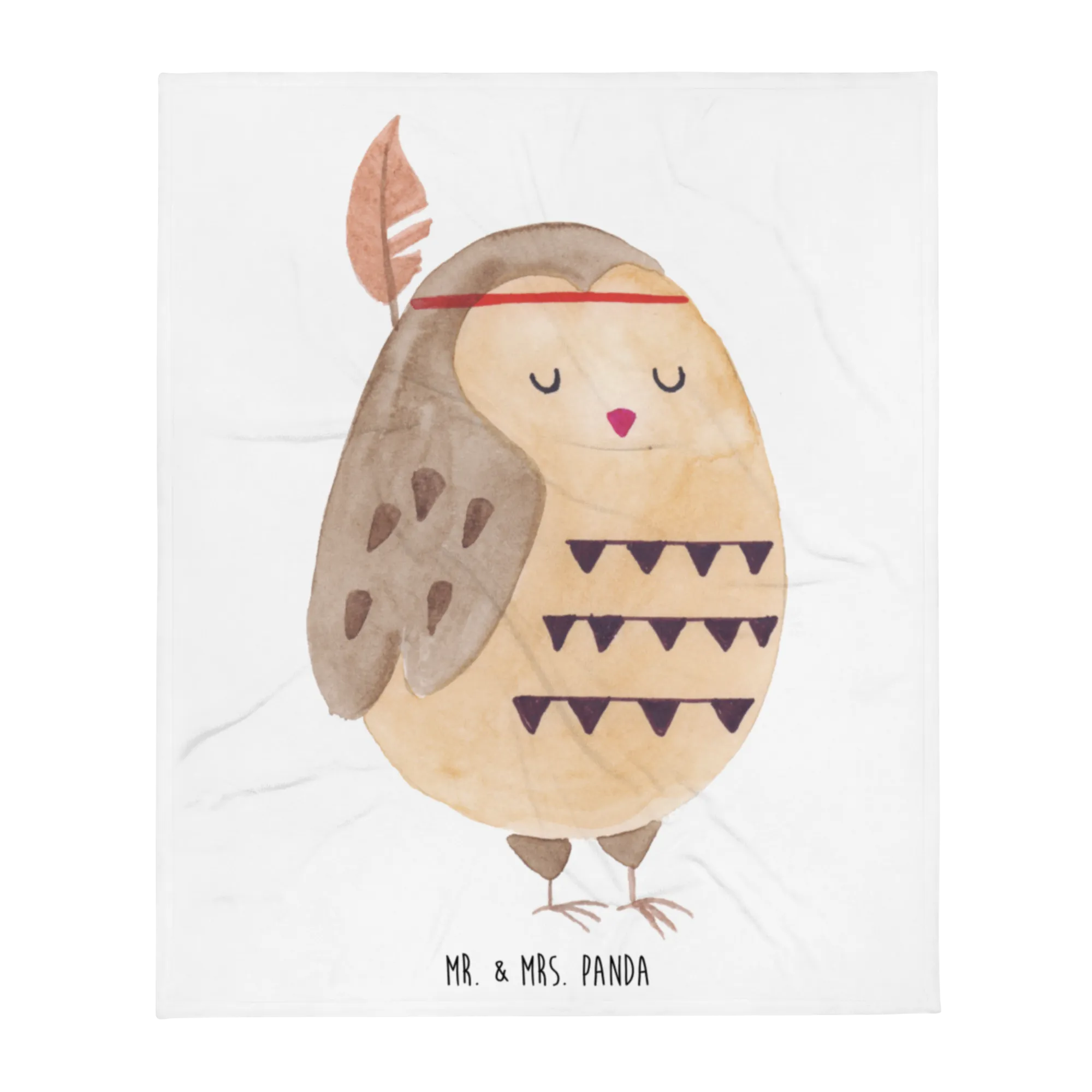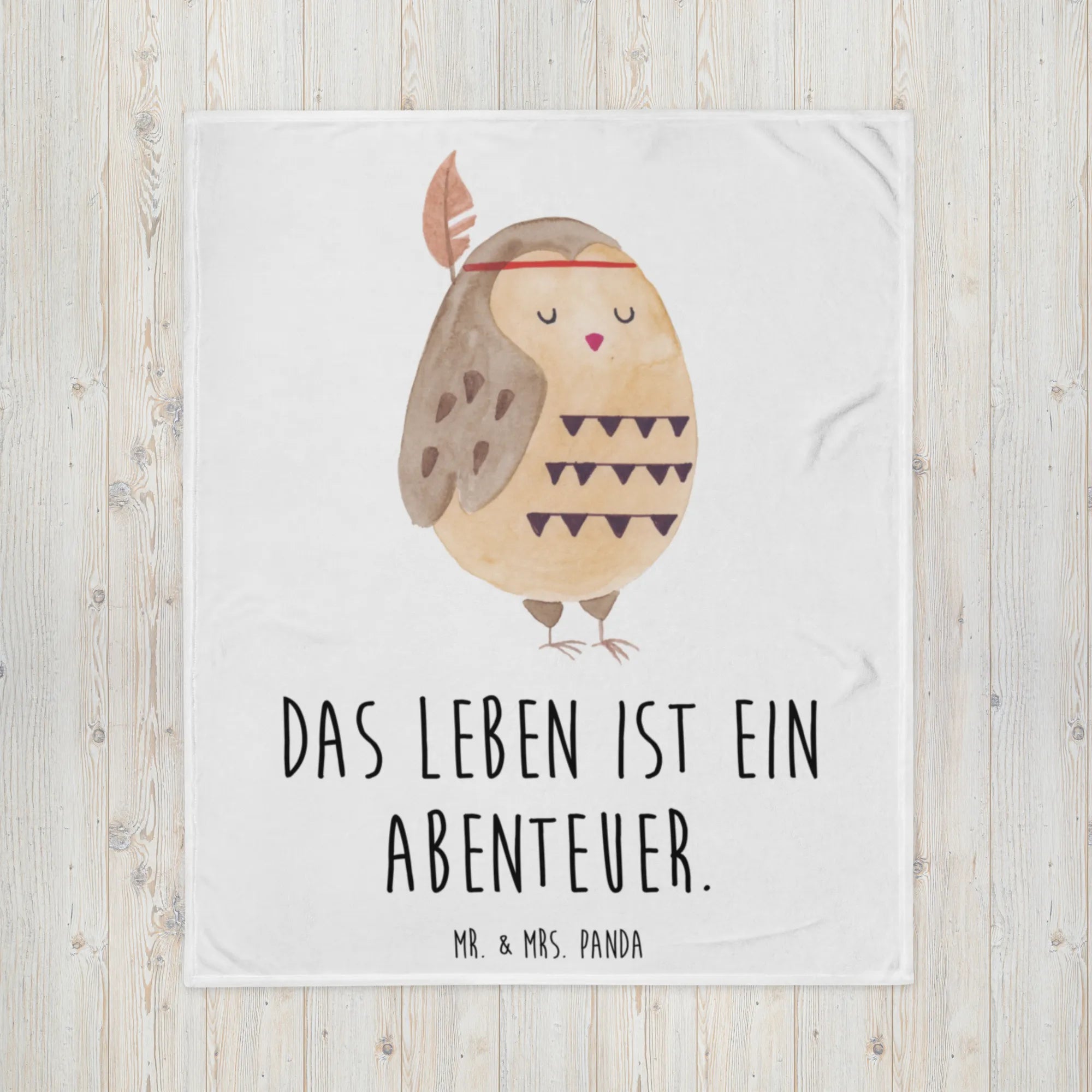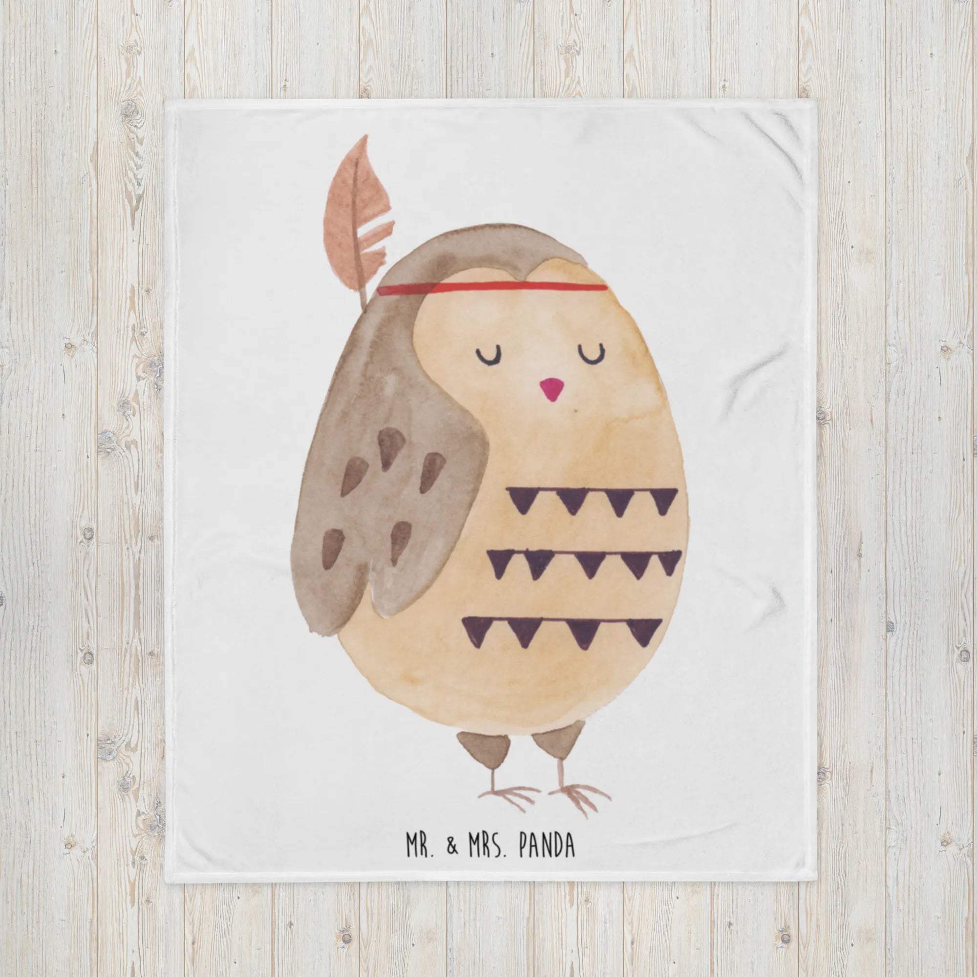 Kuscheldecke Eule Federschmuck - mit Spruch - Weiß