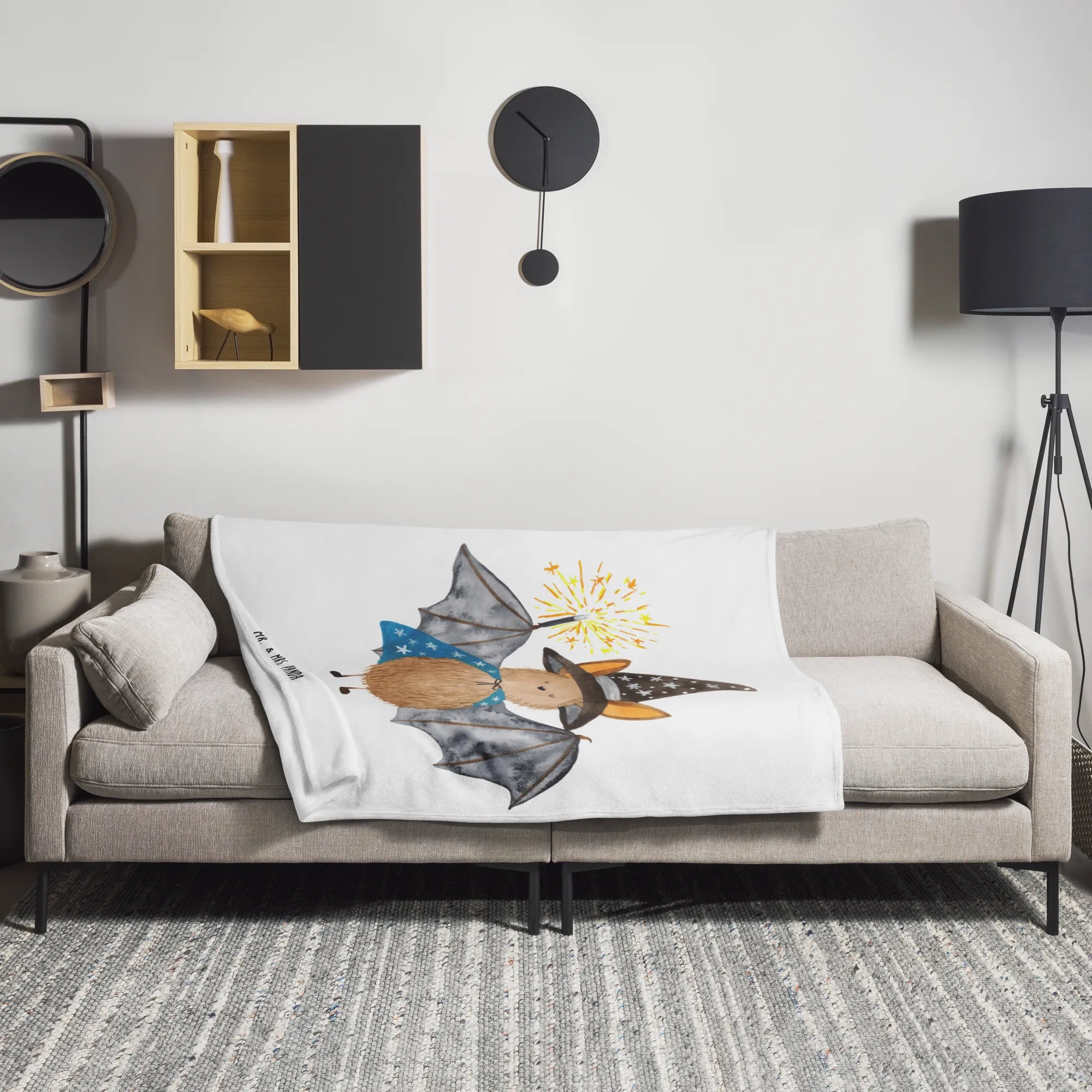 Kuscheldecke Fledermaus Zauberer - mit Spruch - Weiß