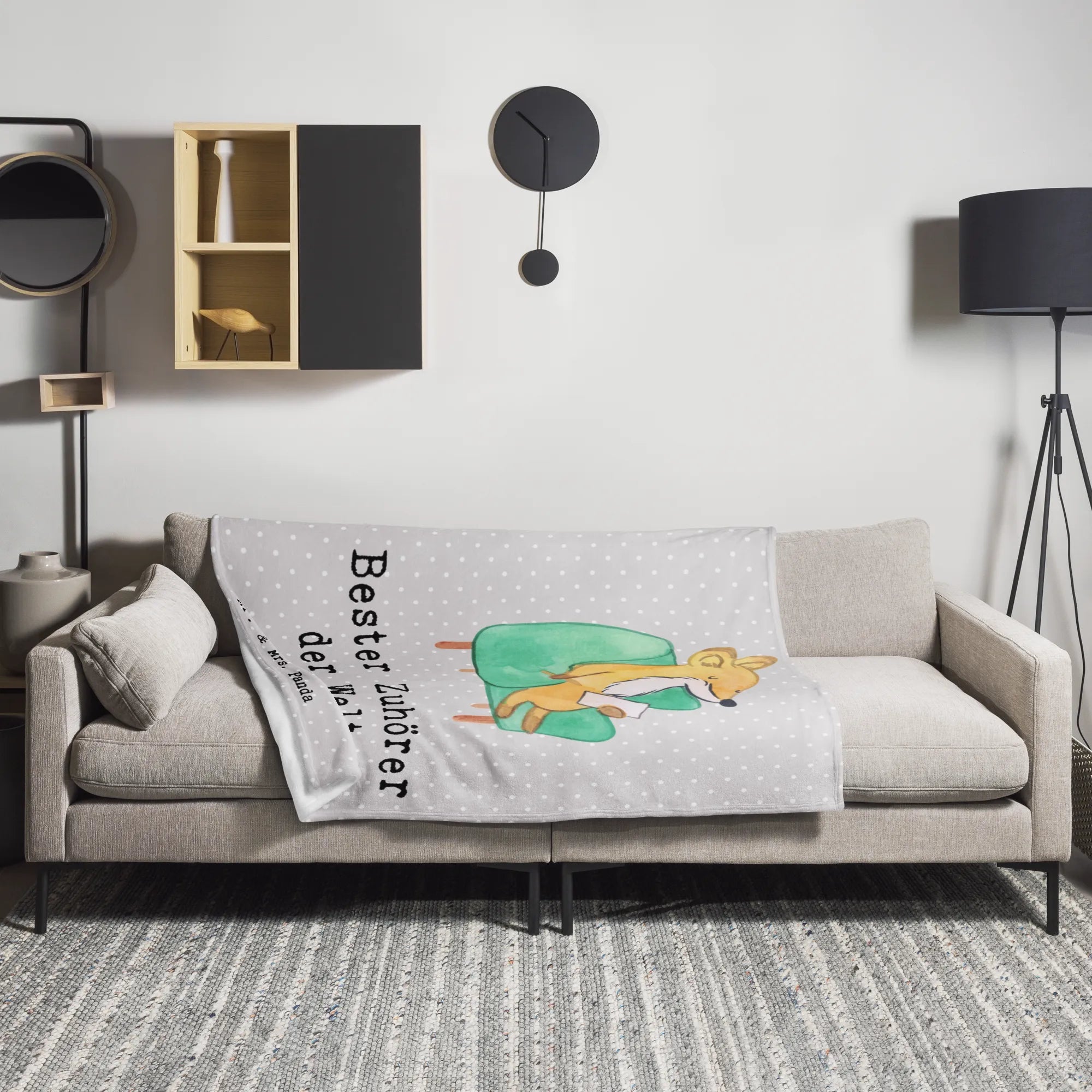 Kuscheldecke Fuchs Bester Zuhörer der Welt - Grau Pastell