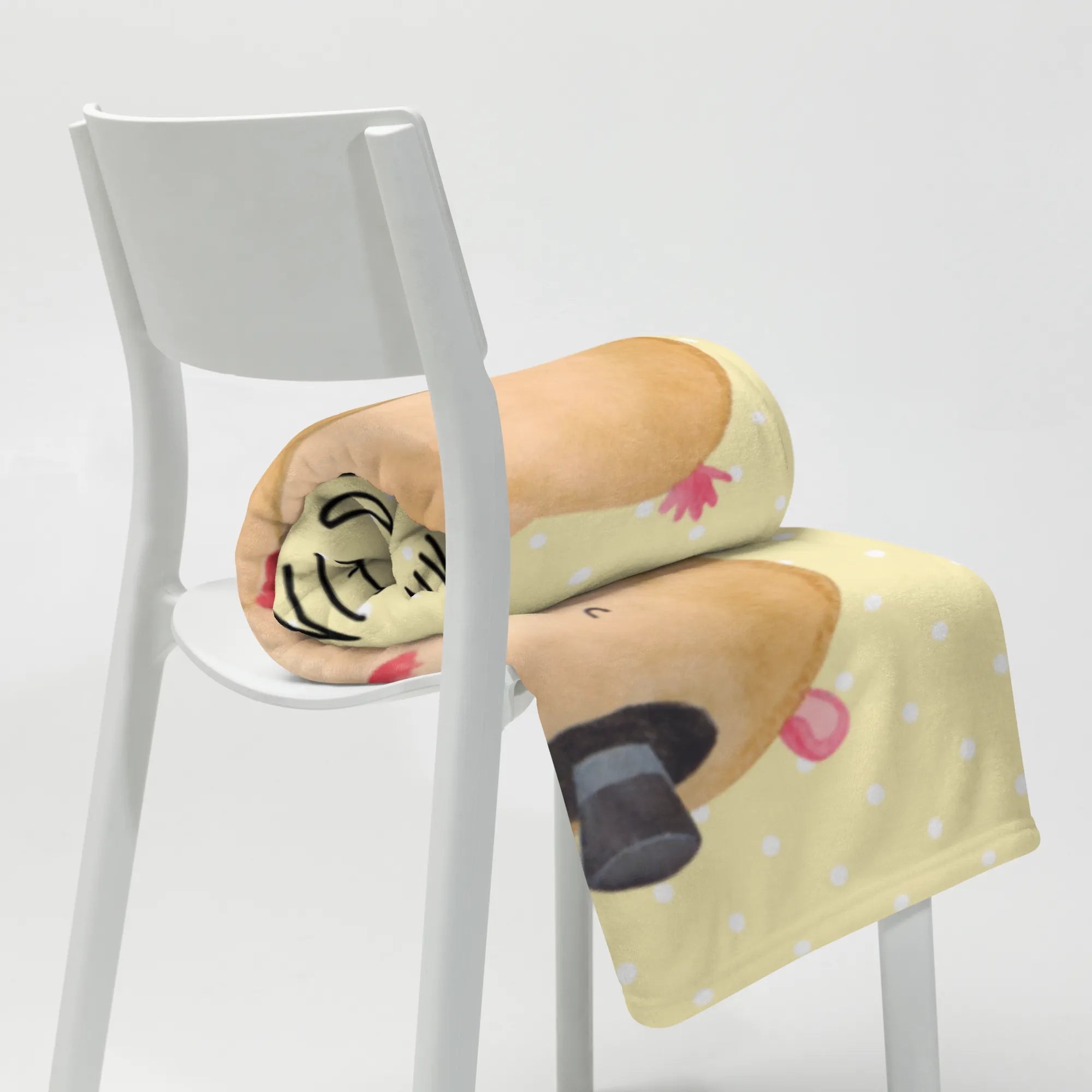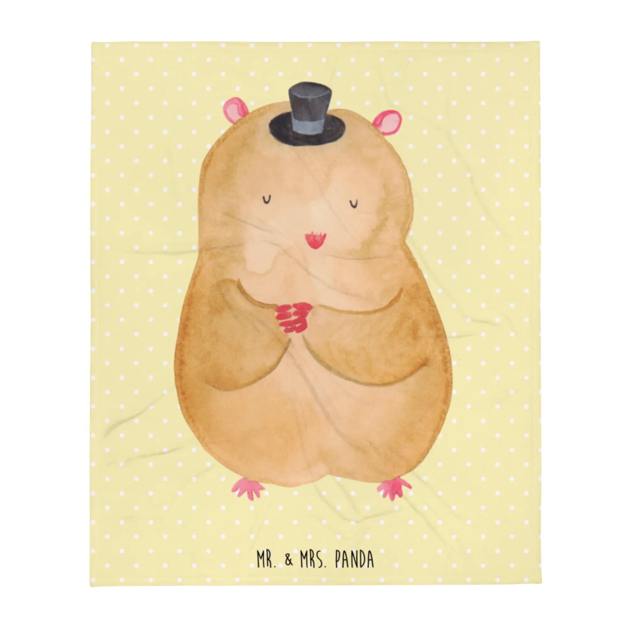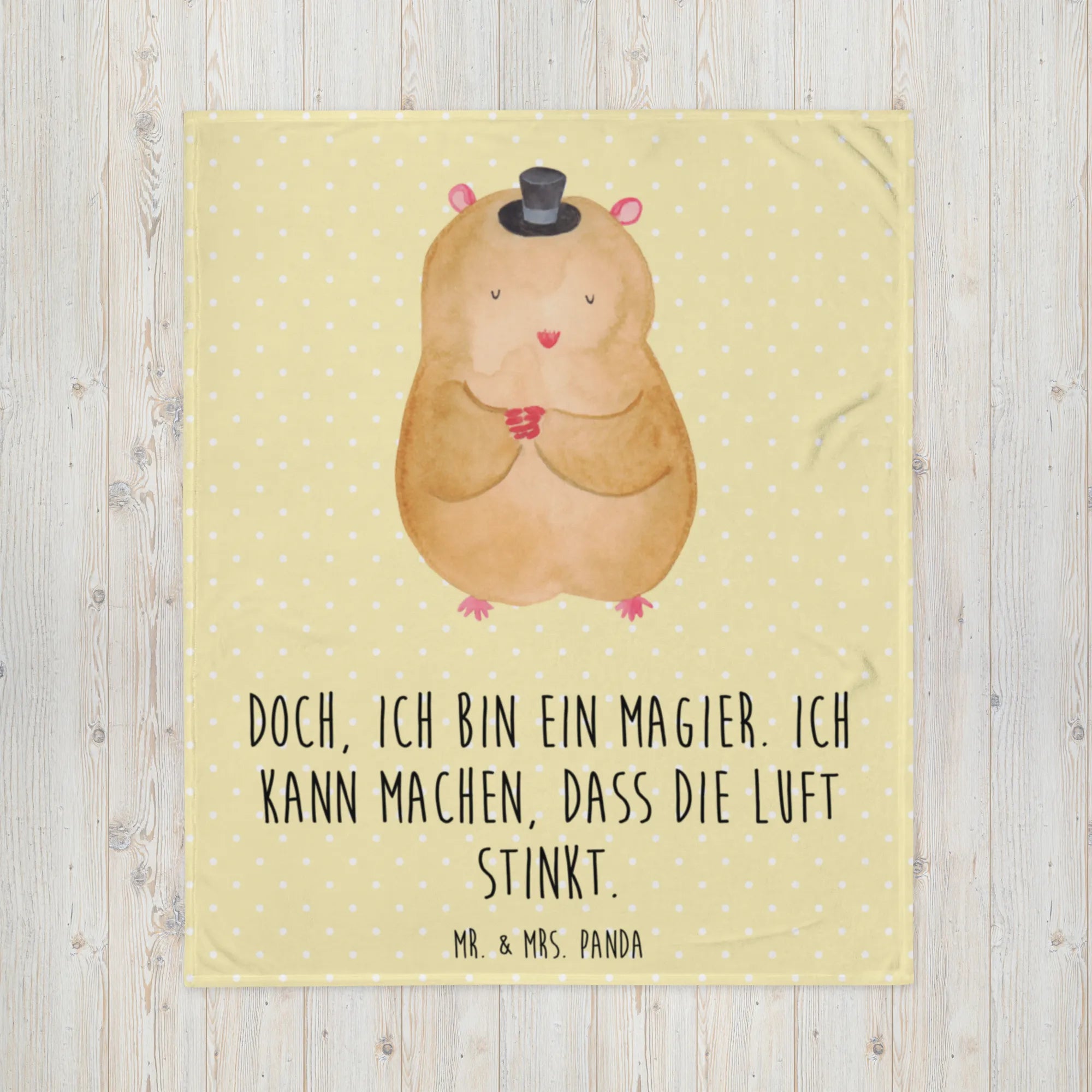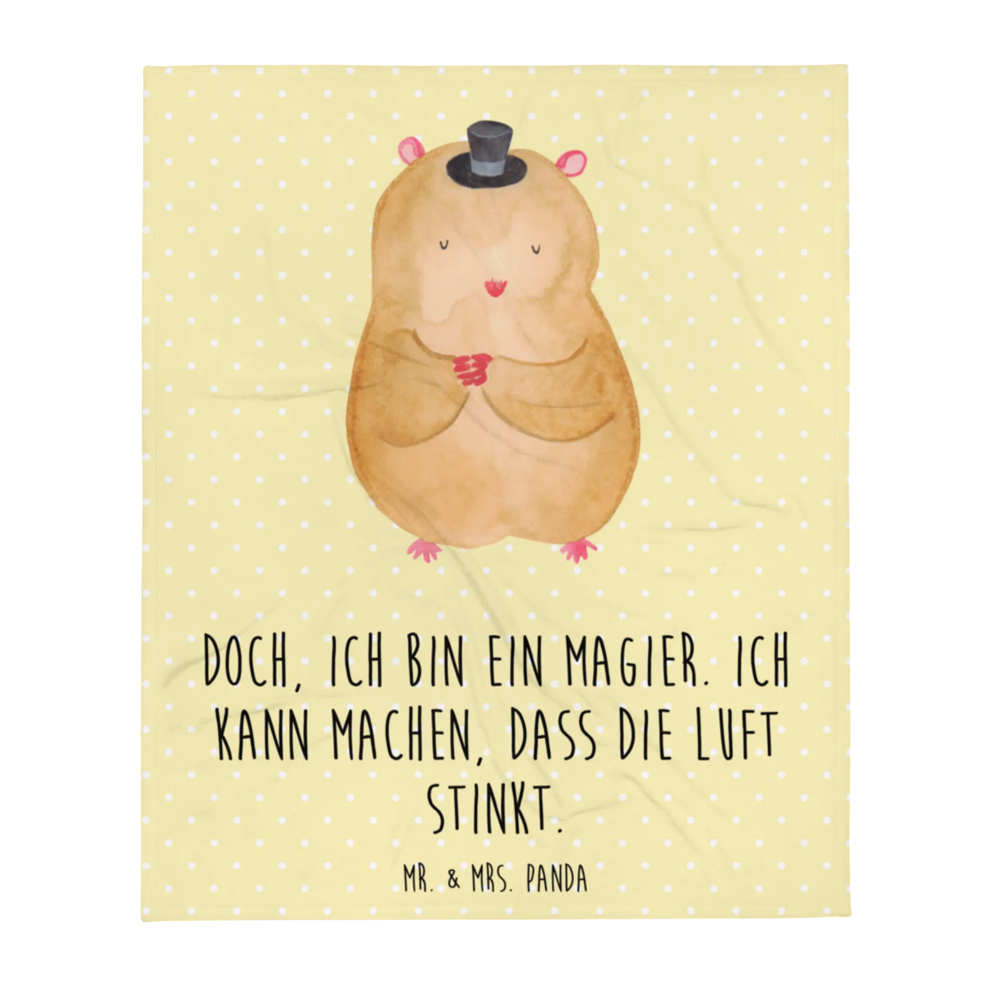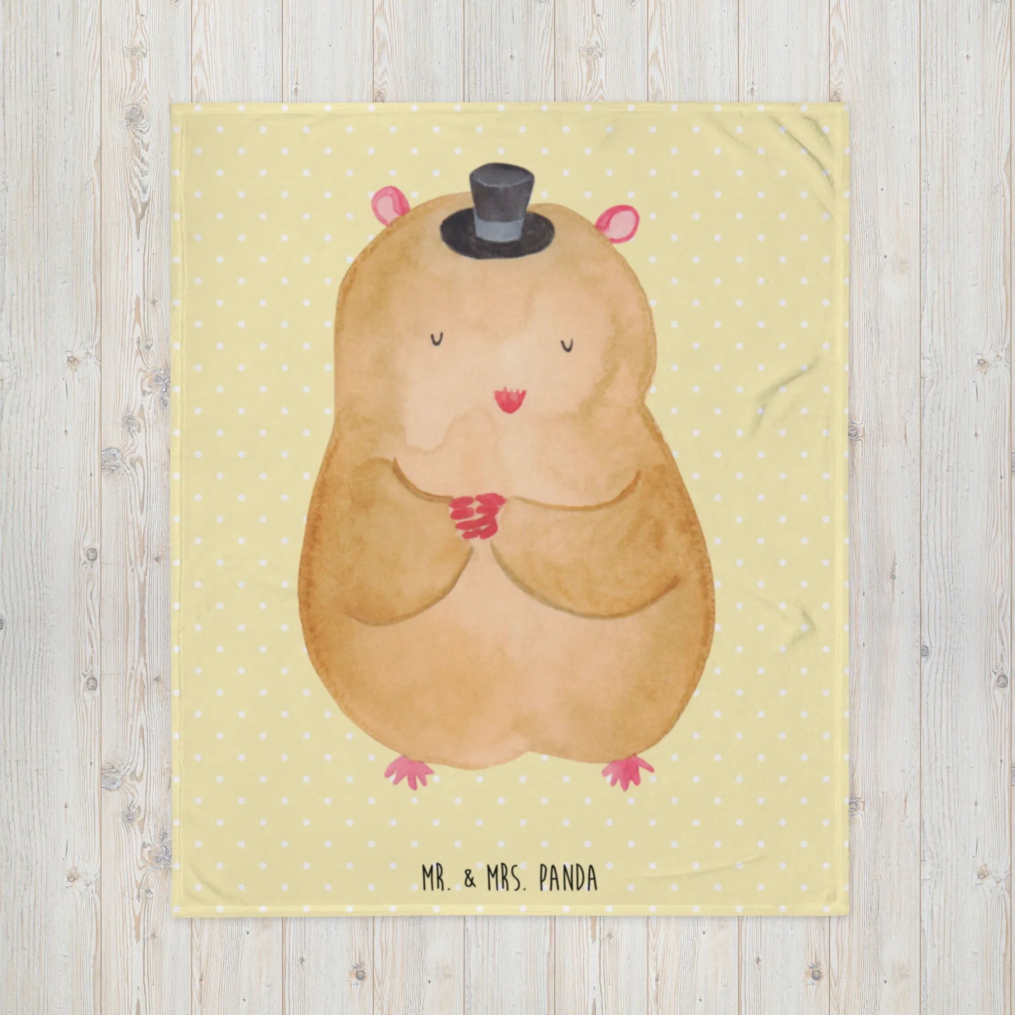 Kuscheldecke Hamster mit Hut - mit Spruch - Gelb Pastell