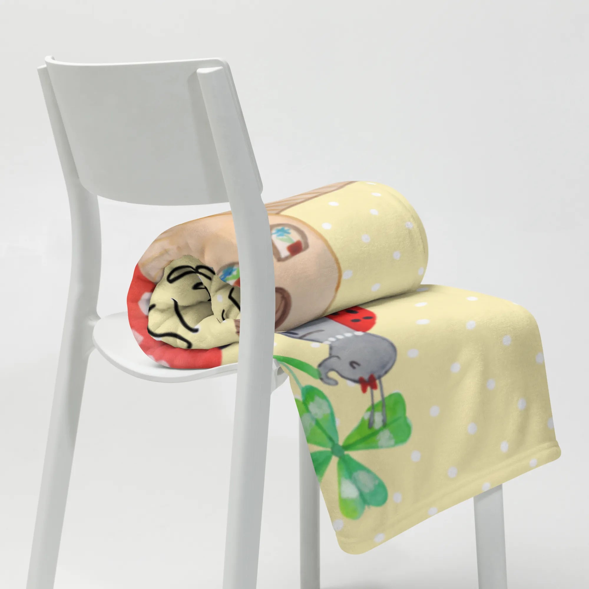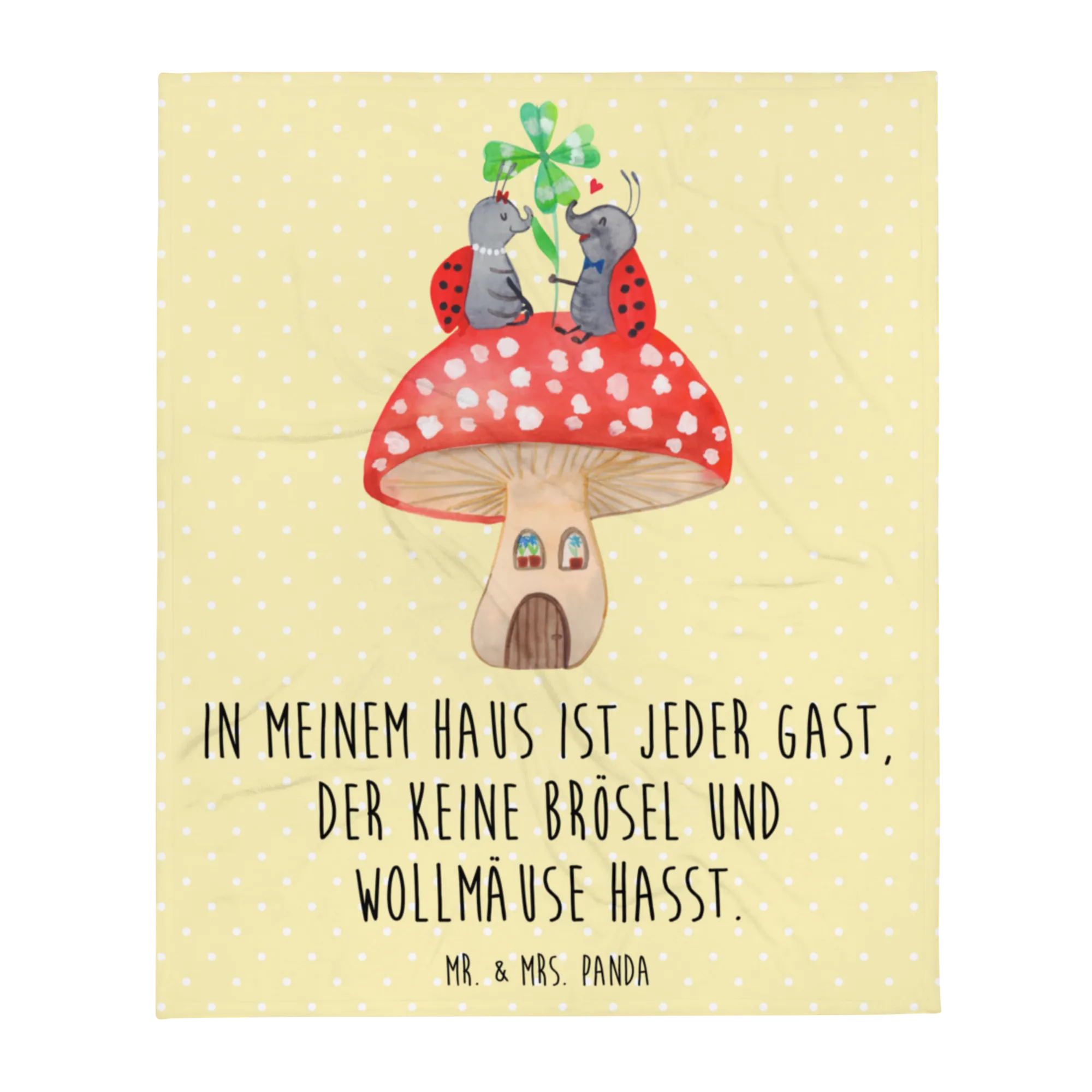 Kuscheldecke Marienkäfer Fliegenpilz - mit Spruch - Gelb Pastell