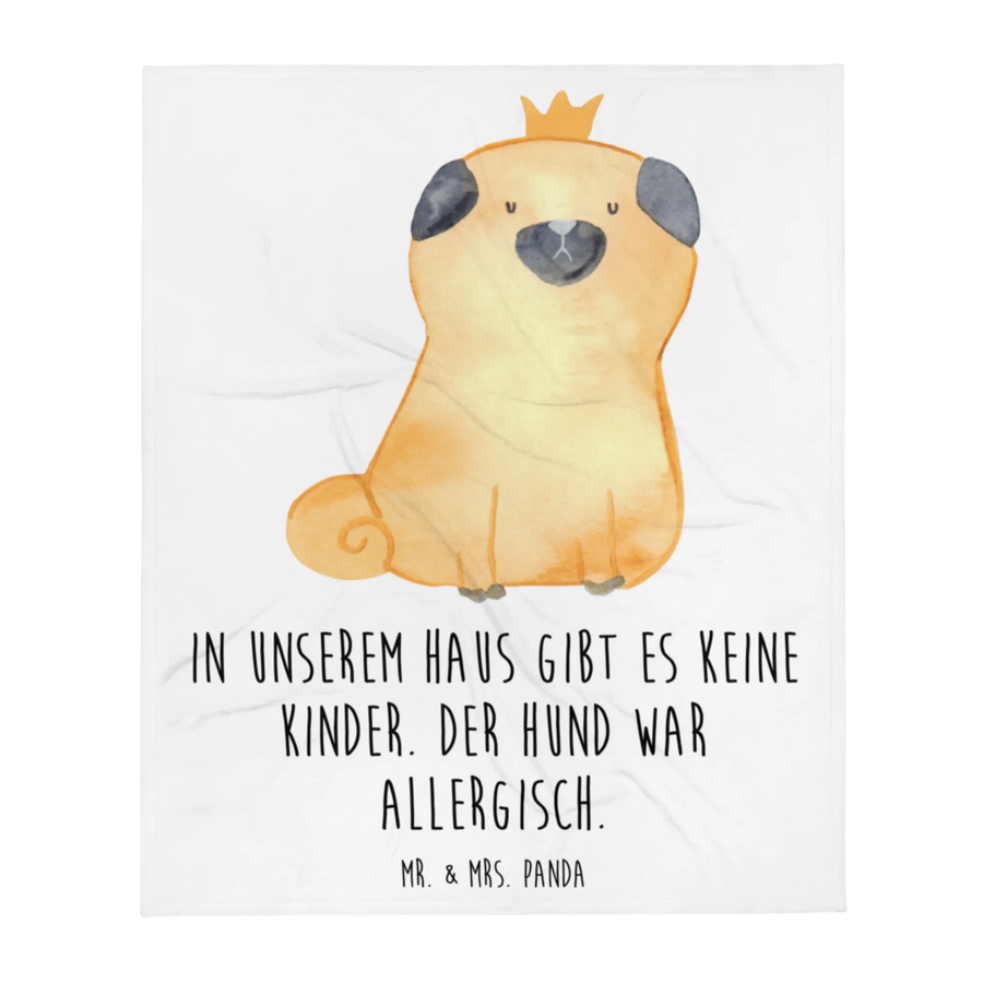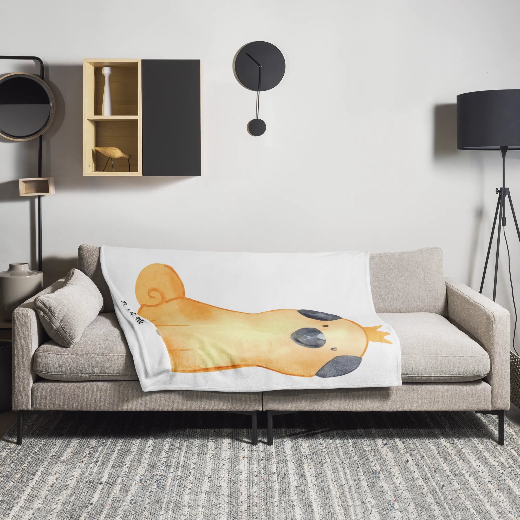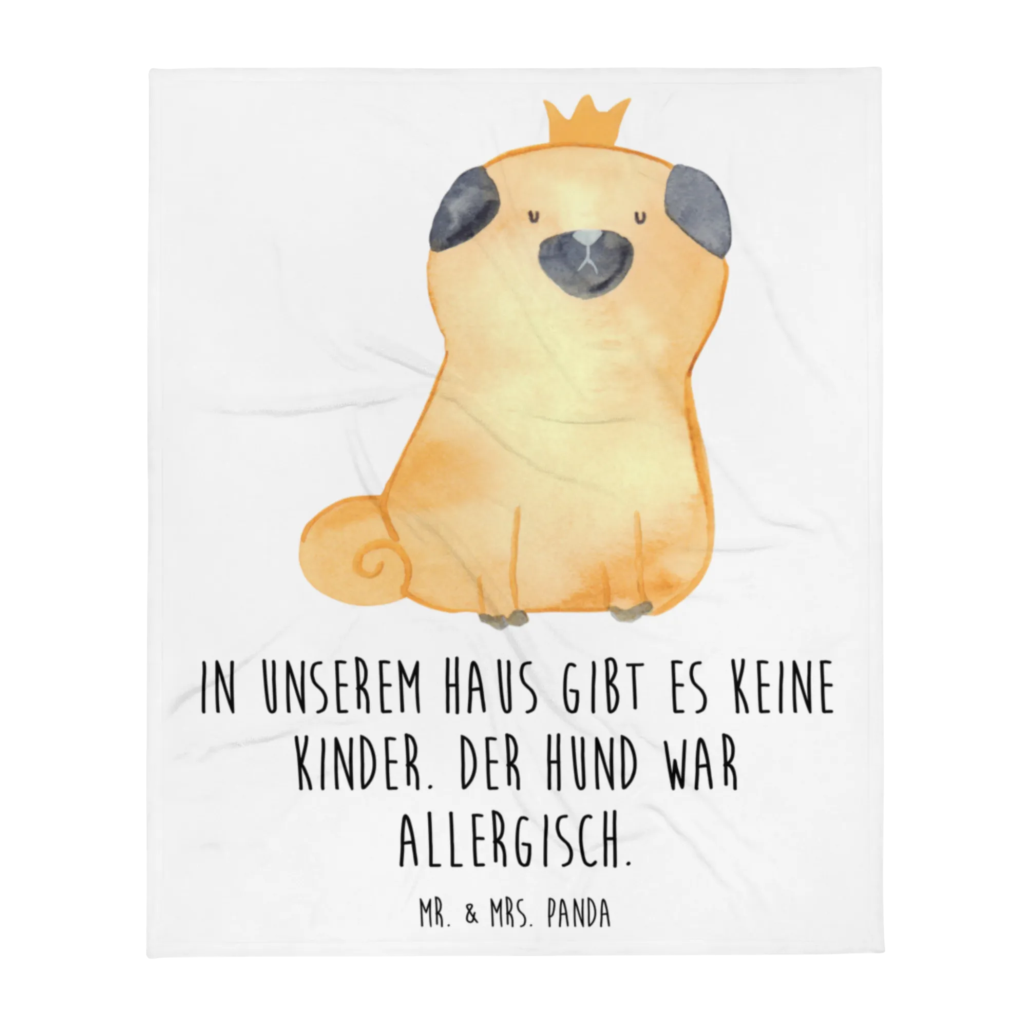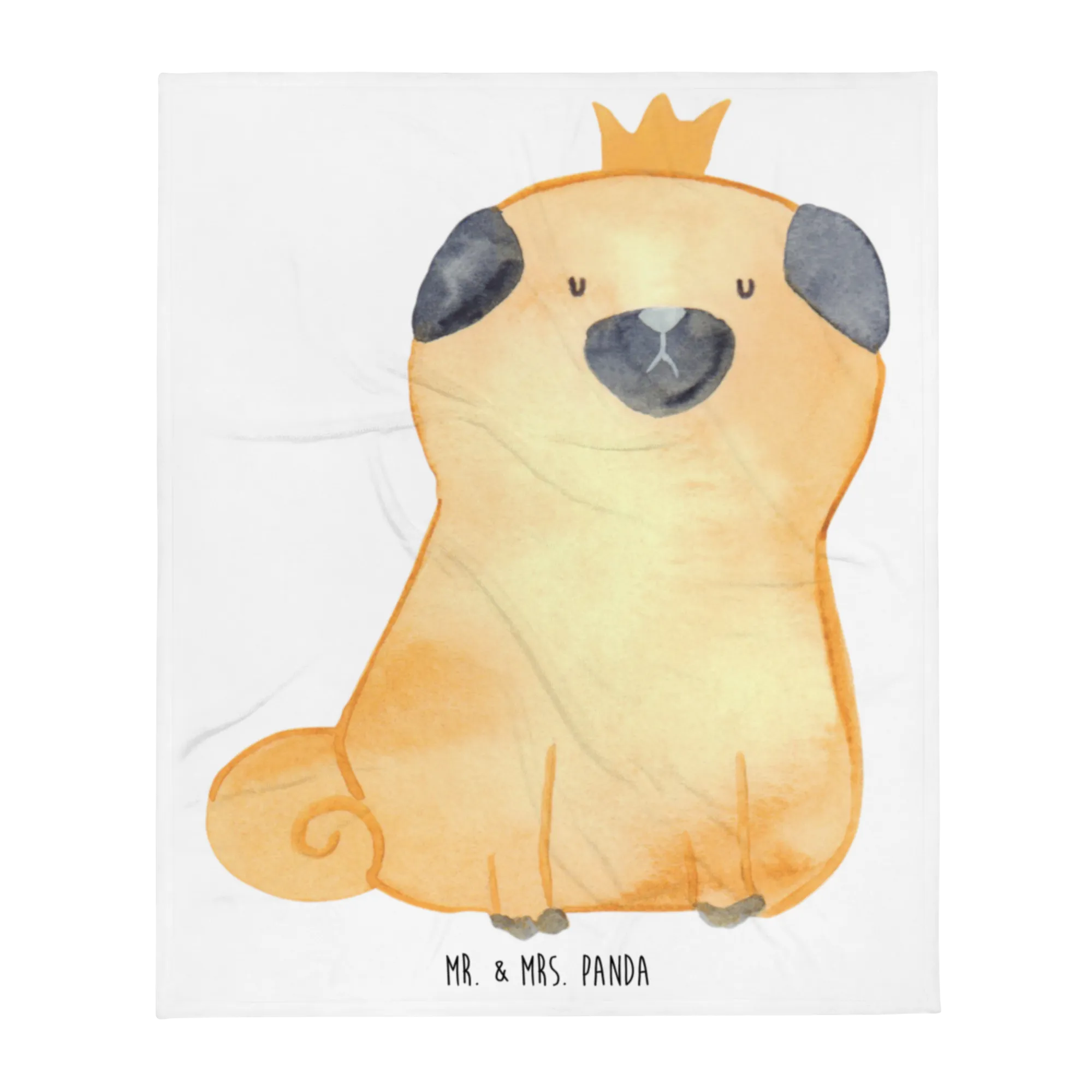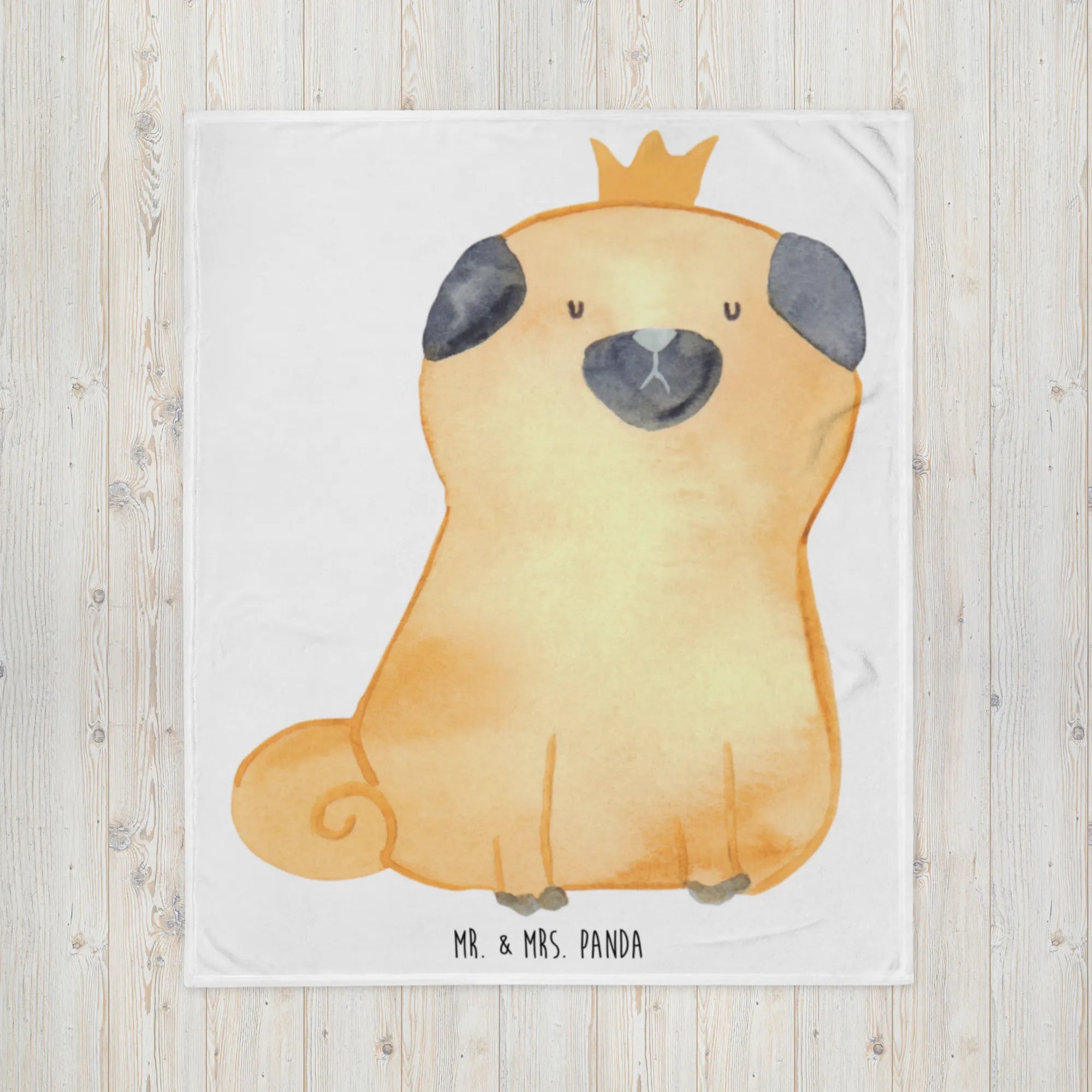 Kuscheldecke Mops Krone - mit Spruch - Weiß