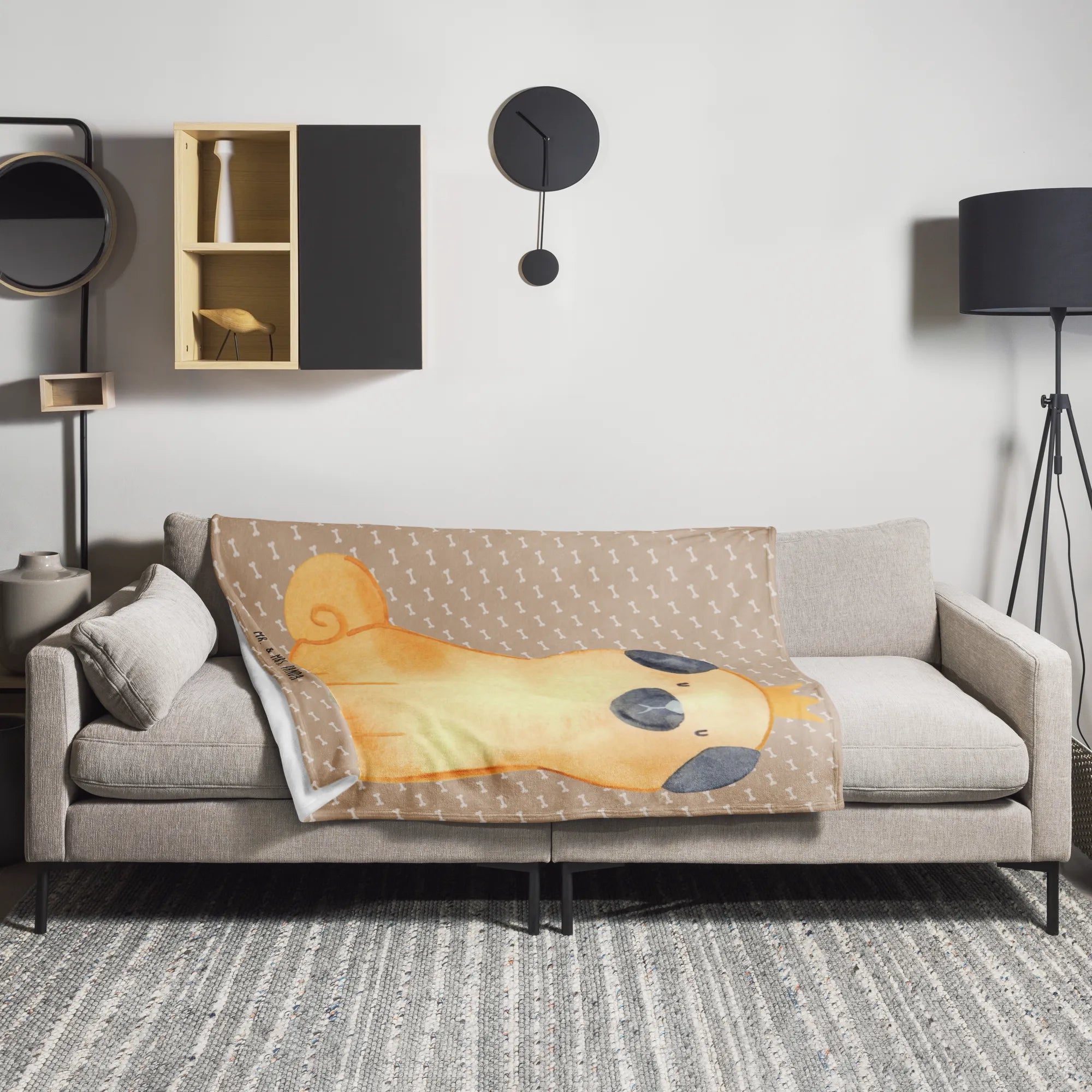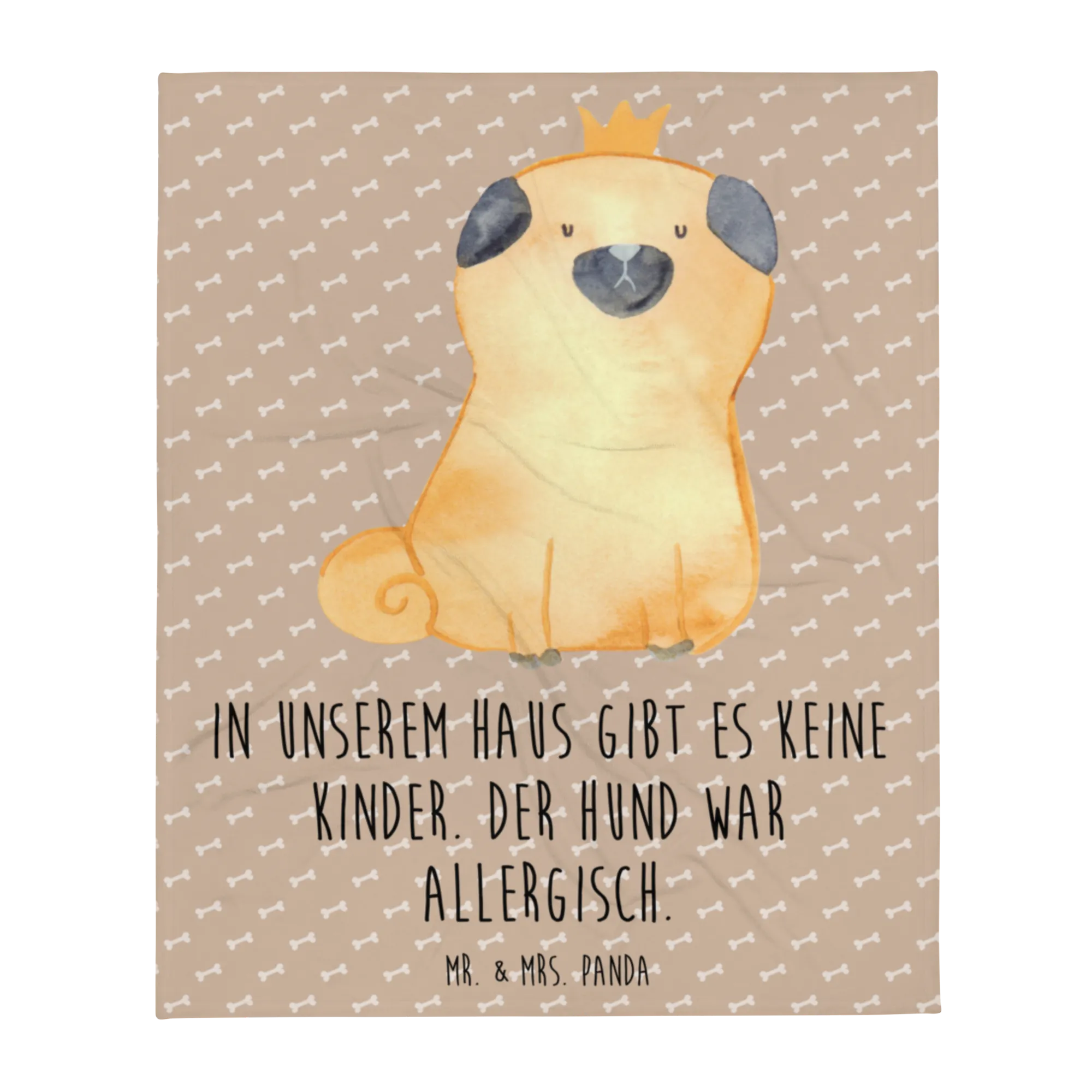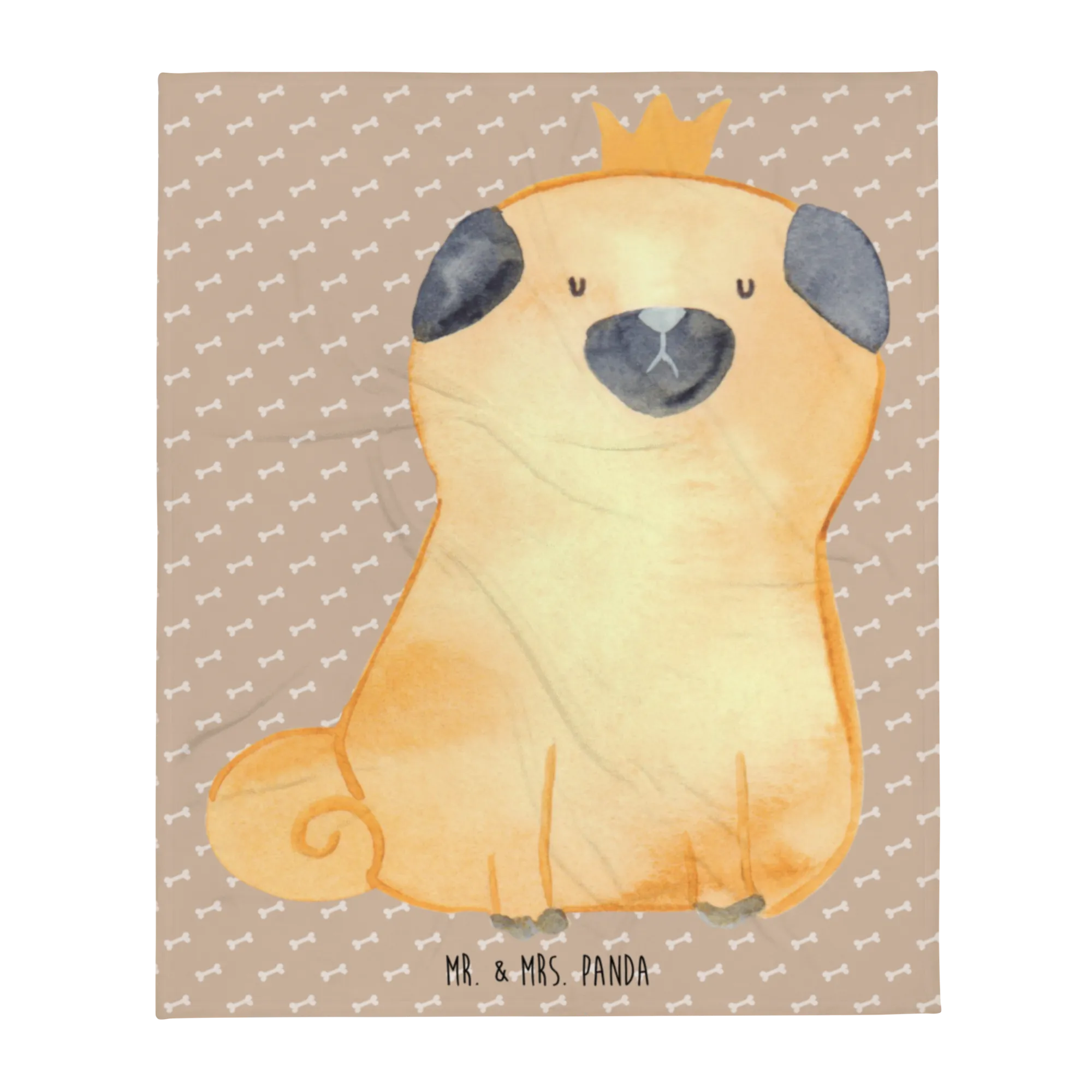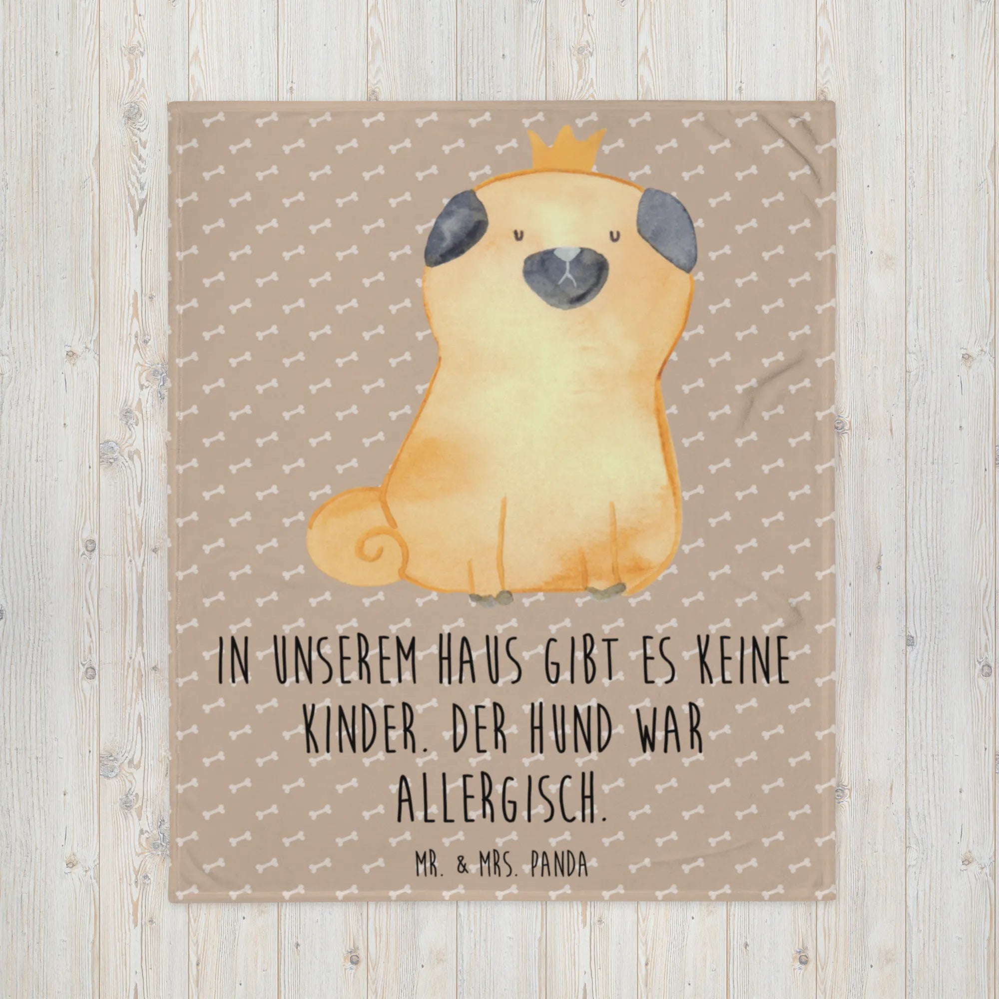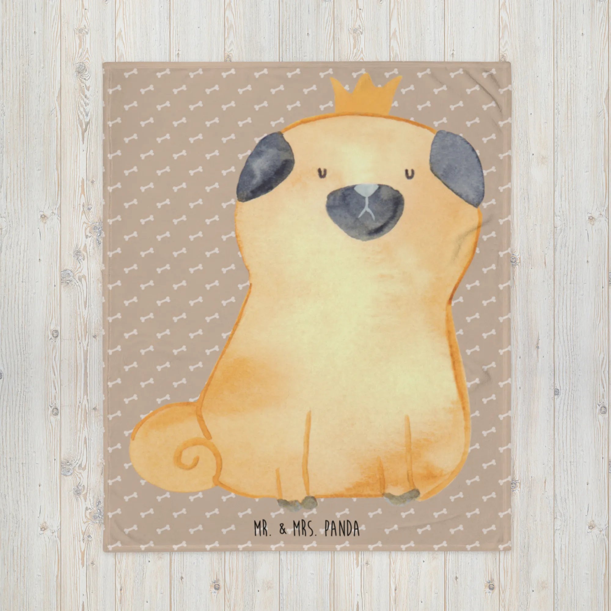 Kuscheldecke Mops Krone - mit Spruch - Weiß