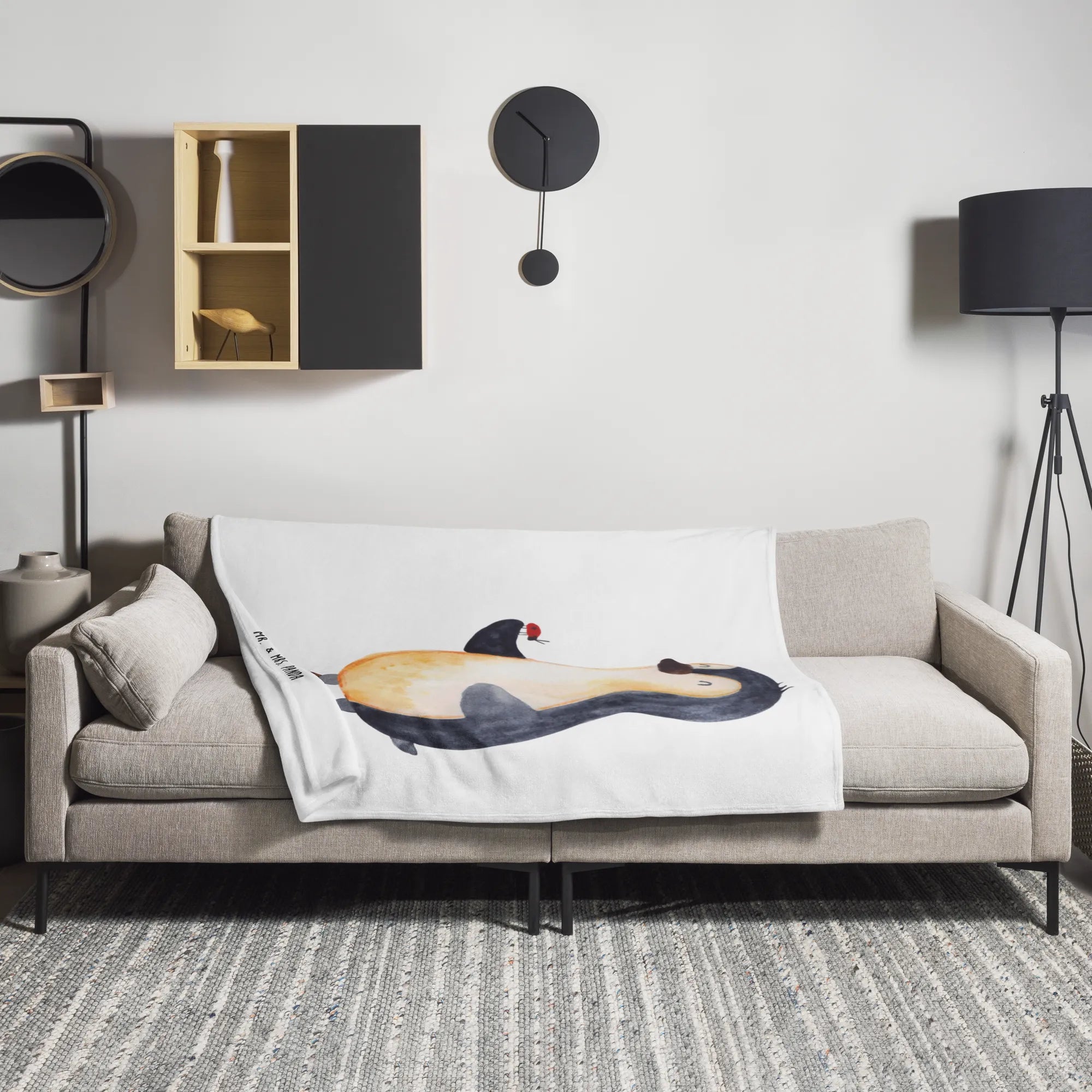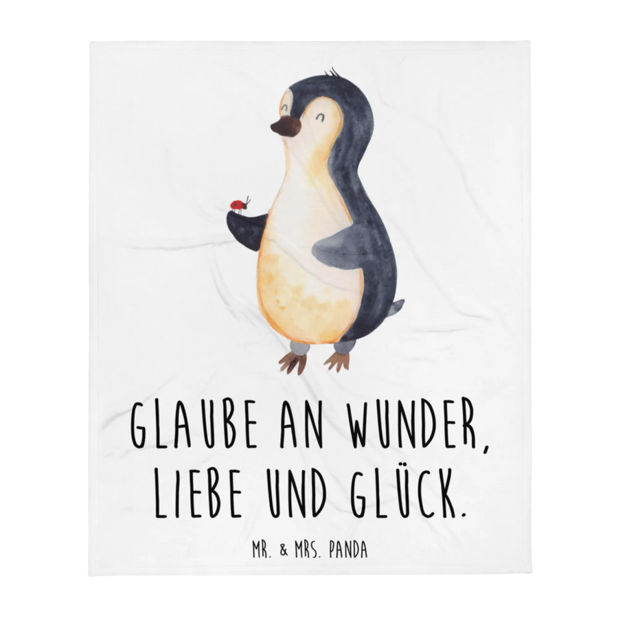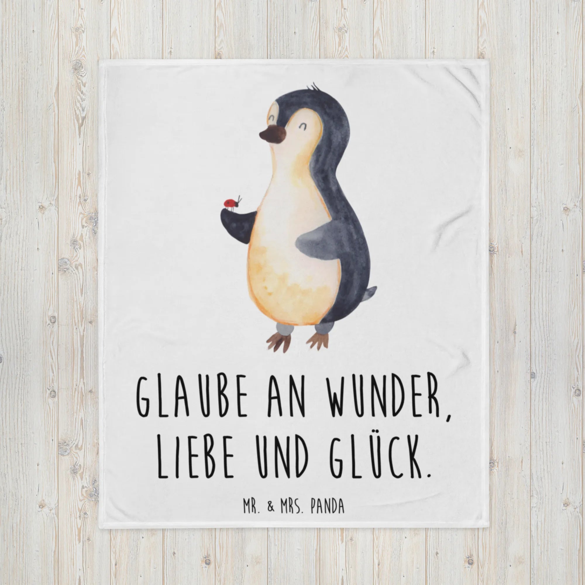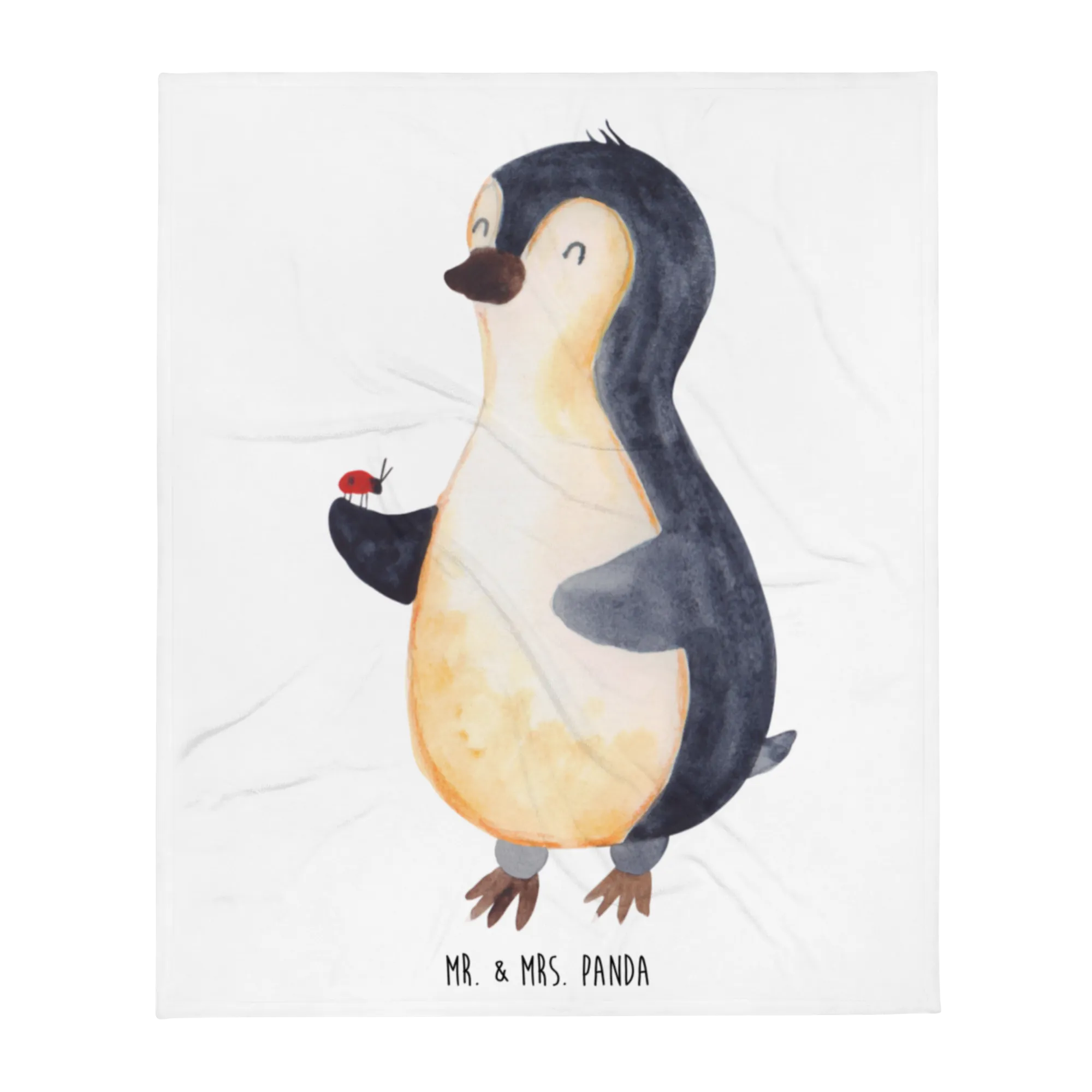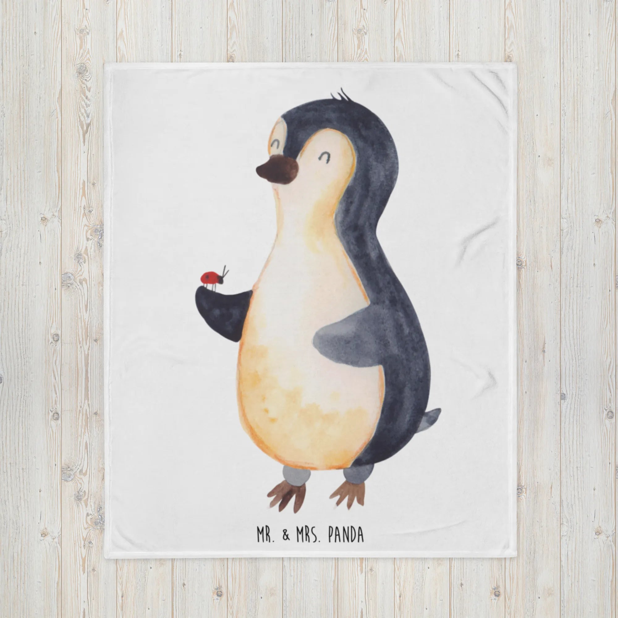 Kuscheldecke Pinguin Marienkäfer - mit Spruch - Weiß