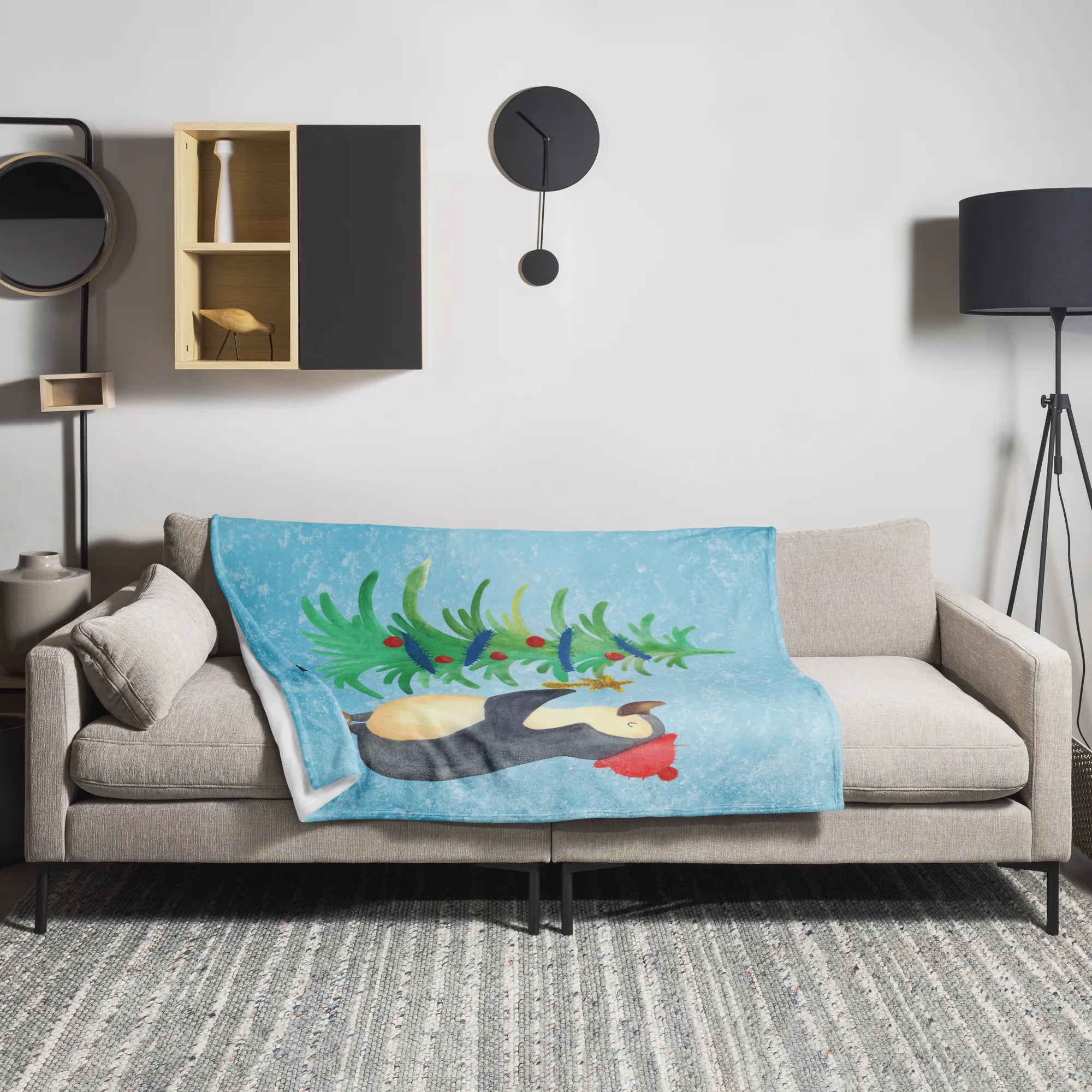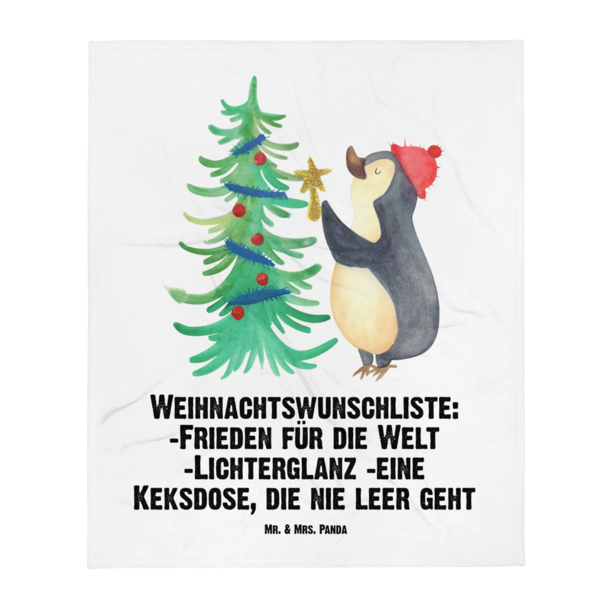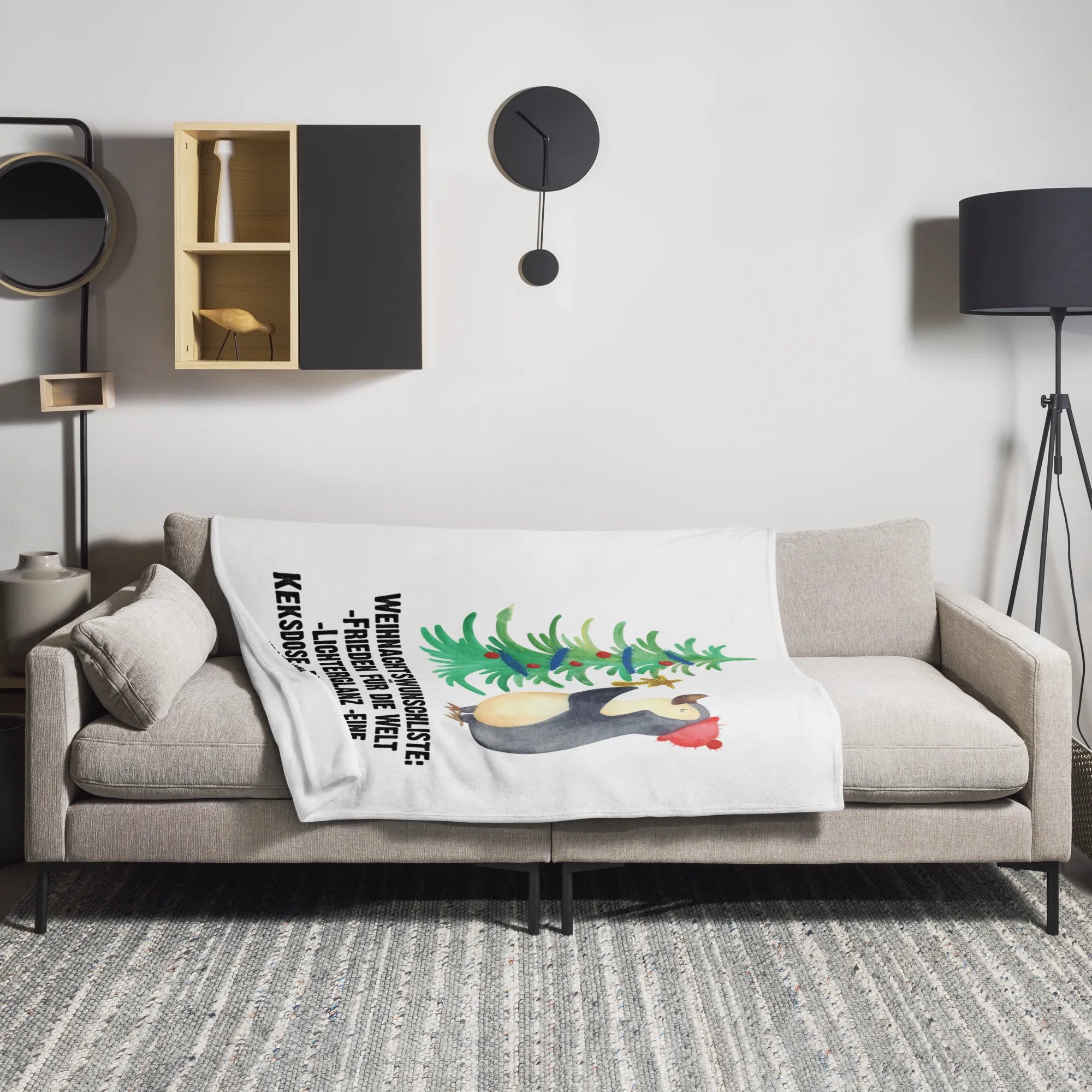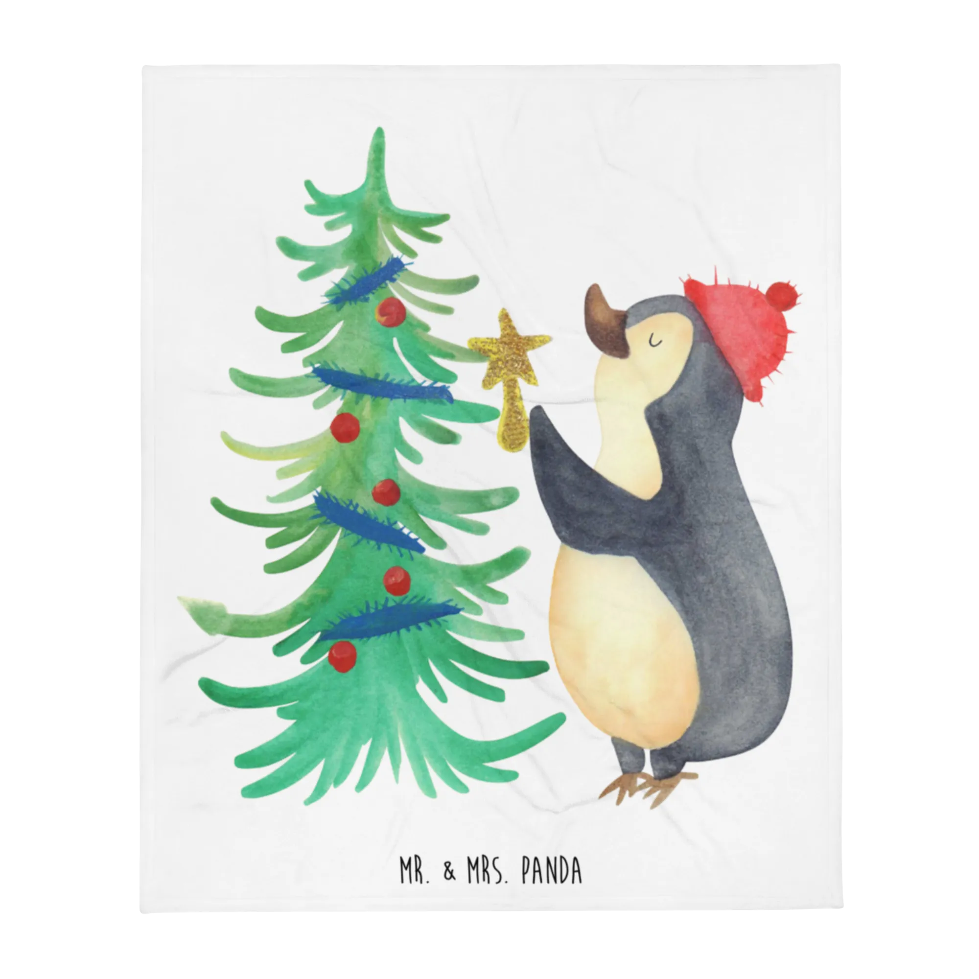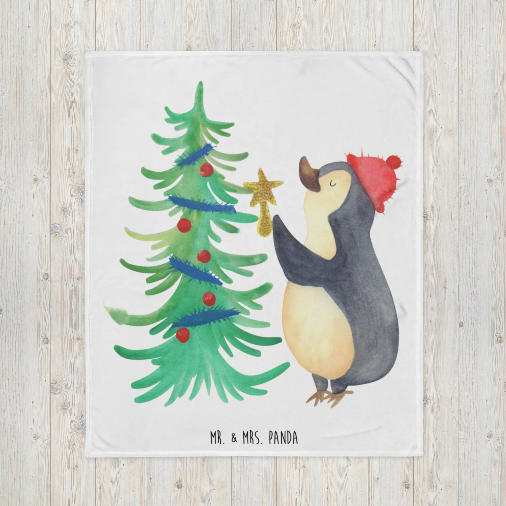 Kuscheldecke Pinguin Weihnachtsbaum - mit Spruch - Weiß