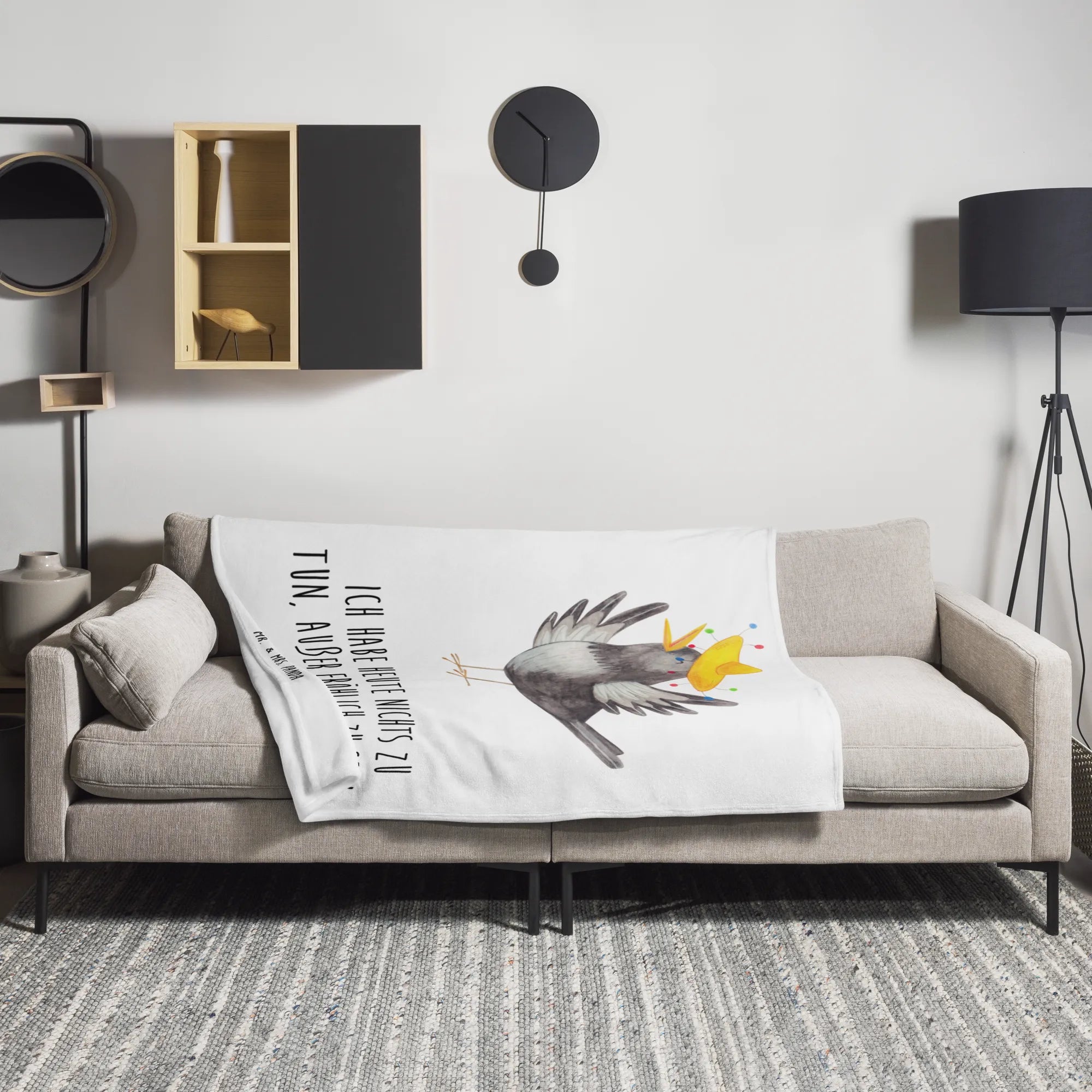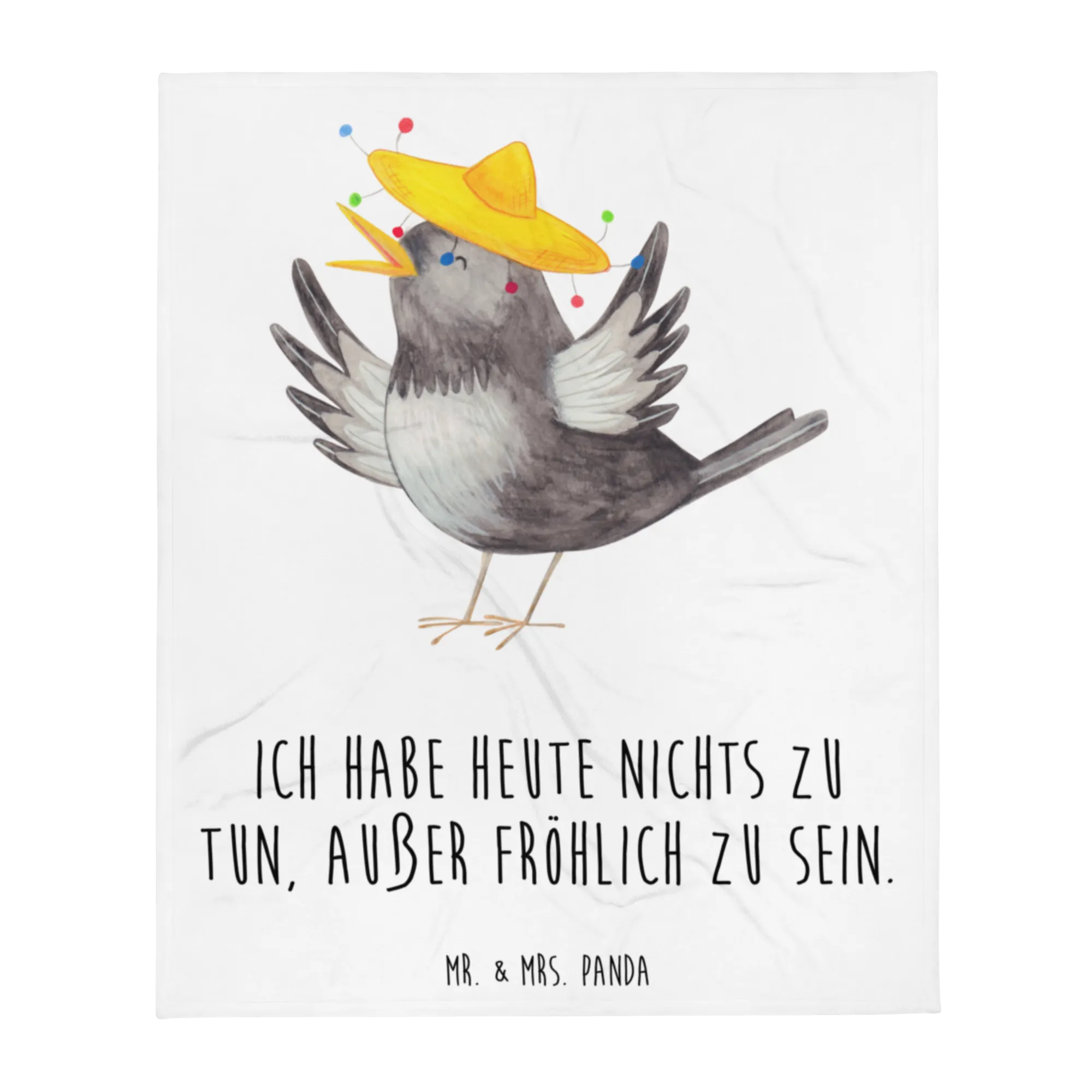 Kuscheldecke Rabe Sombrero Wohndecke, Sofadecke, Decke, Wolldecke, Tagesdecke, Tiermotive, Gute Laune, lustige Sprüche, Tiere, Glück Spruch, Rabe, Vogel, Elster, Motivation, fröhlich sein, Spruch positiv, Vögel, froh, glücklich sein