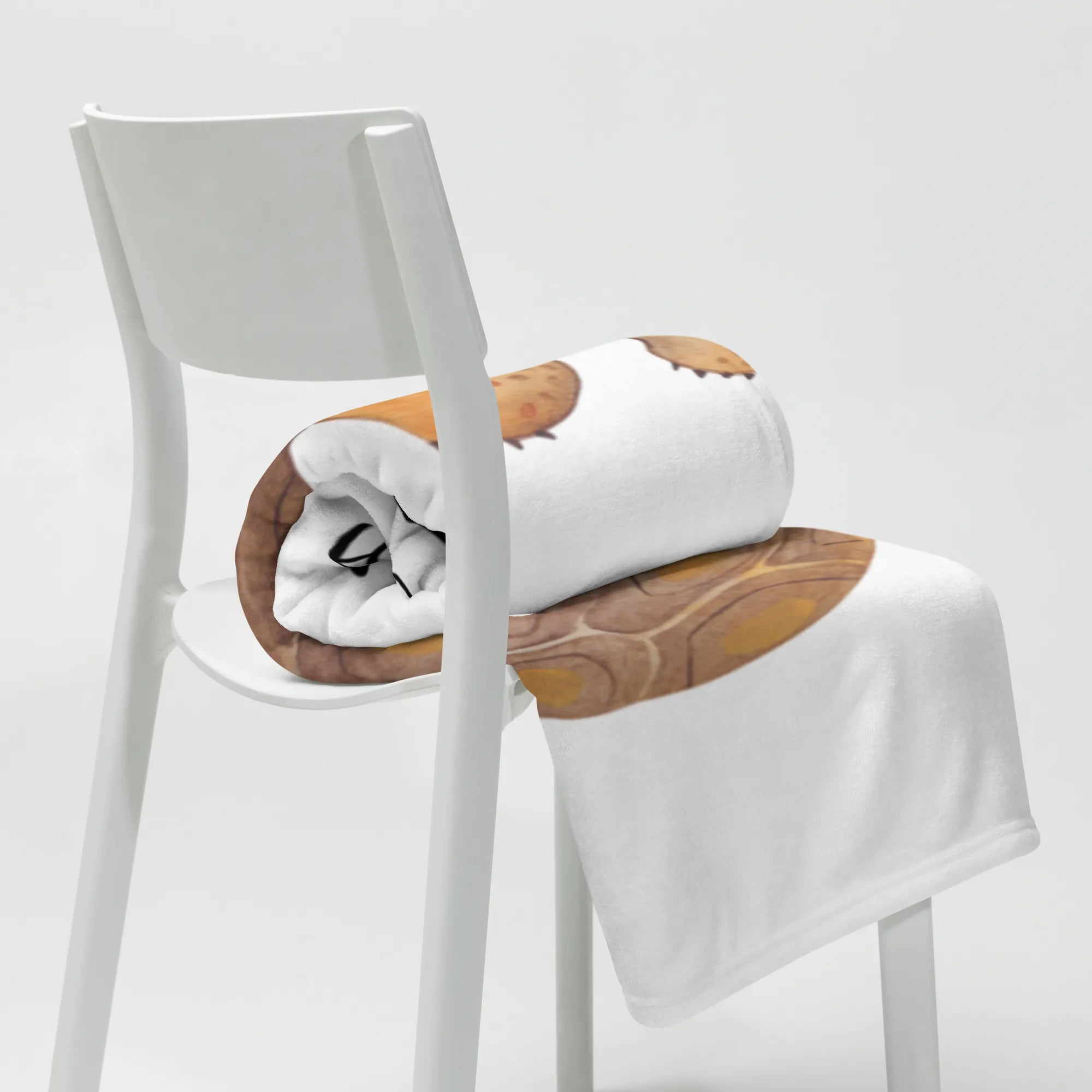 Verirr dich bewusst — zumindest gedanklich — mit dieser gemütlichen Schildkröte, die dir zeigt, dass Umwege oft zu den schönsten Entdeckungen führen. Du siehst sie in Seitenansicht, mit einem runden, braunen Panzer, der von zarten gelben Mustern verziert ist. Ihre hellbraune Haut mit orangefarbenen Akzenten und feinen dunkleren Punkten erzählt von sonnigen Pfaden und kleinen Pausen am Wegesrand. Die entspannte Pose und das sanfte Lächeln sagen dir: Du darfst dich Zeit nehmen, dich verlaufen und neu finden. Diese Schildkröte steht für das Abenteuer in langsamen Schritten — für den Mut, sich bewusst vom Hauptpfad zu lösen und die kleinen Wunder am Weg zu entdecken. Sie lädt dich ein, die Reize des Unbekannten mit Gelassenheit zu erforschen, ohne Hektik und mit einem warmen Herzen. Ein Motiv, das Mut macht, Umwege zu lieben und das Leben als leise, aber spannende Entdeckungsreise zu sehen.